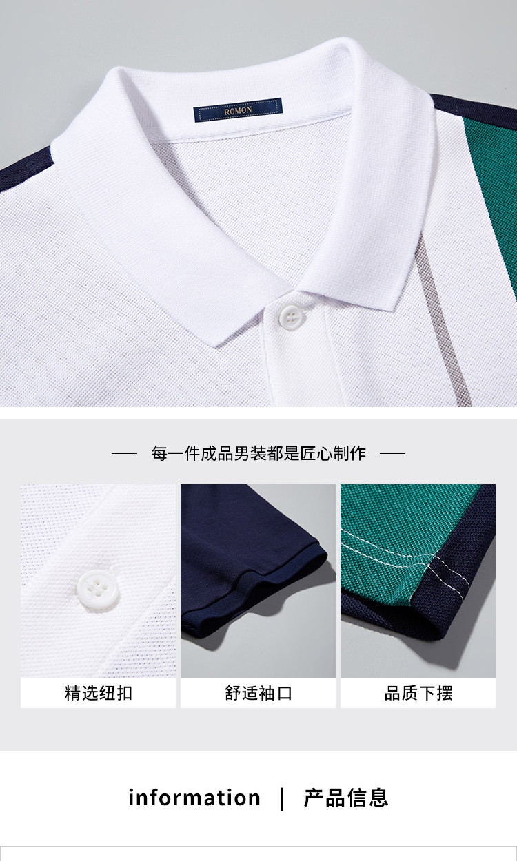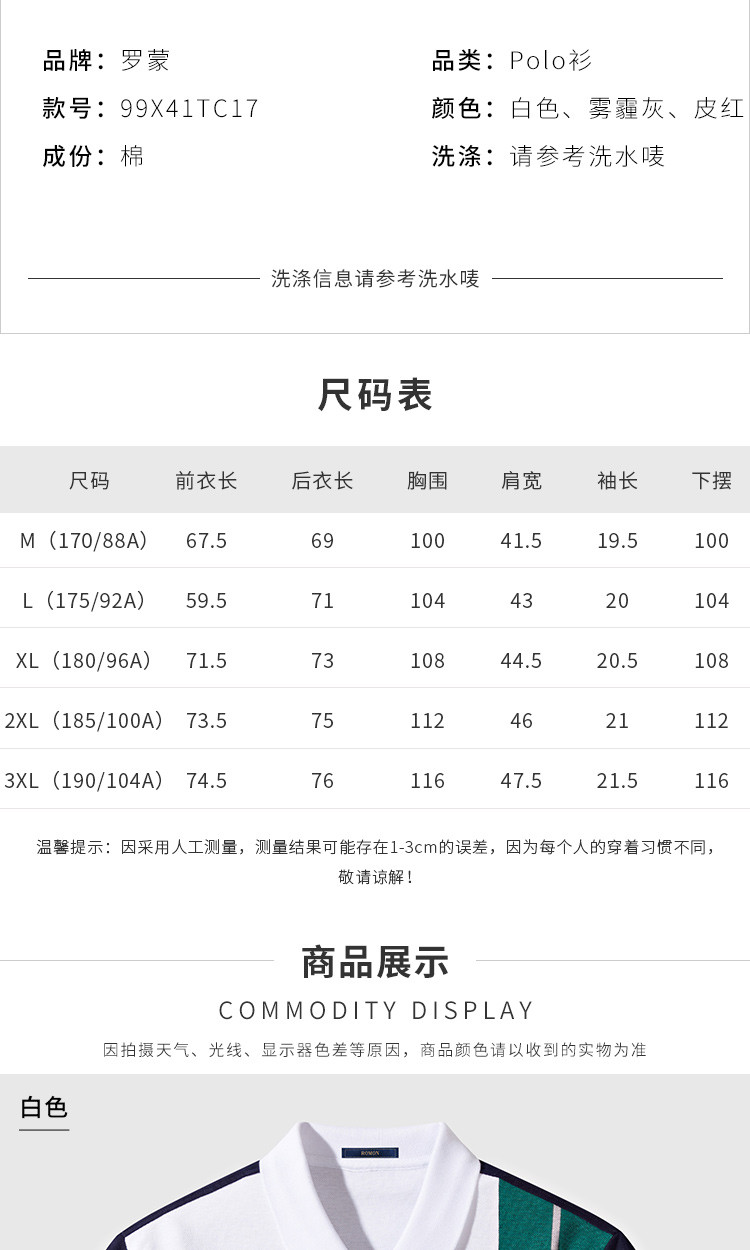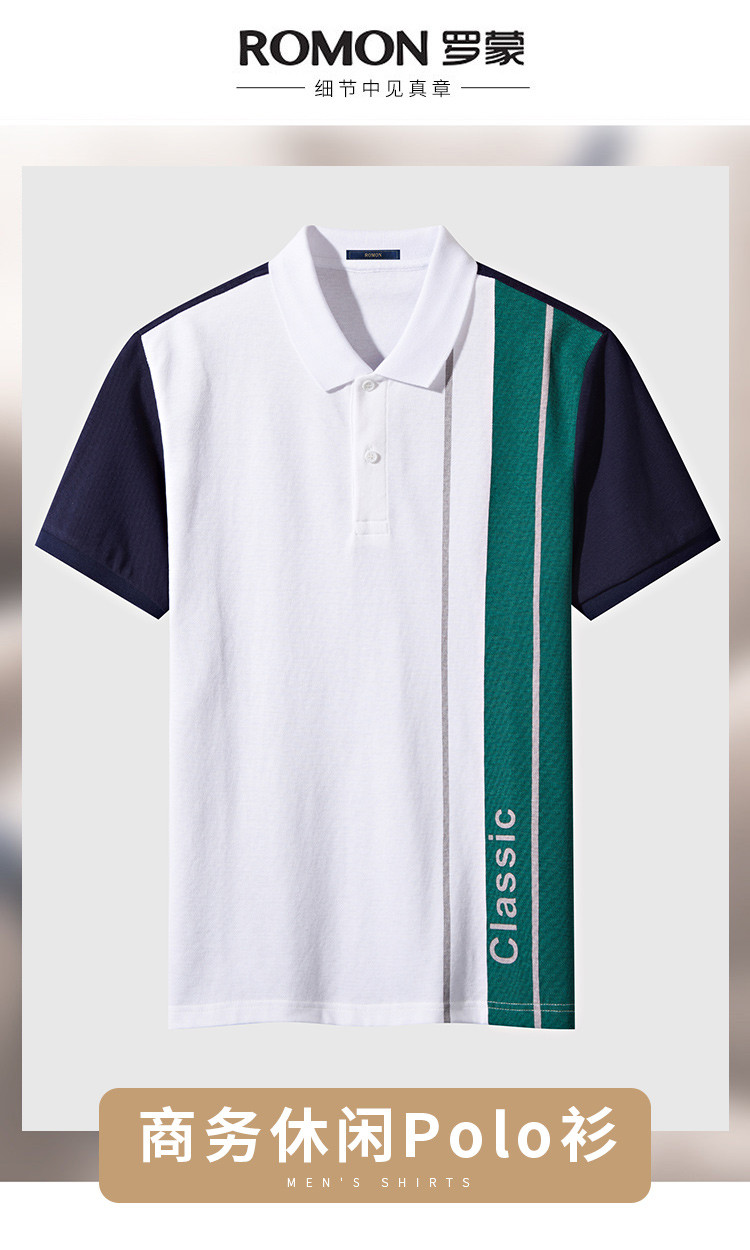 【全棉面料】罗蒙短袖t恤男夏季薄款经典翻领拼色字母休闲Polo衫
