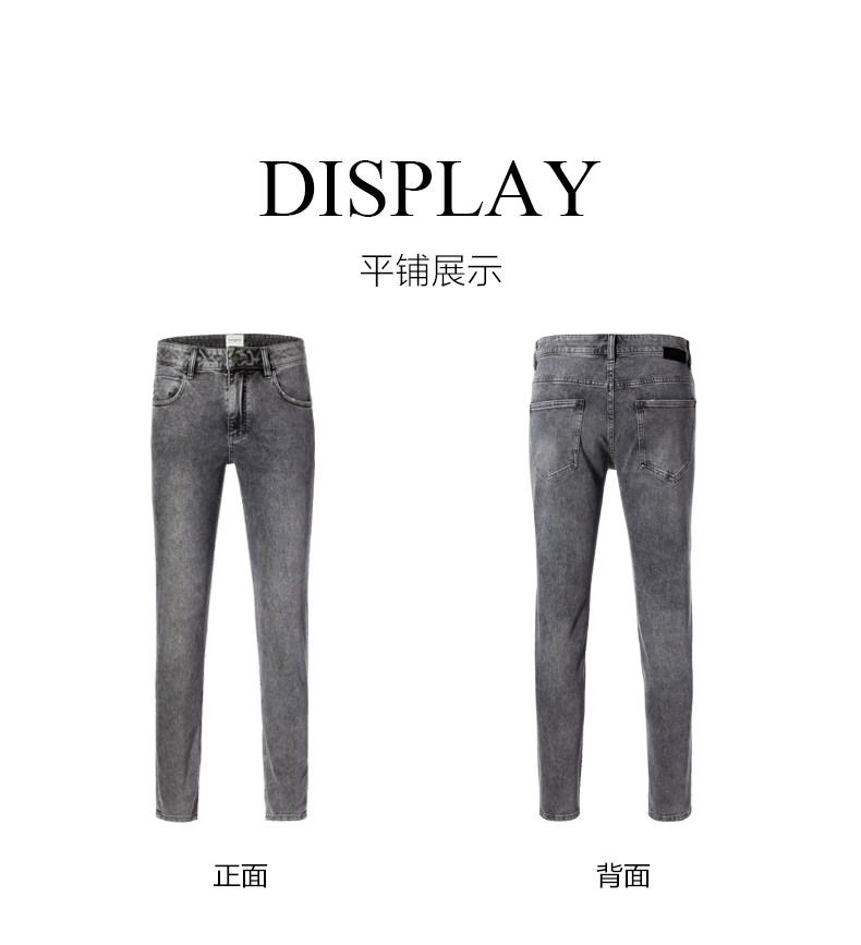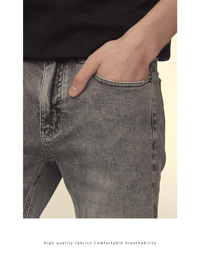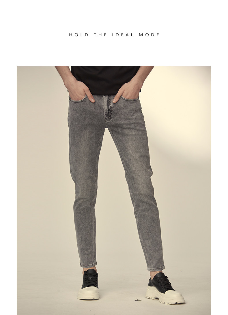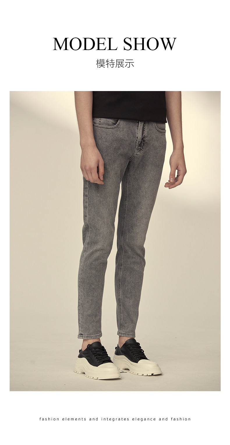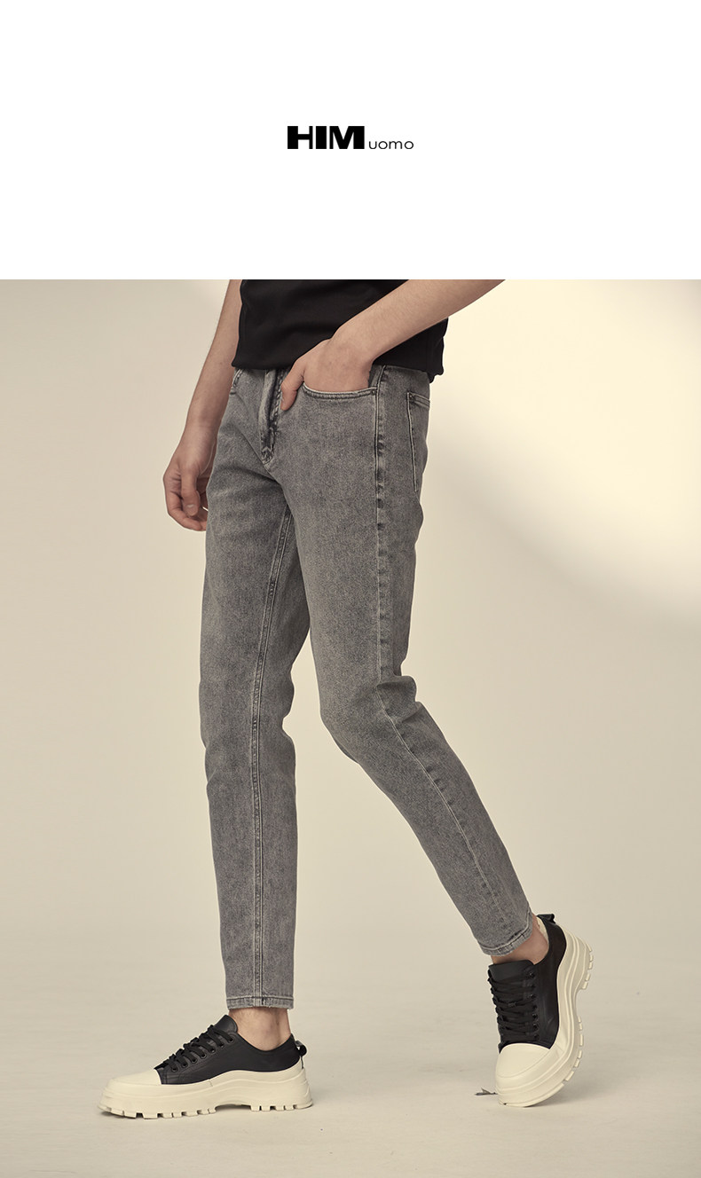 HIM漢崇 小脚洗水牛仔裤男士潮流修身微弹磨烂休闲长裤 秋季新款