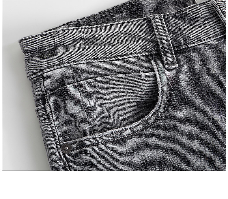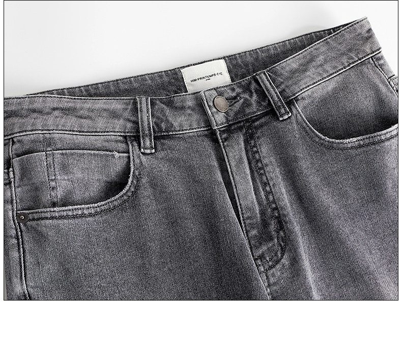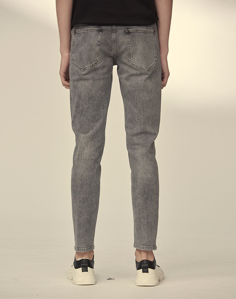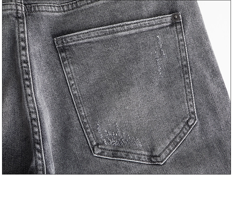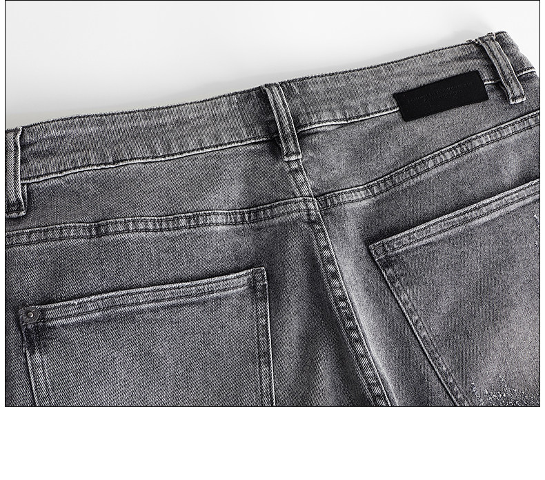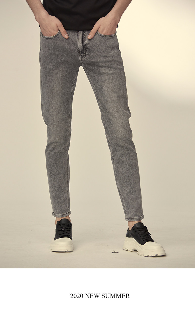 HIM漢崇 小脚洗水牛仔裤男士潮流修身微弹磨烂休闲长裤 秋季新款