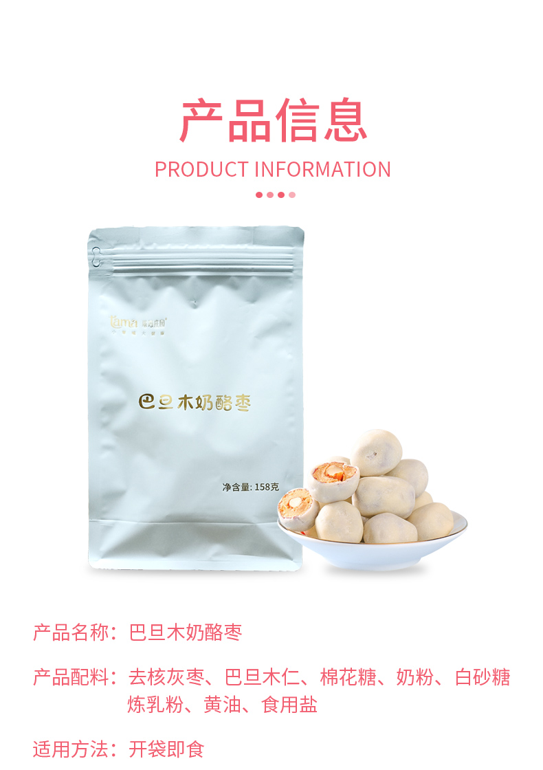 【塔玛庄园】奶枣巴旦木奶酪夹心枣158g袋装网红休闲零食坚果年货新品