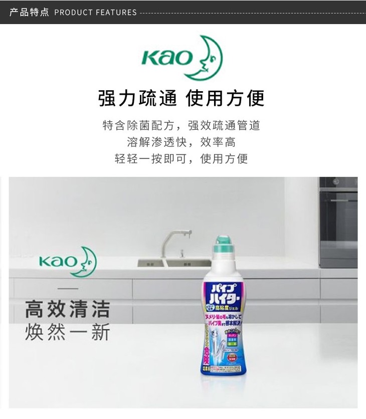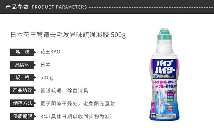 日本 花王KAO 管道去除毛发异味凝胶 管道疏通 500G