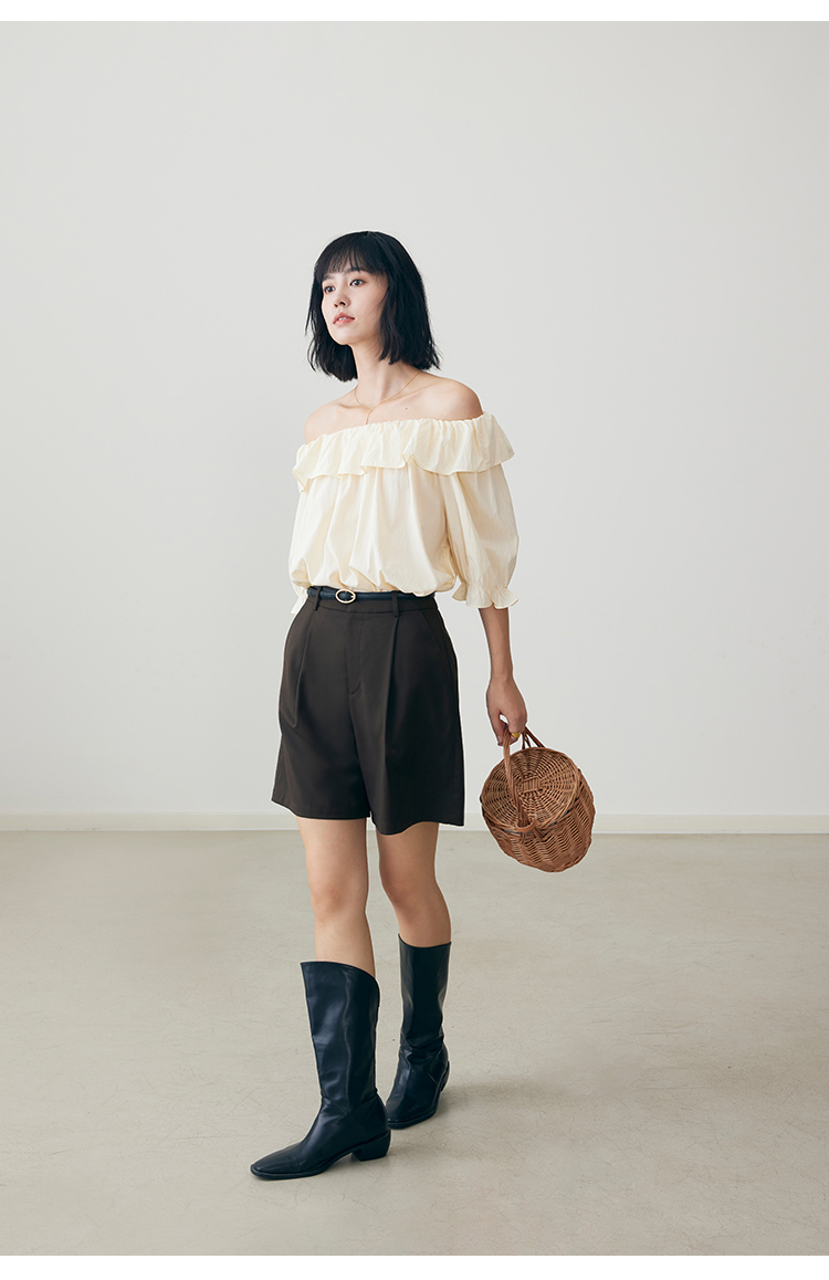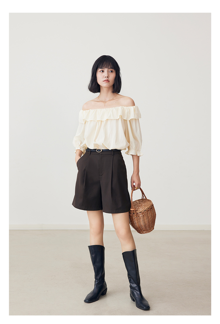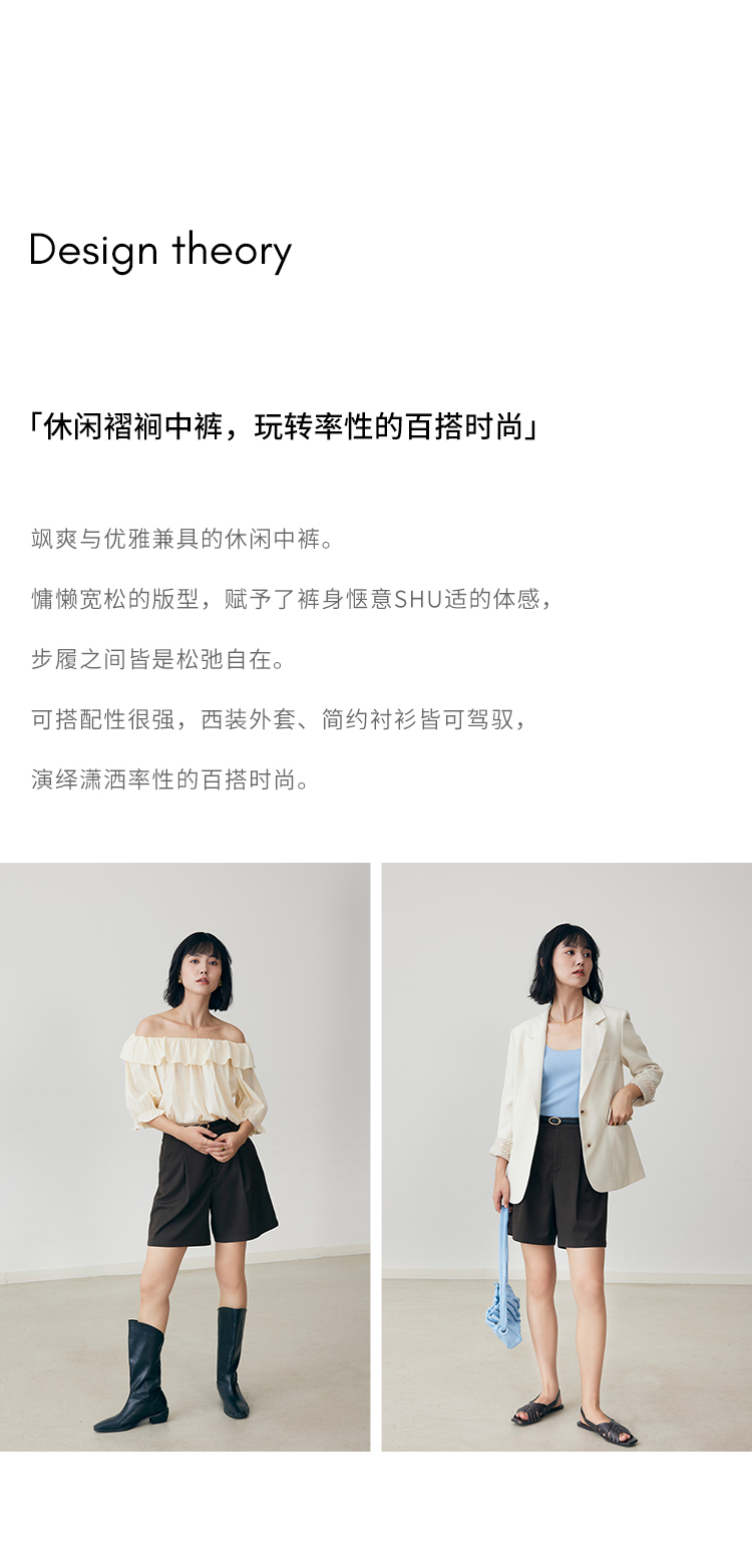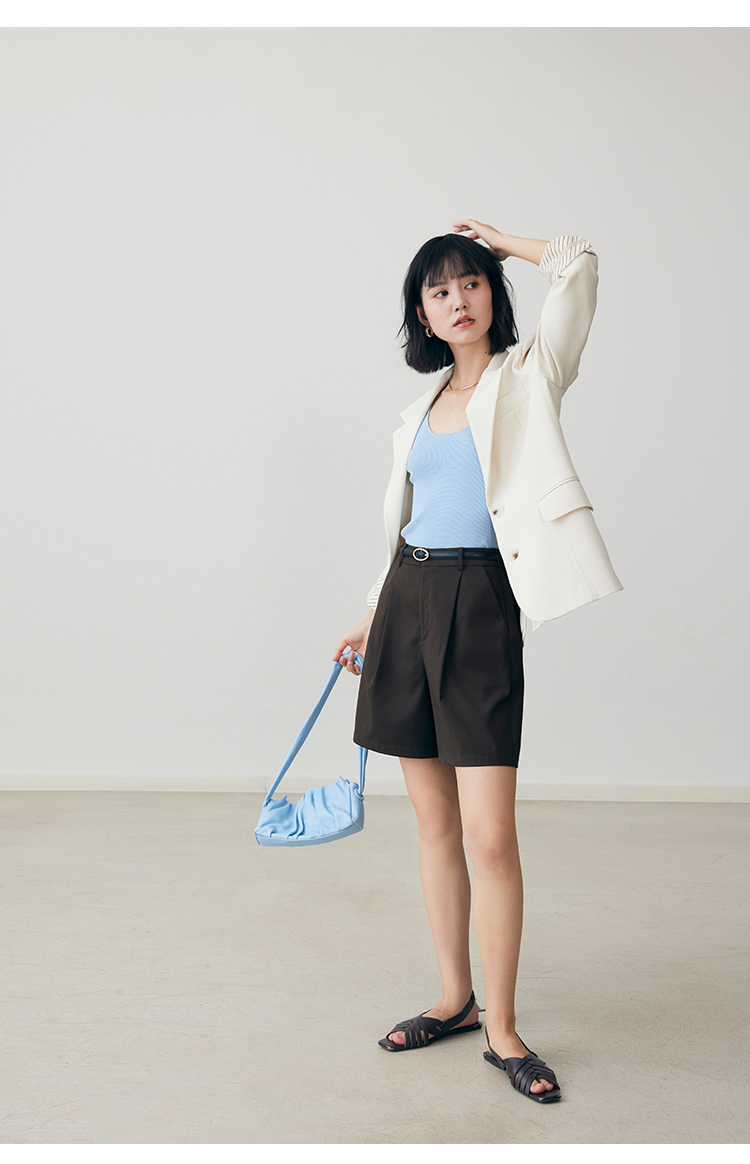 HeyDress法式休闲短裤女夏季高腰宽松阔腿中裤百搭显瘦五分裤