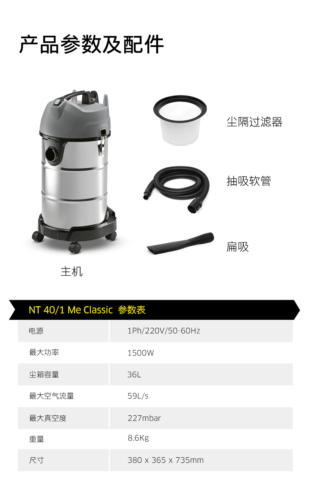 【官翻样机】 德国卡赫KARCHER商用干湿两用二手吸尘器不锈钢大容量NT40/50/70/90 14285710/16670230/16672260/16677030