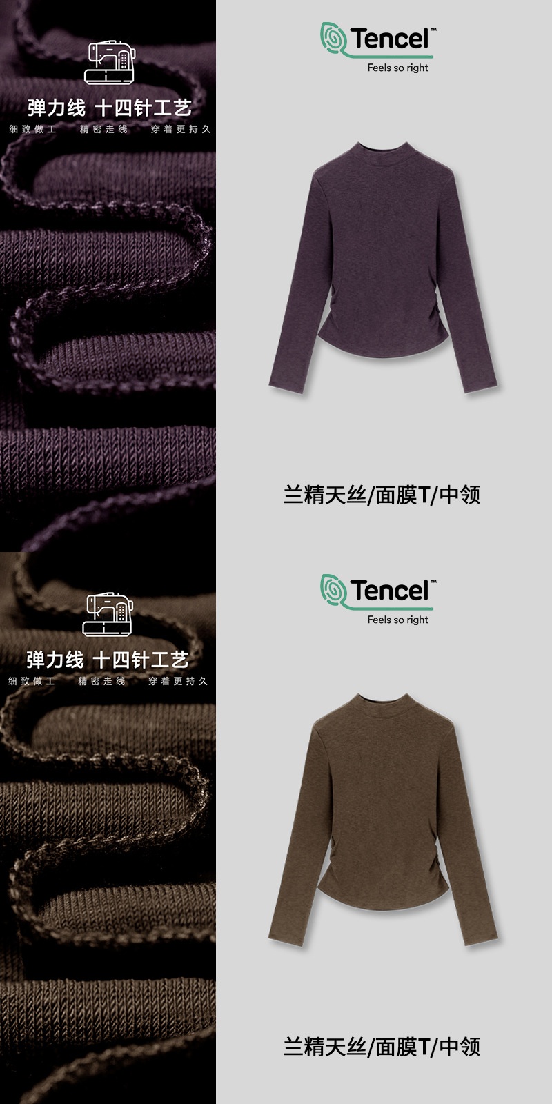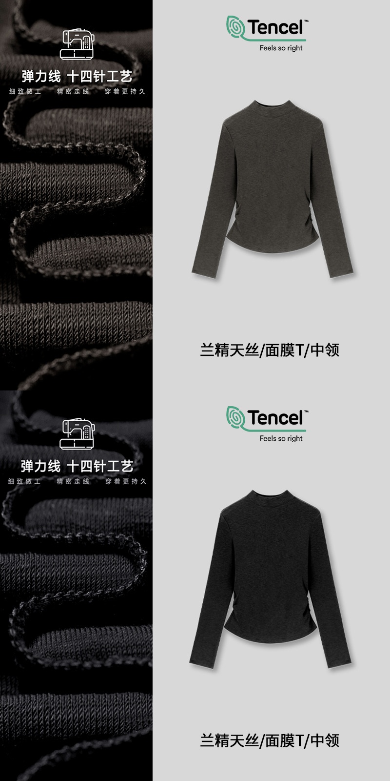 「自j」全新升级【铂金会员128/天猫169/差价41】(61820)洛诗琳新款兰精天丝长袖T恤2025秋季新款气质正肩显瘦打底衫