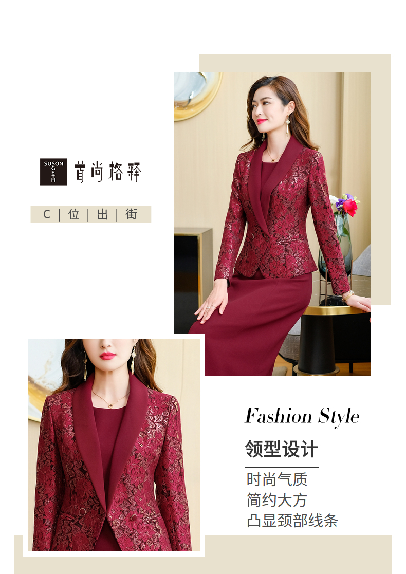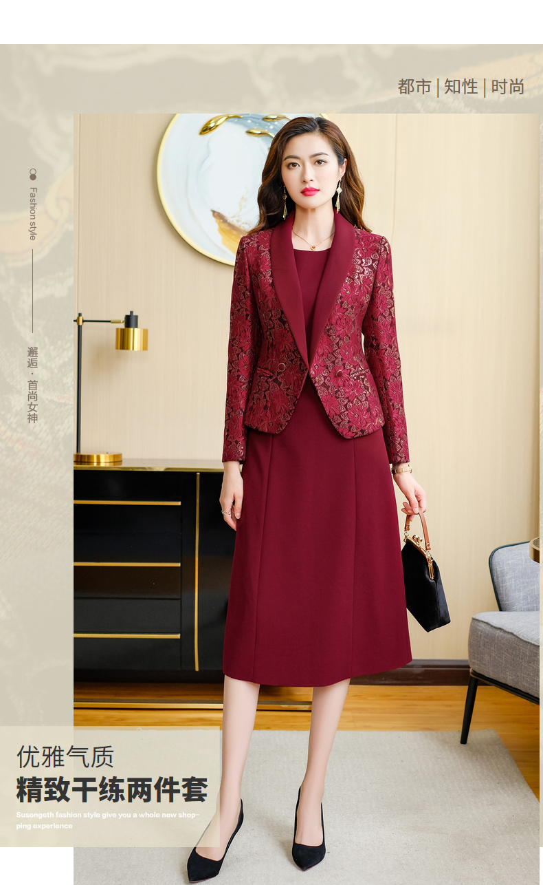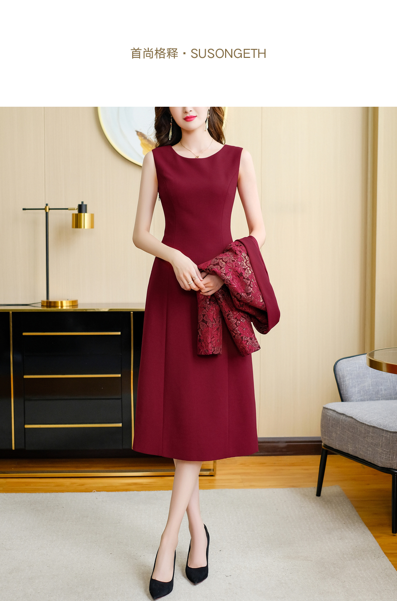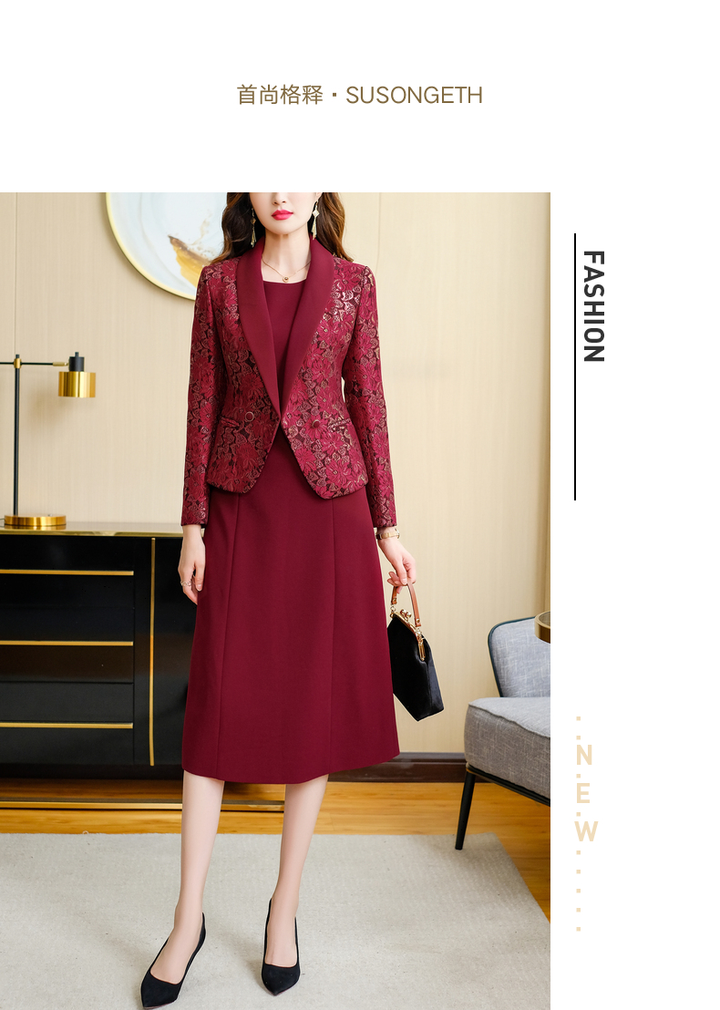 SSGS-S771新款高端优雅气质修身翻领长袖外套背心裙两件套