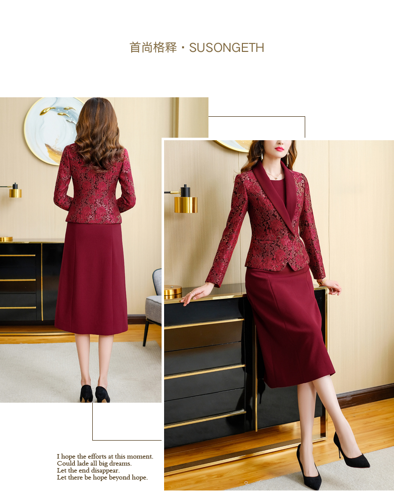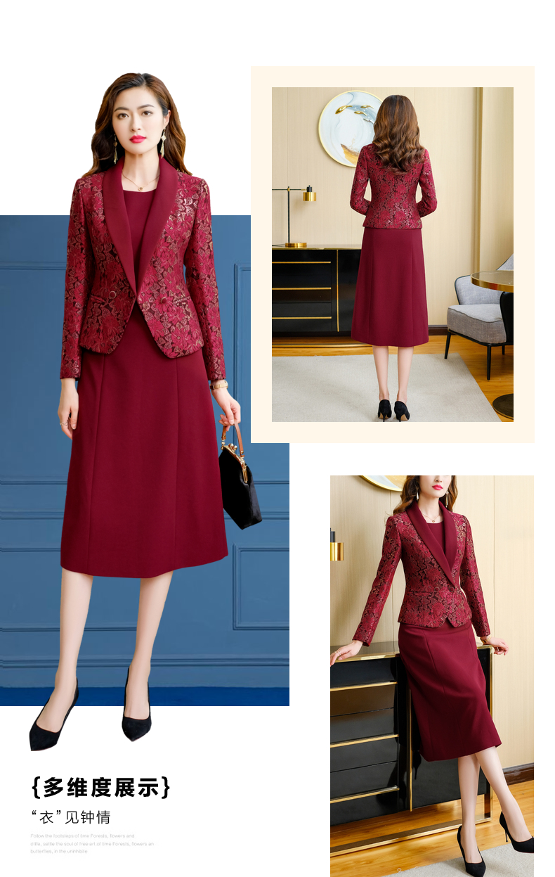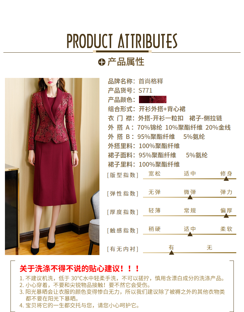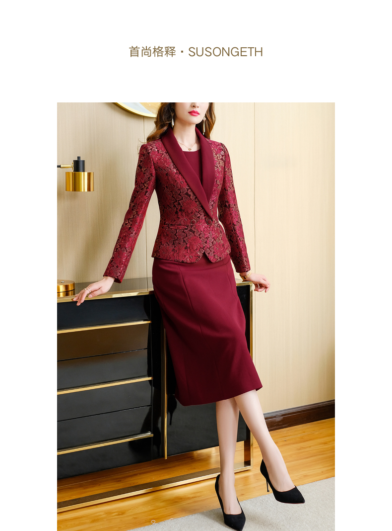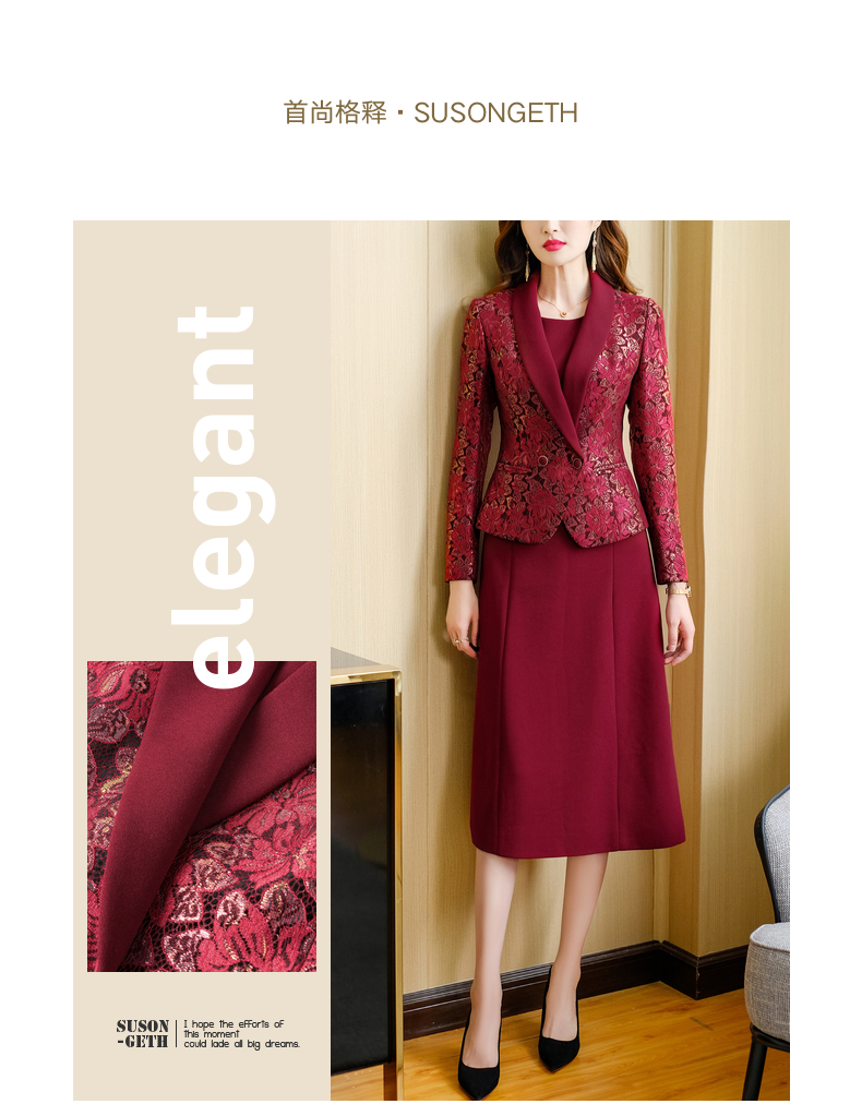 SSGS-S771新款高端优雅气质修身翻领长袖外套背心裙两件套