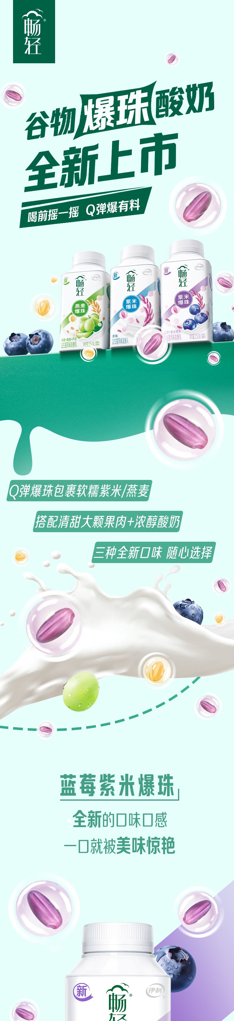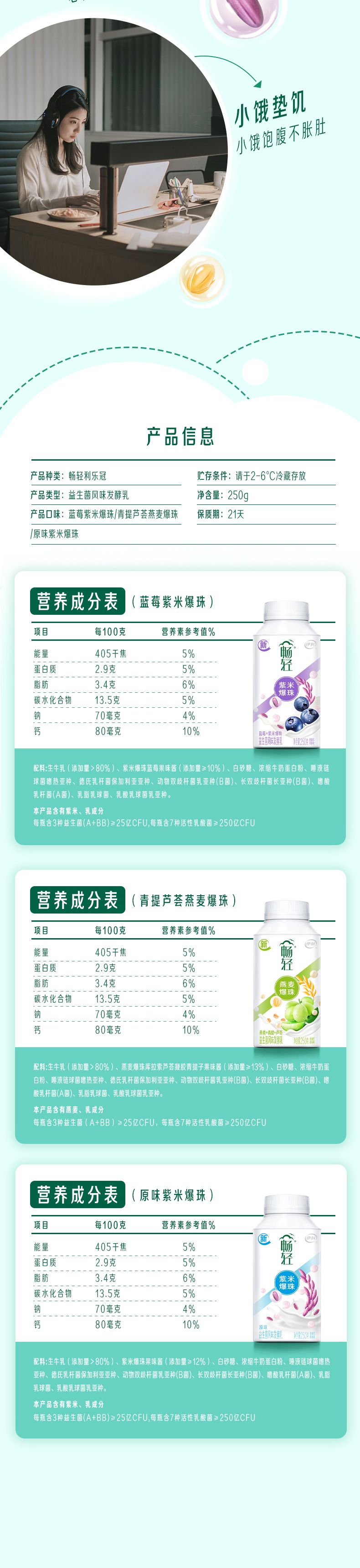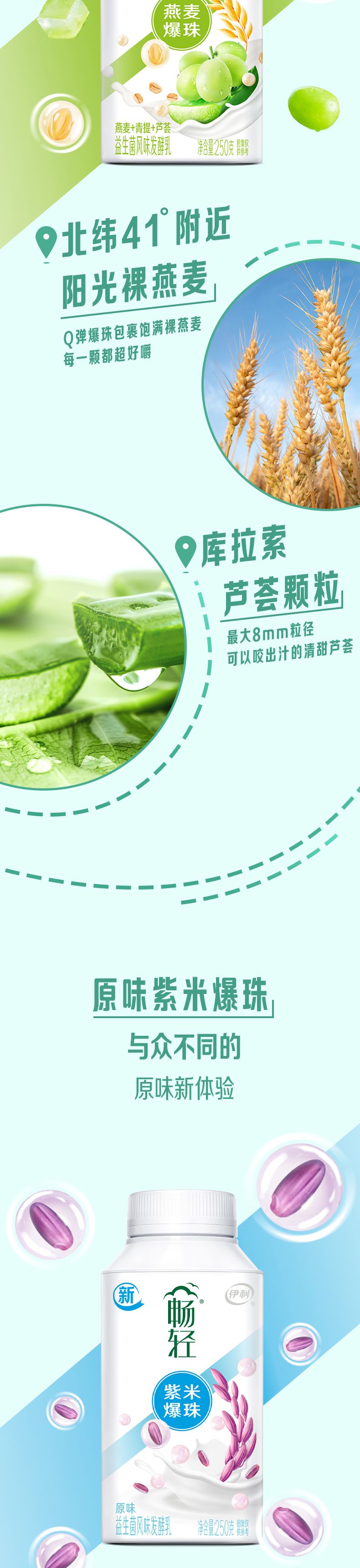 伊利250g畅轻青提芦荟燕麦爆珠发酵乳
