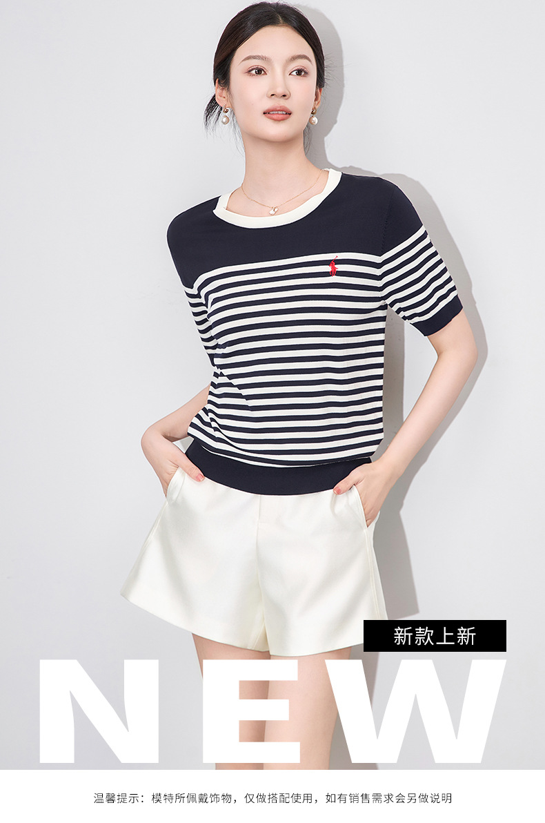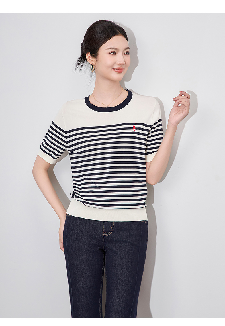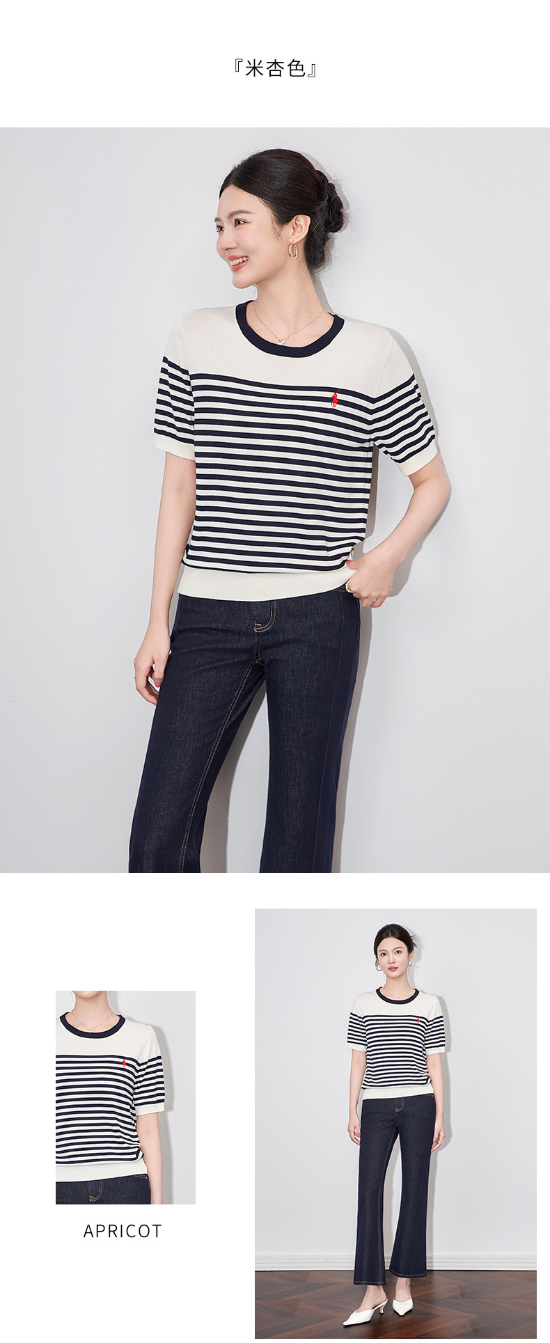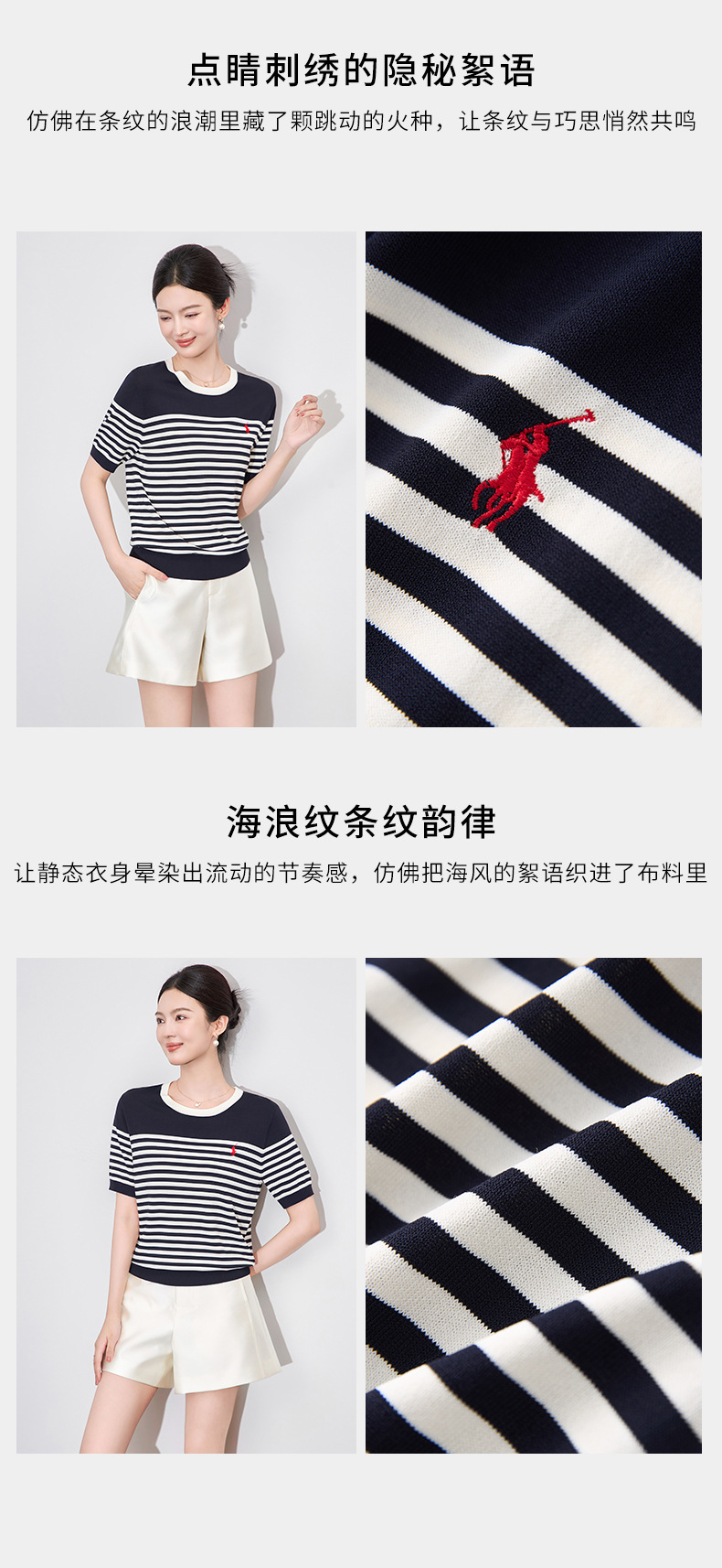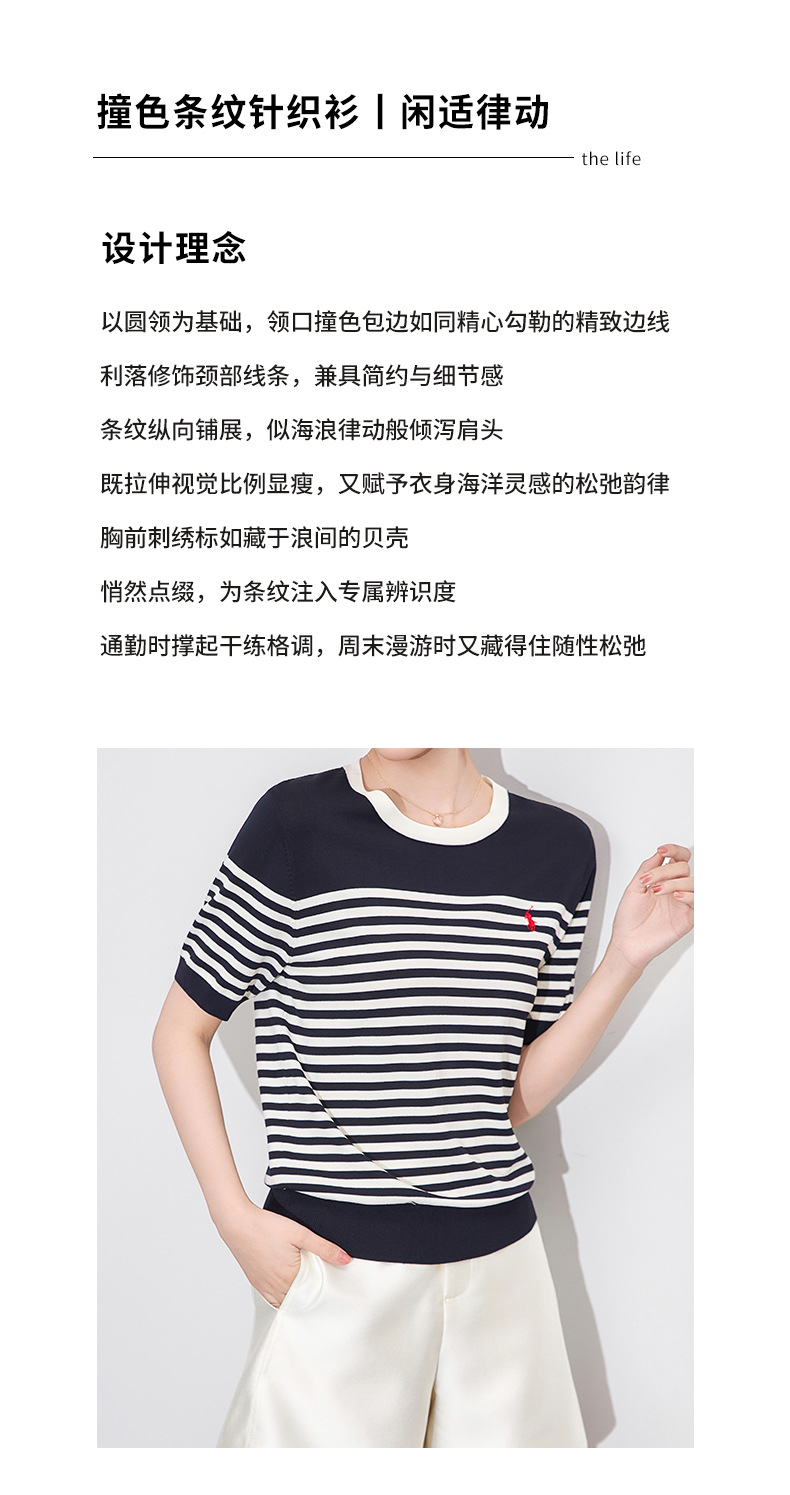 「高货wl」全新升级【铂金会员201/天猫269/差价68】(71035)洛诗琳气质小马刺绣针织T恤2025夏季兰精天丝条纹针织上衣wl71035