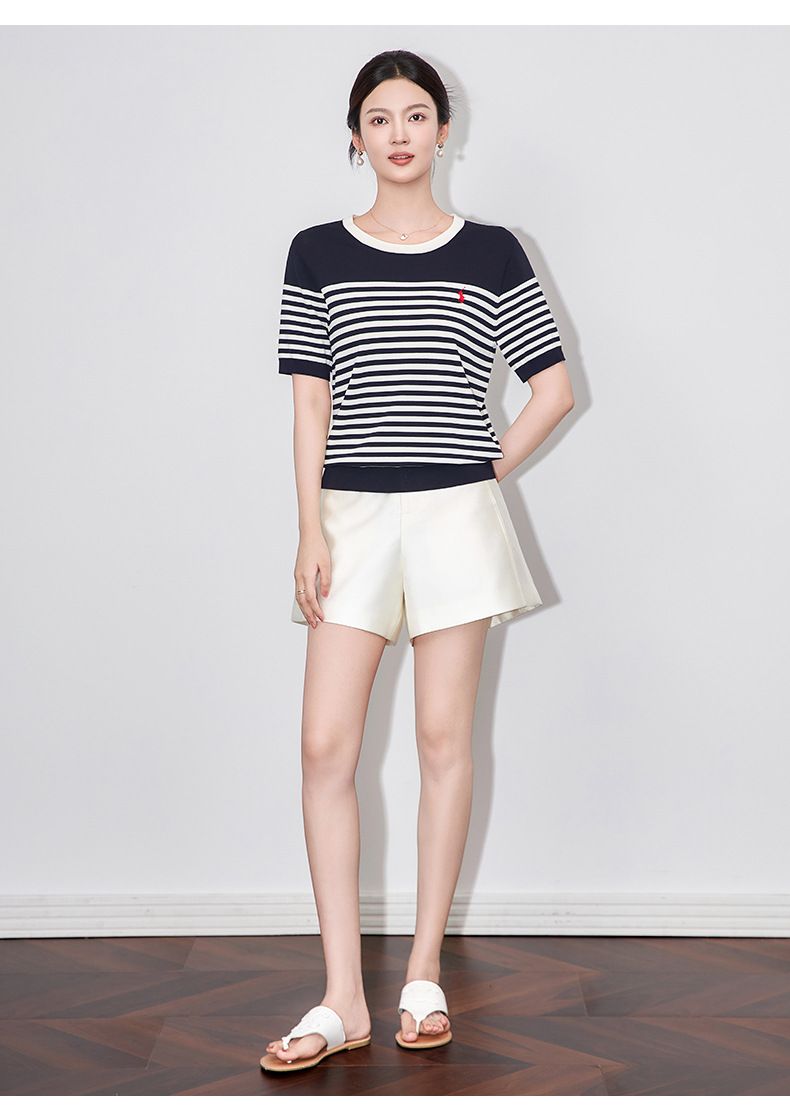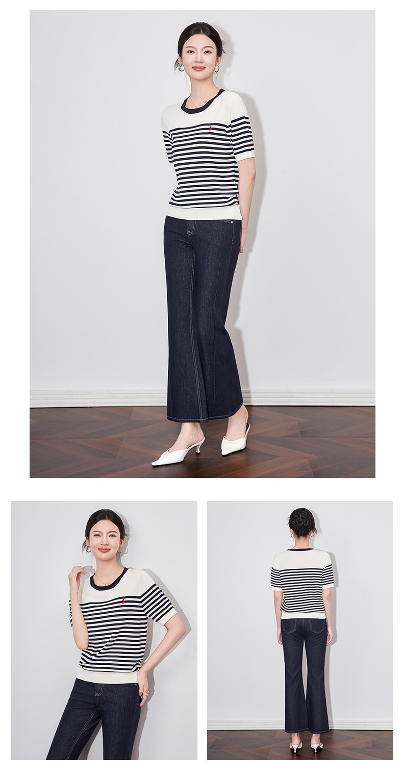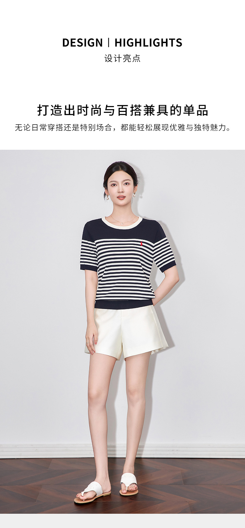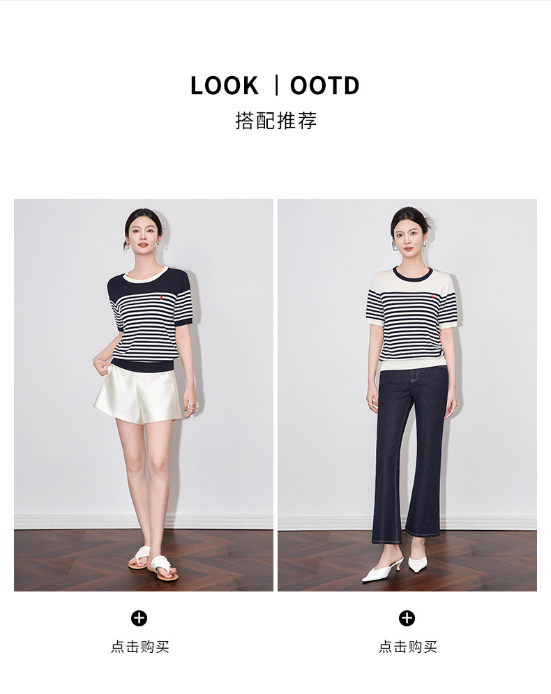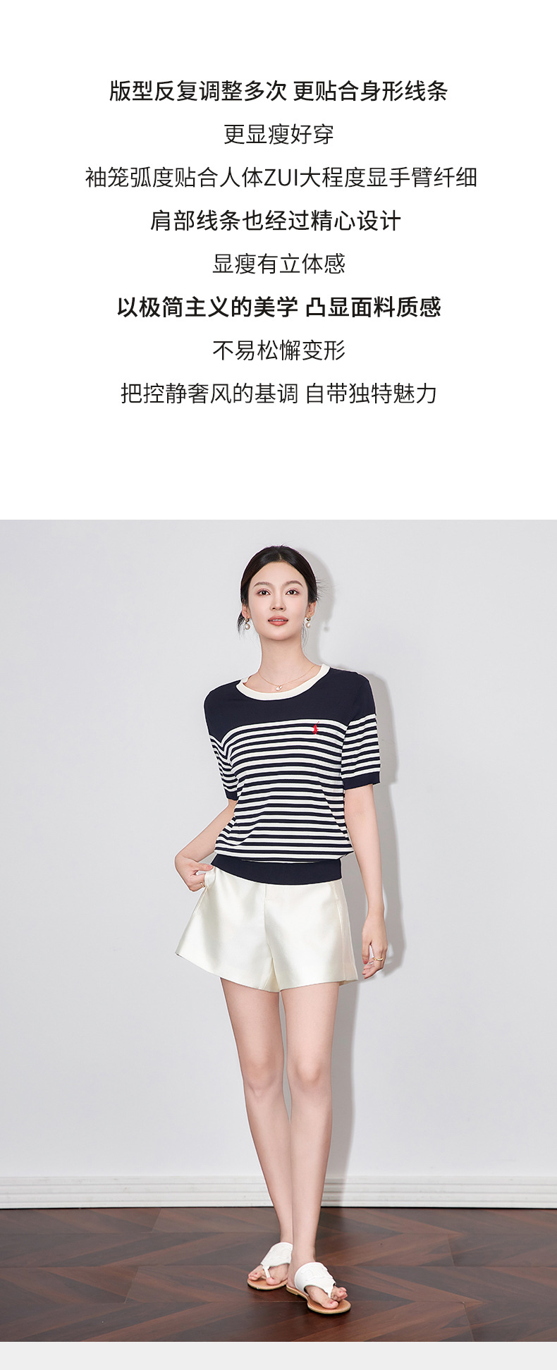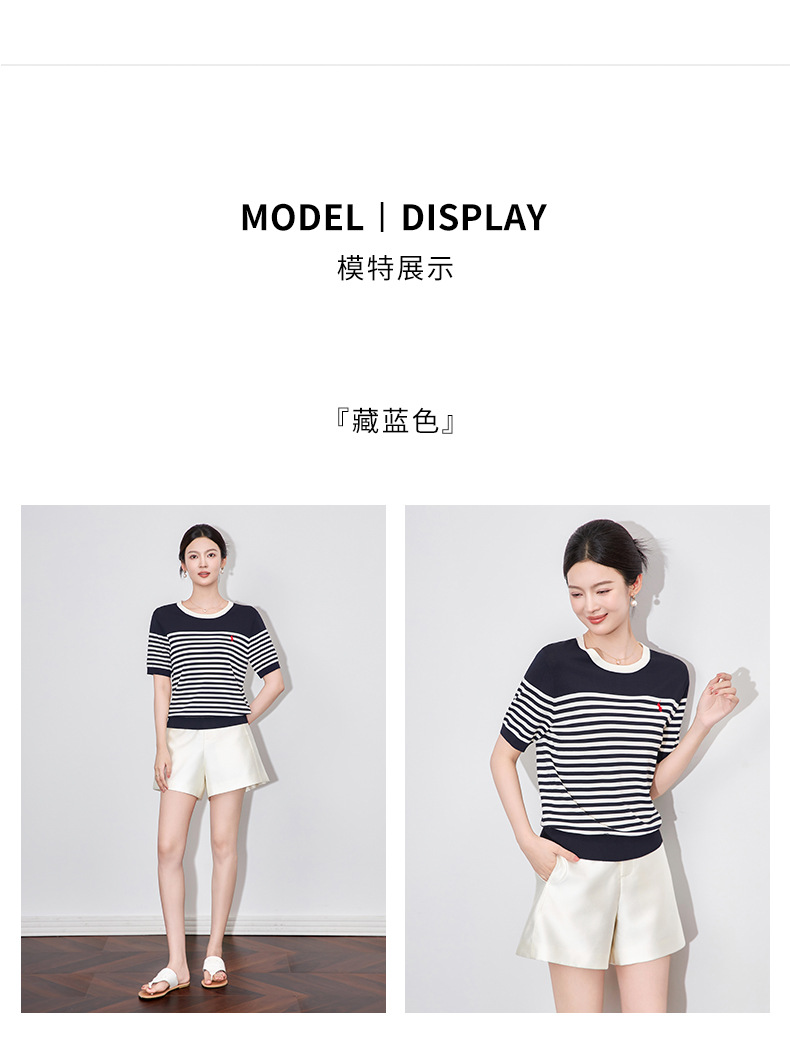 「高货wl」全新升级【铂金会员201/天猫269/差价68】(71035)洛诗琳气质小马刺绣针织T恤2025夏季兰精天丝条纹针织上衣wl71035