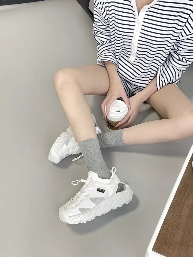 针织弹力鞋舌和袜套式的鞋领口 提升了包裹性和舒适性 即使光脚穿也ok~