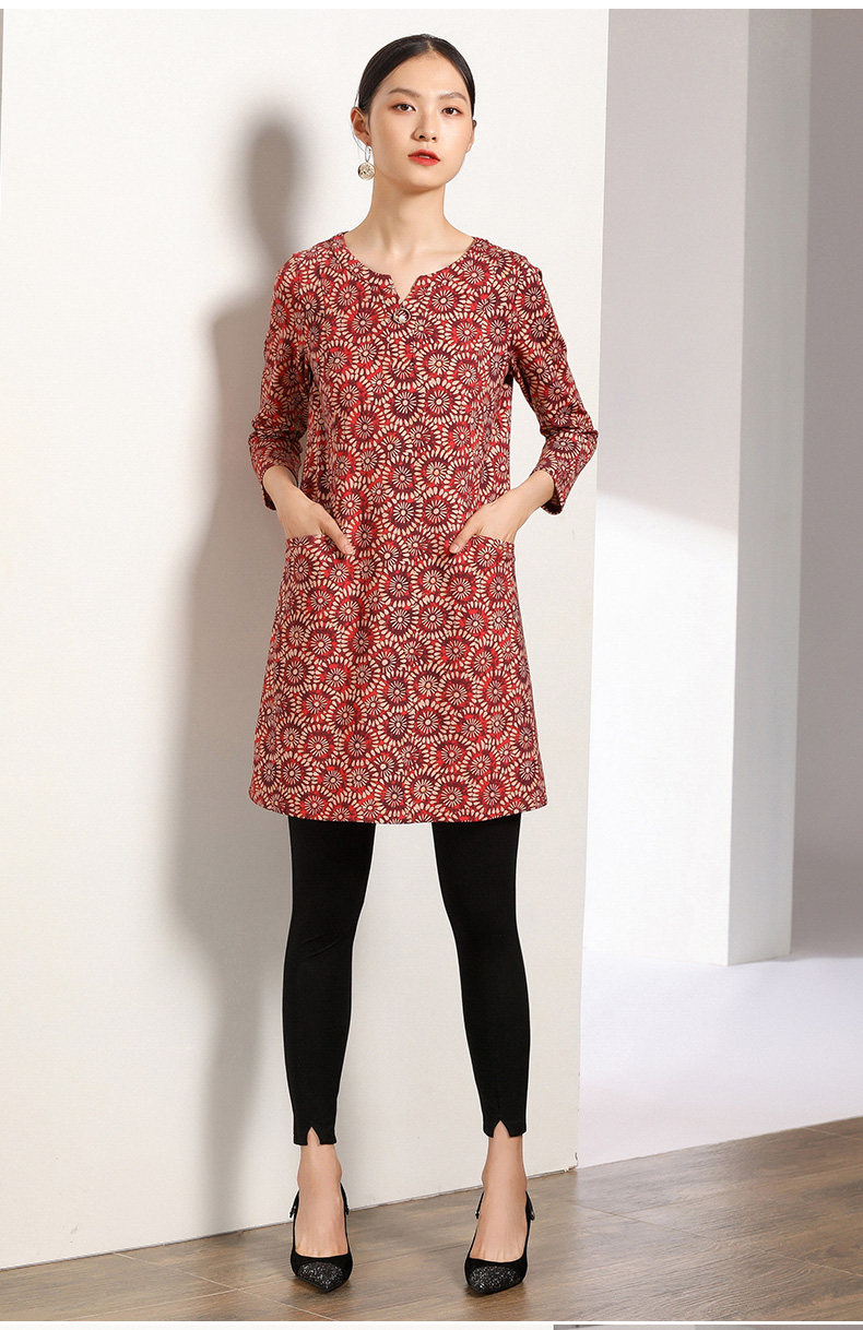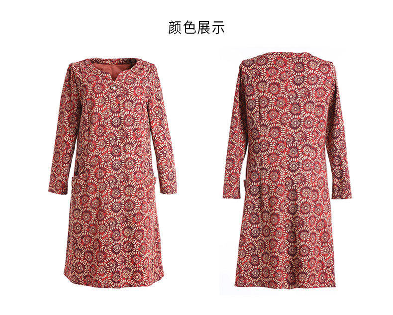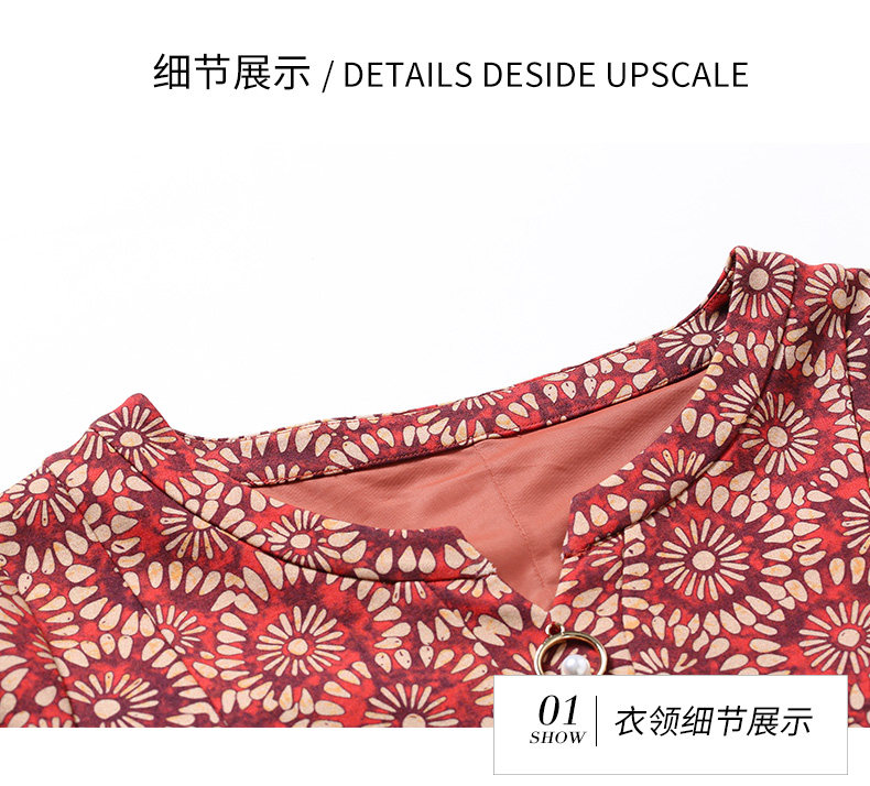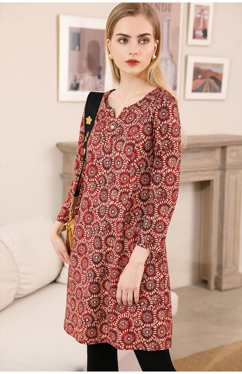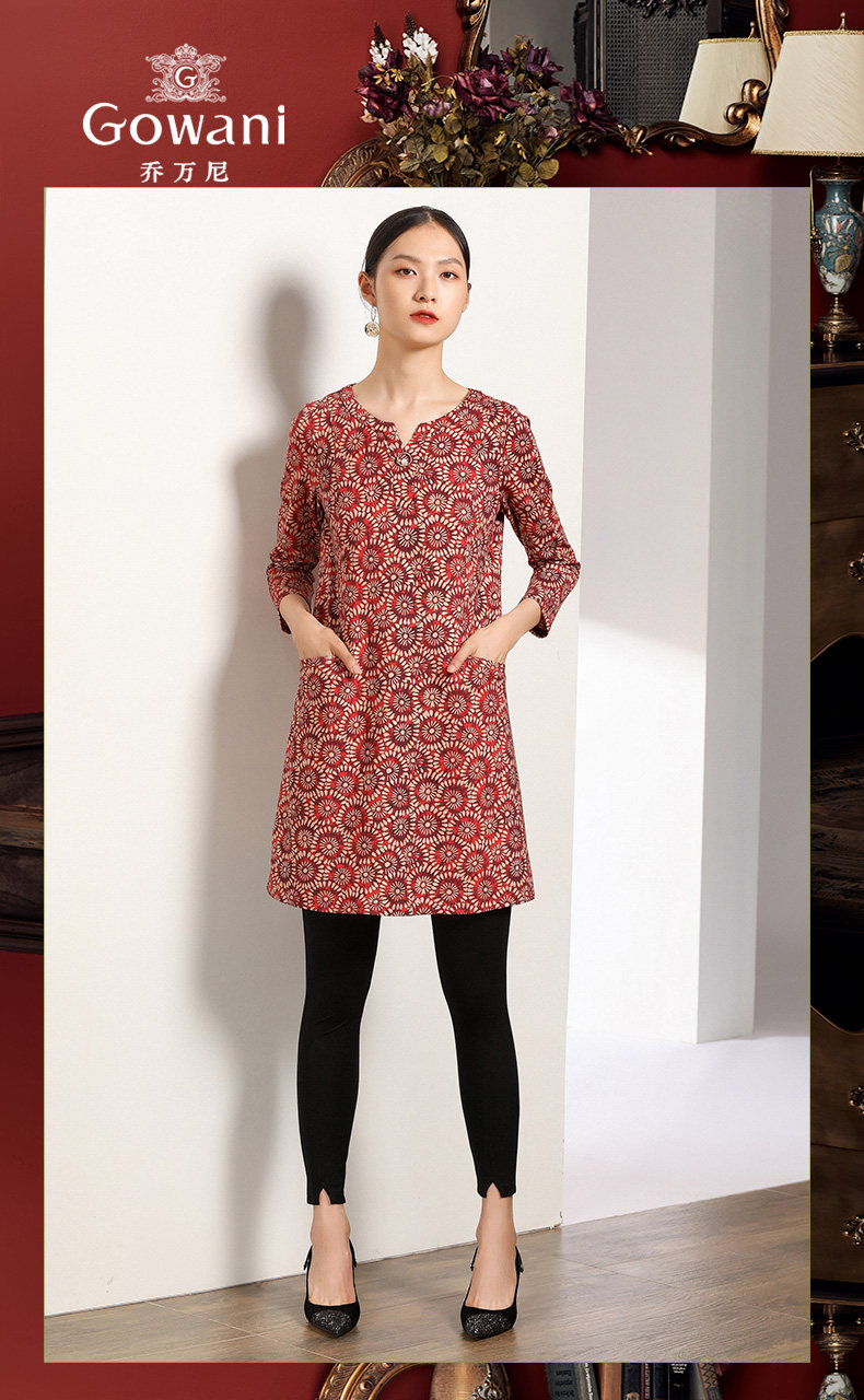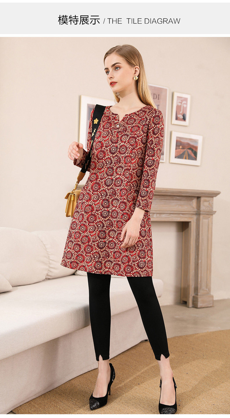乔万尼秋装女宽松气质大花印花长袖连衣裙中长款EN3E317