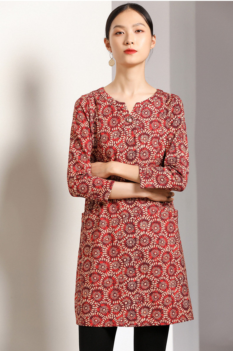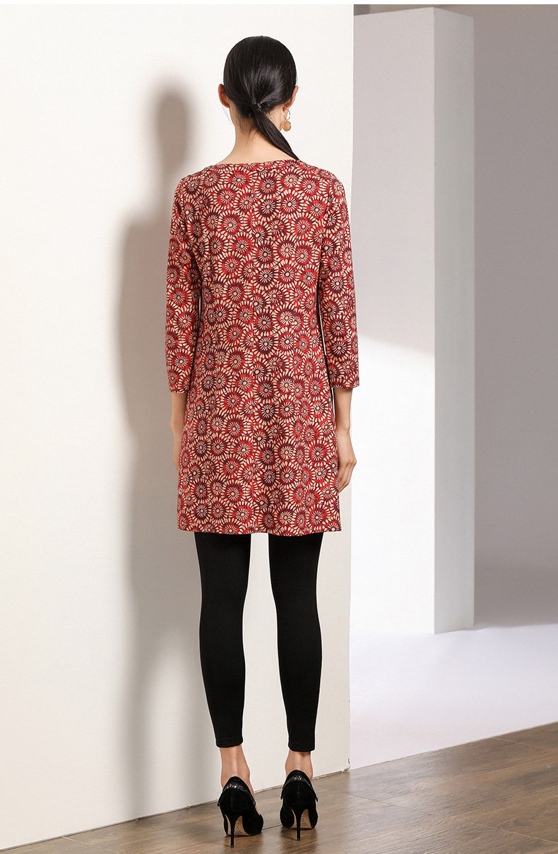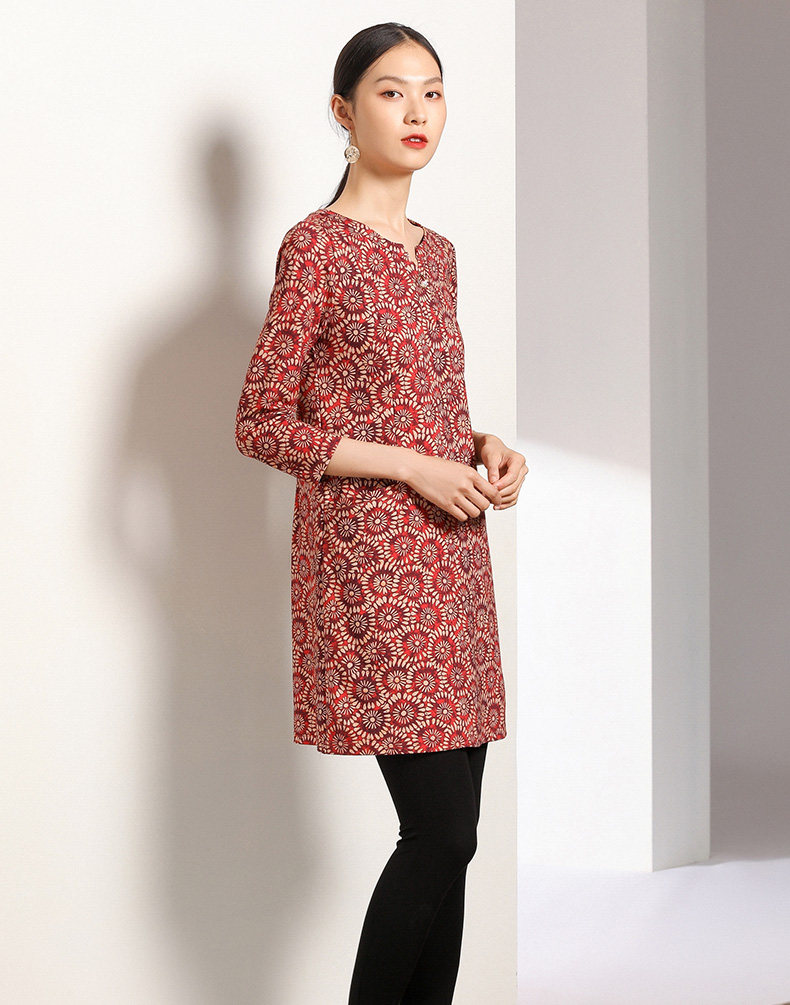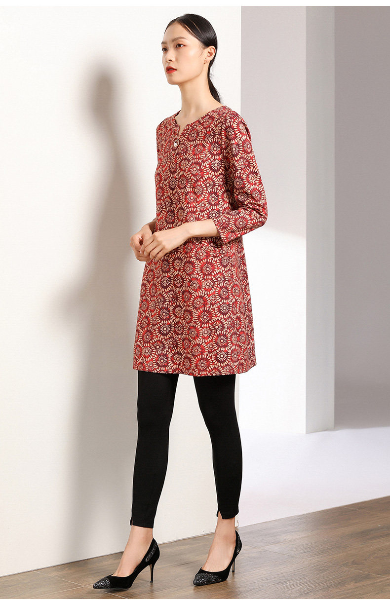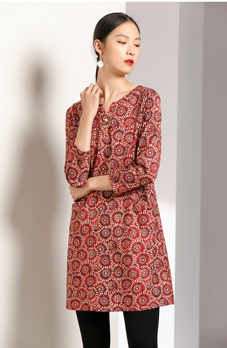乔万尼秋装女宽松气质大花印花长袖连衣裙中长款EN3E317