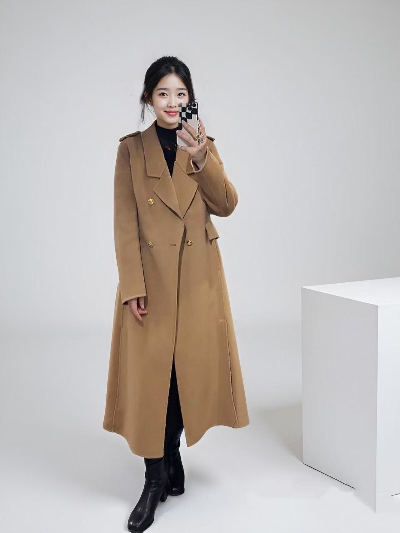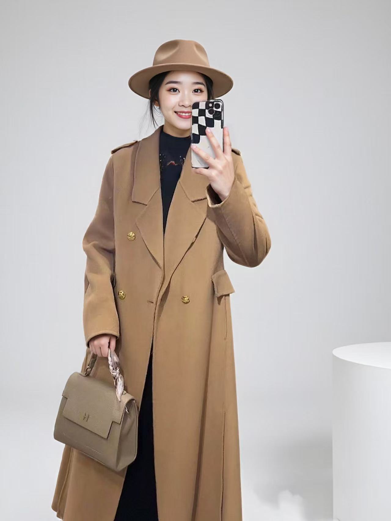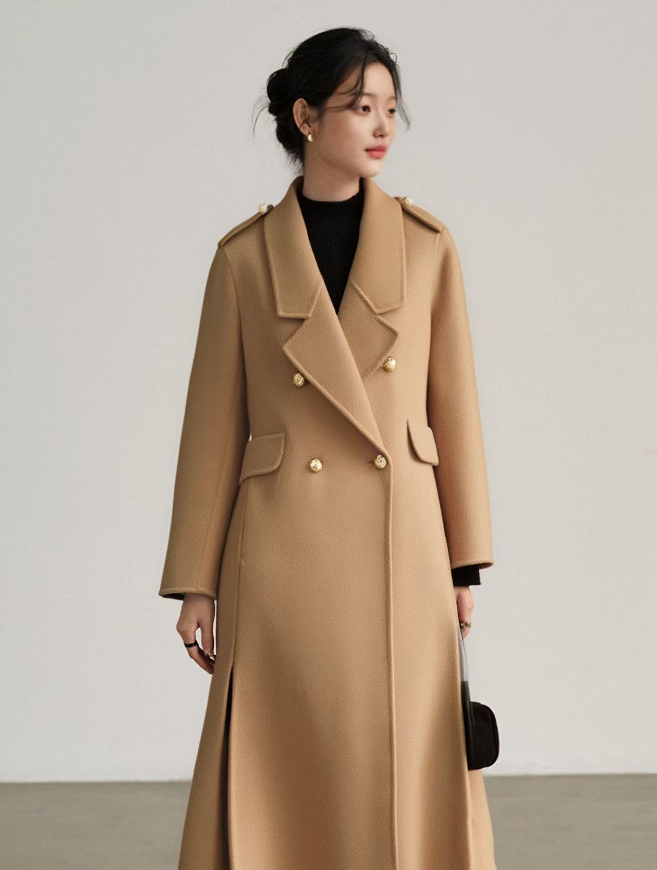 【高端系列】手工定制3980款100%羊毛英伦酷颯修身长款双面尼大衣-喜出