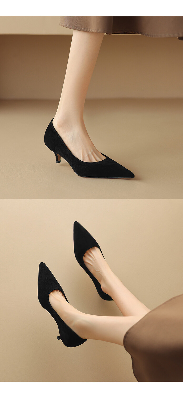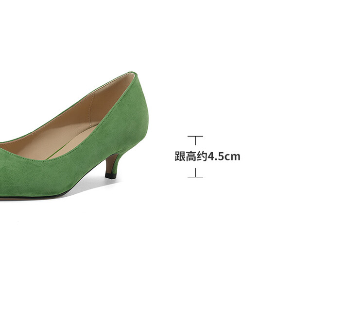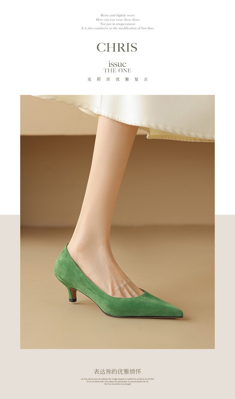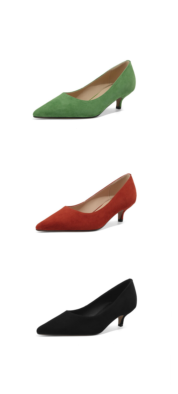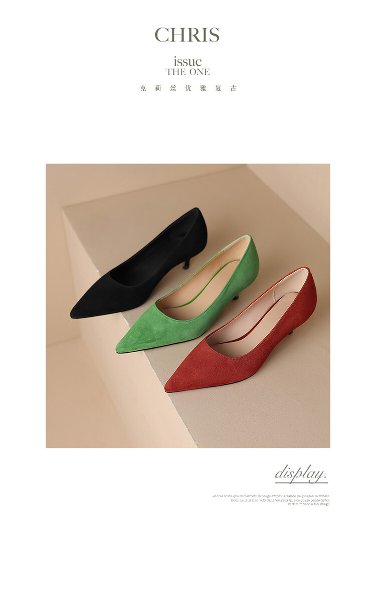 【预售5天】里外全皮女鞋细跟尖头浅口羊翻皮单鞋韩版简约复古中跟鞋通勤鞋NDXC&6511
