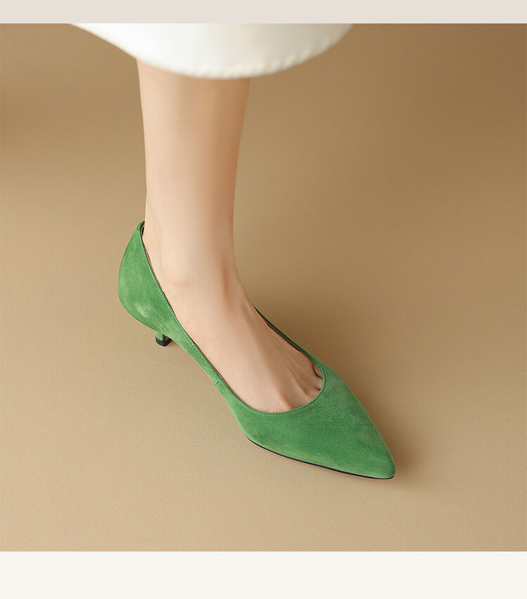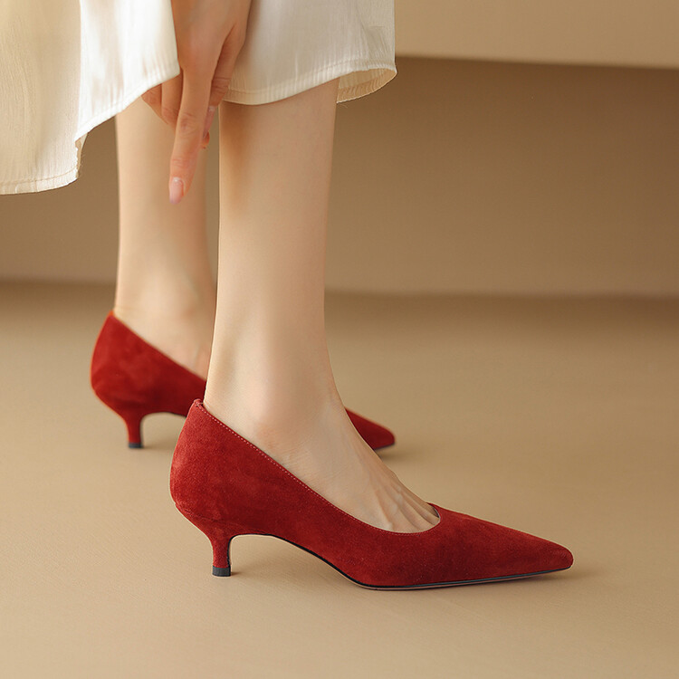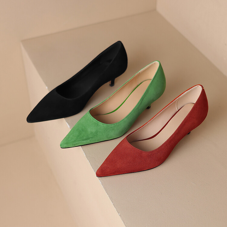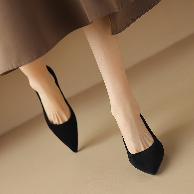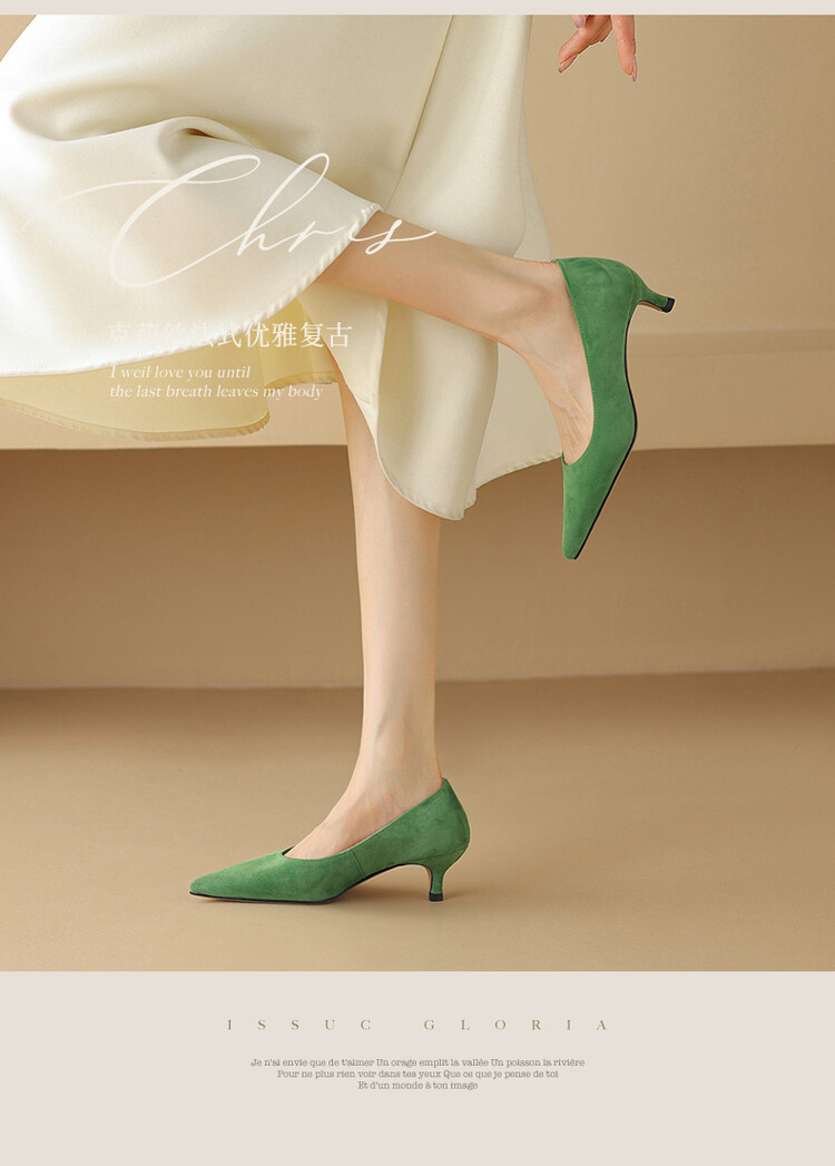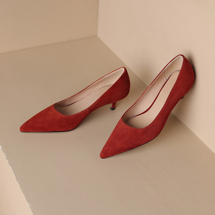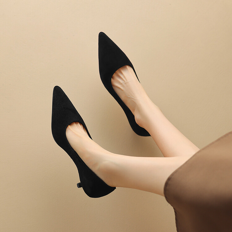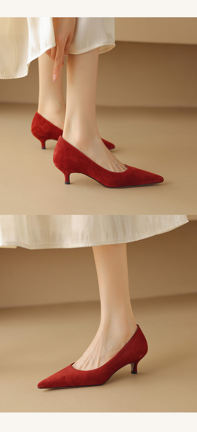 【预售5天】里外全皮女鞋细跟尖头浅口羊翻皮单鞋韩版简约复古中跟鞋通勤鞋NDXC&6511