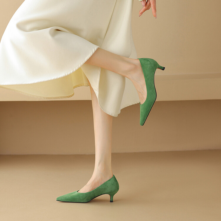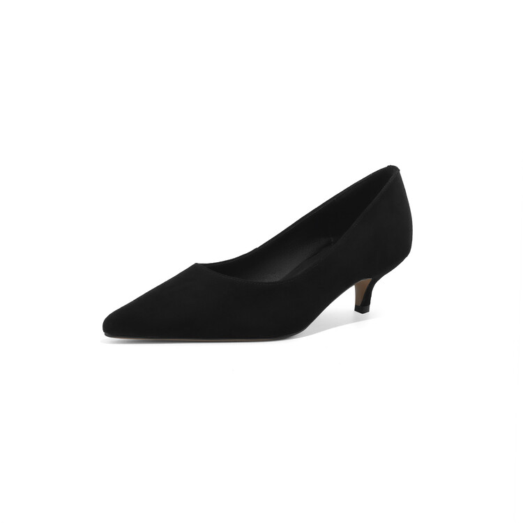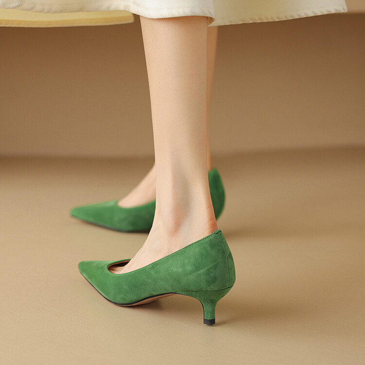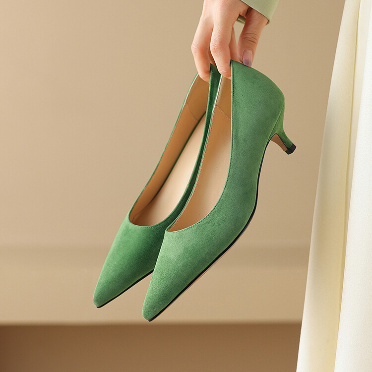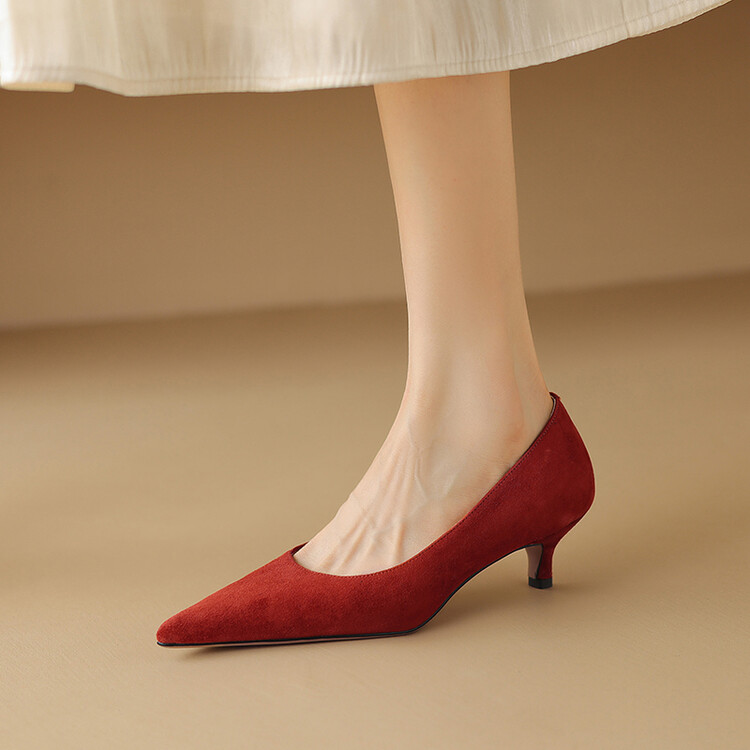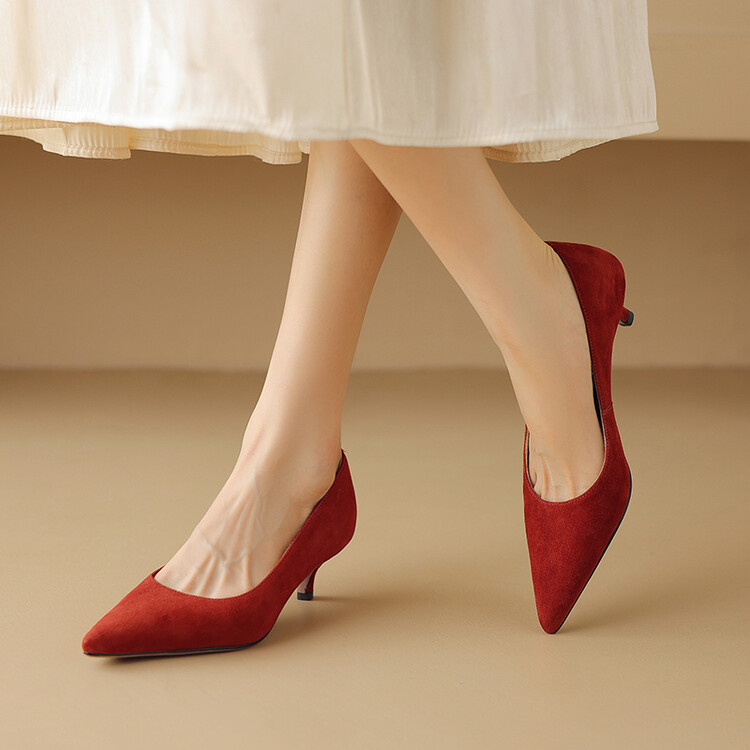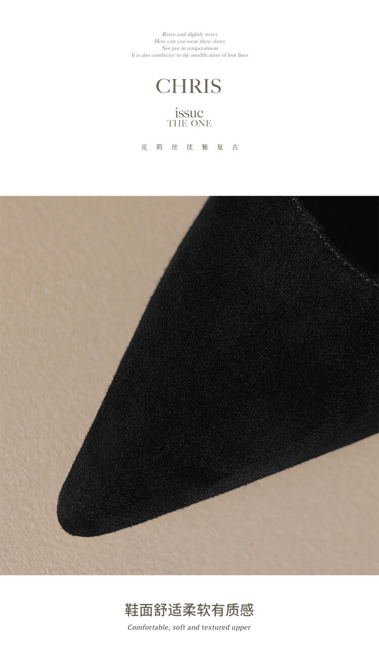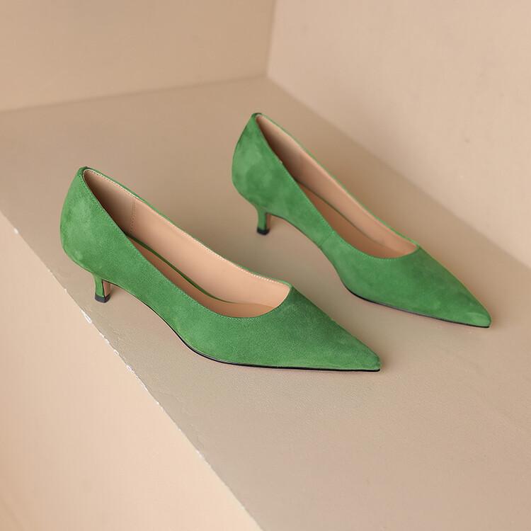 【预售5天】里外全皮女鞋细跟尖头浅口羊翻皮单鞋韩版简约复古中跟鞋通勤鞋NDXC&6511