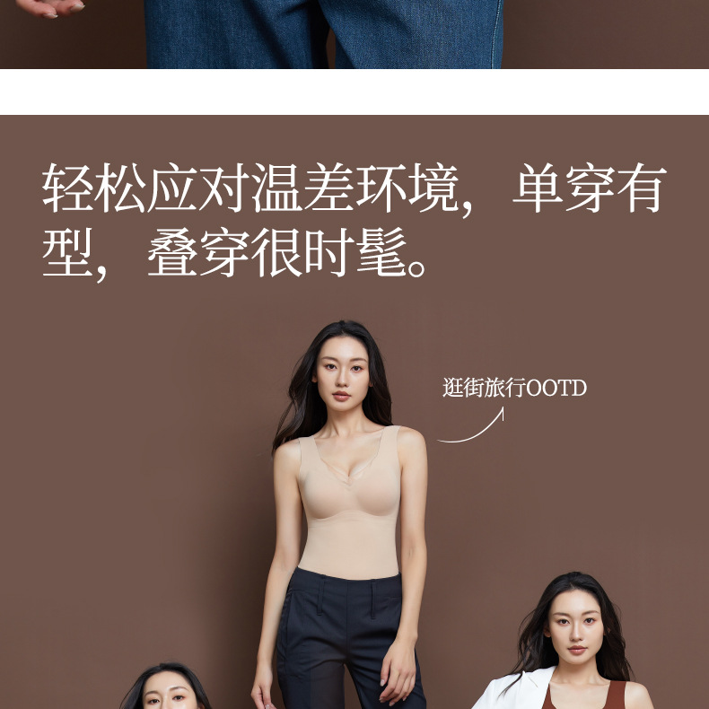 【秒杀】【免穿文胸】女士无痕裸感免穿文胸显瘦保暖背心女8621 100%