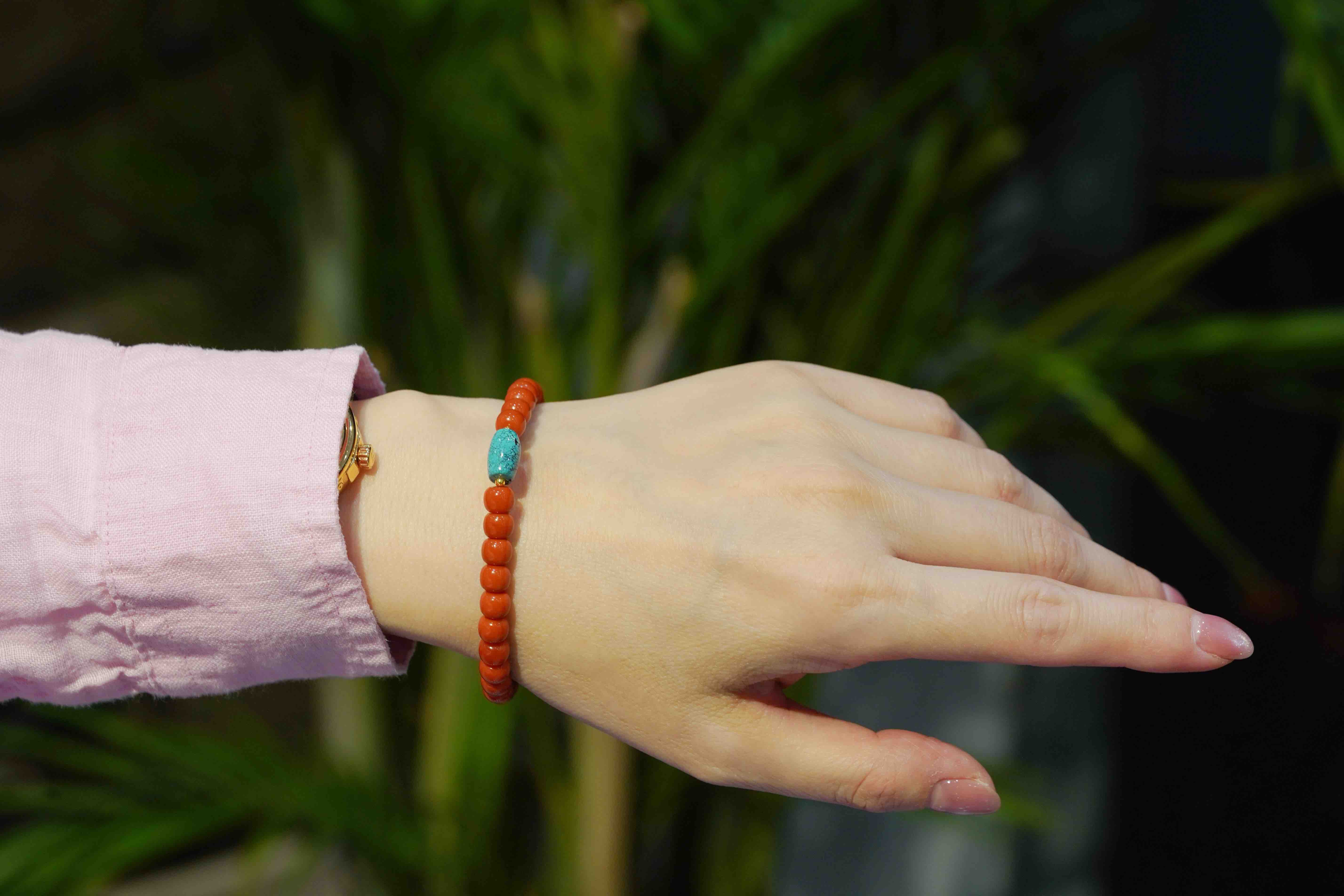 南红绿松手串