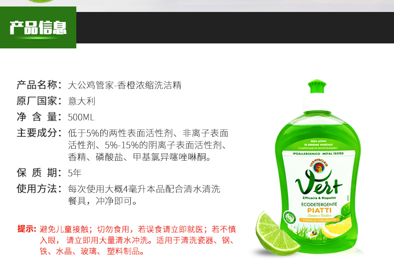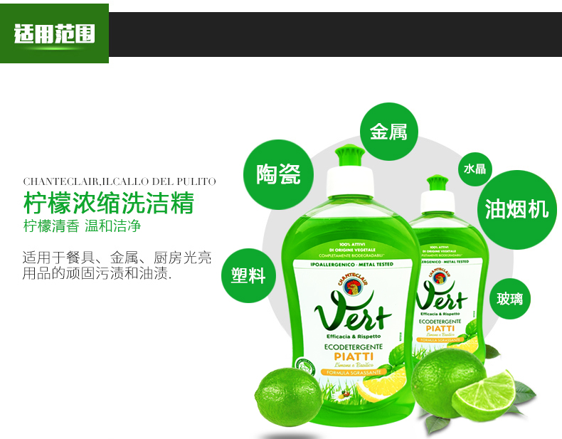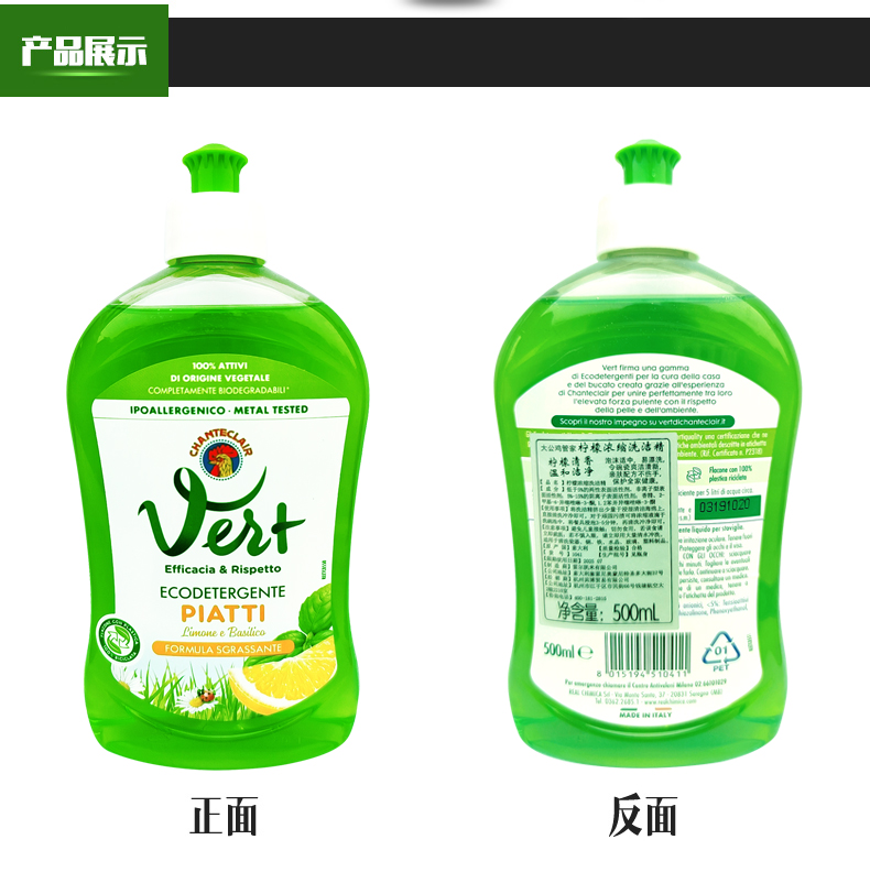 CHANTECLAIR 大公鸡管家 浓缩柠檬洗洁精 植物配方 (意大利进口) 500ml