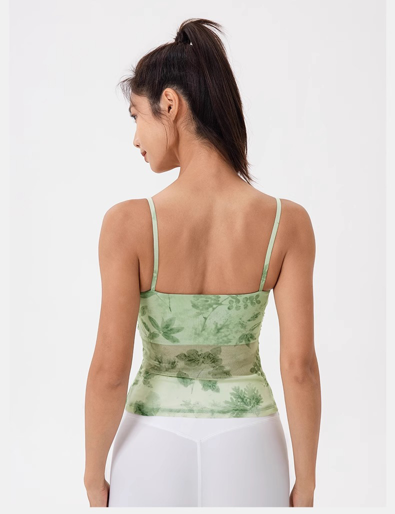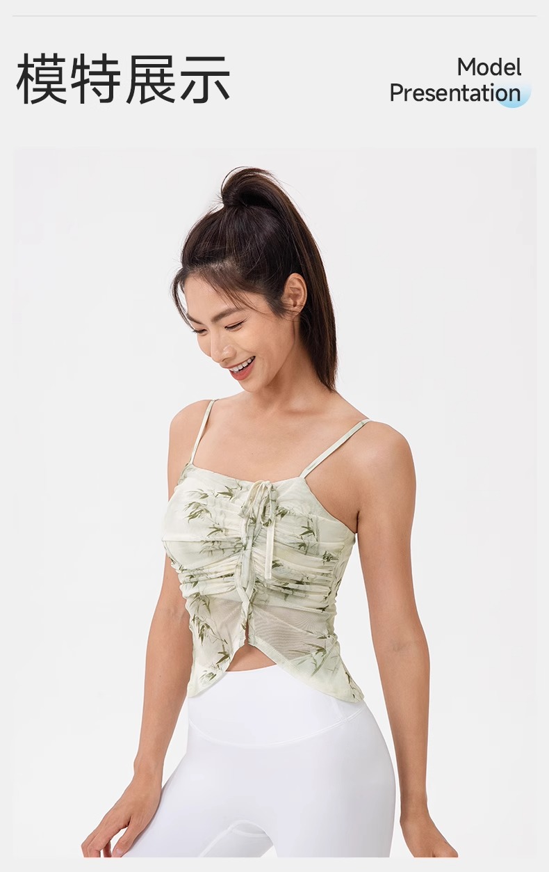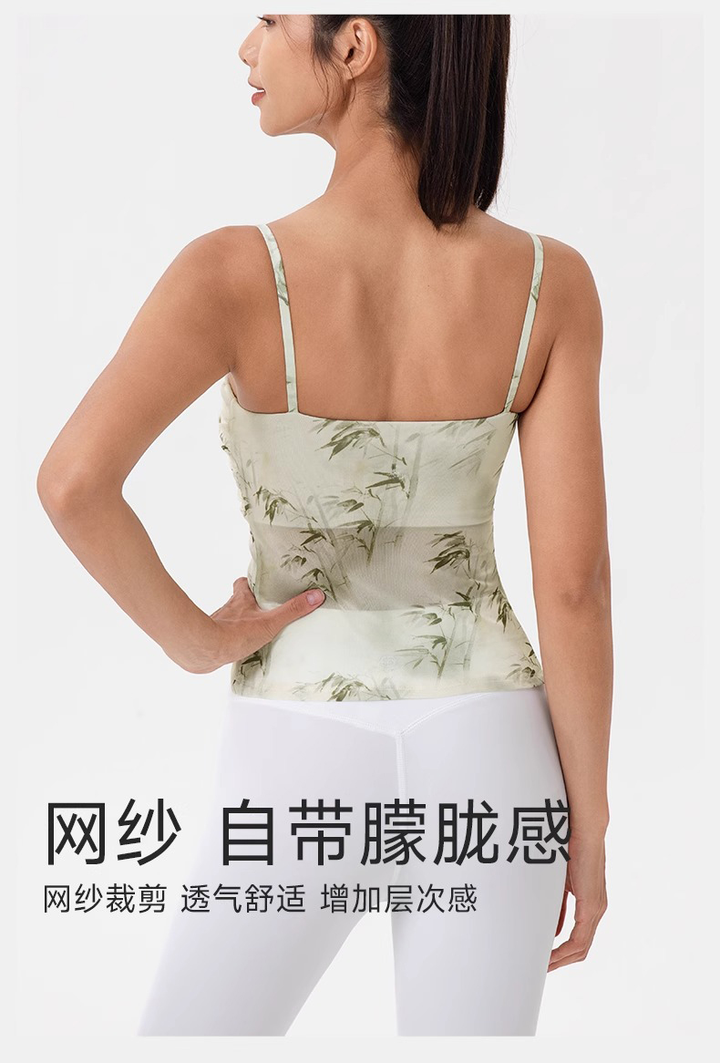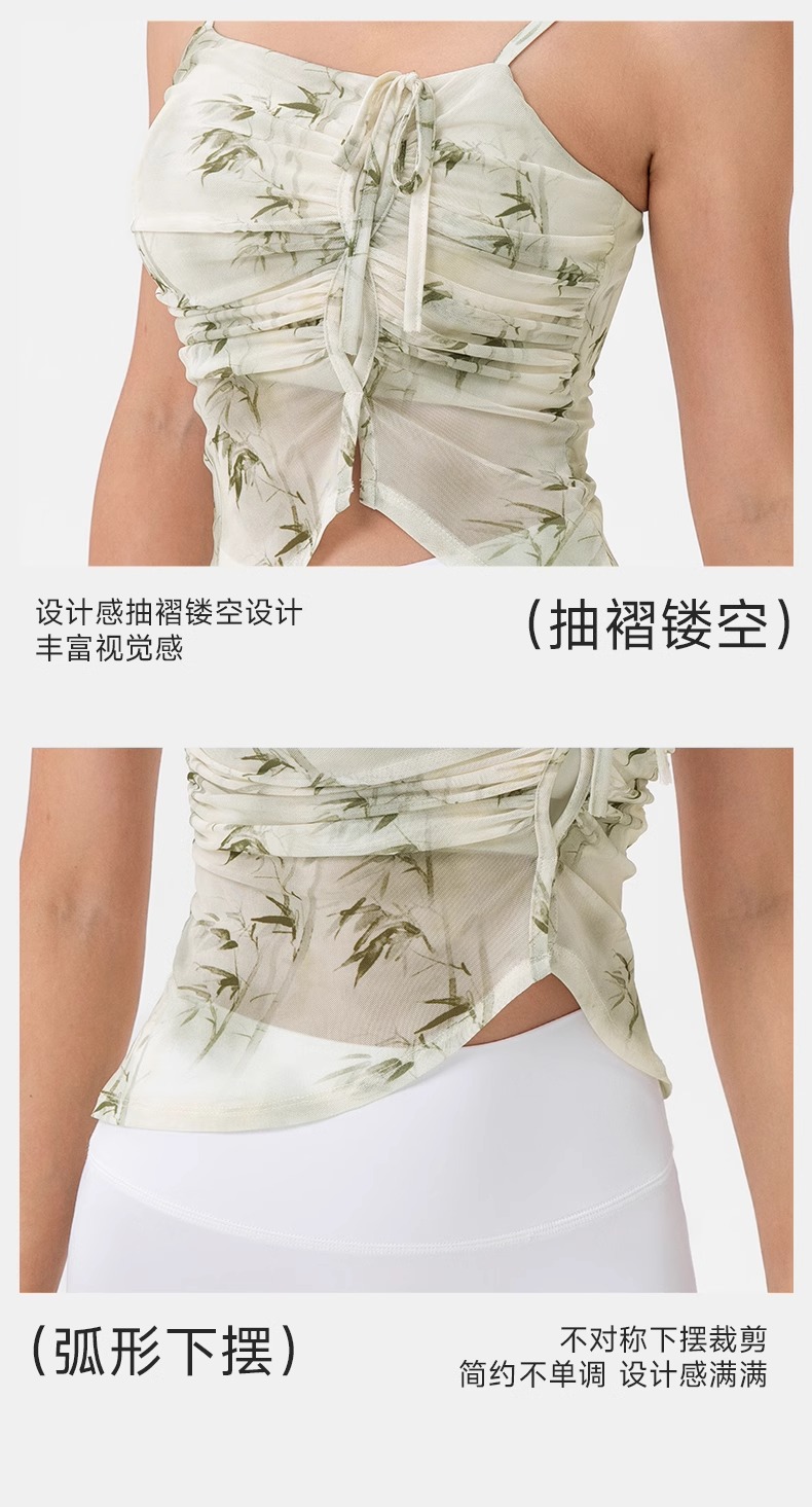 跃牌【欲动春风】系列 印花瑜伽背心女网纱透气速干舞蹈普拉提健身背心上衣42164