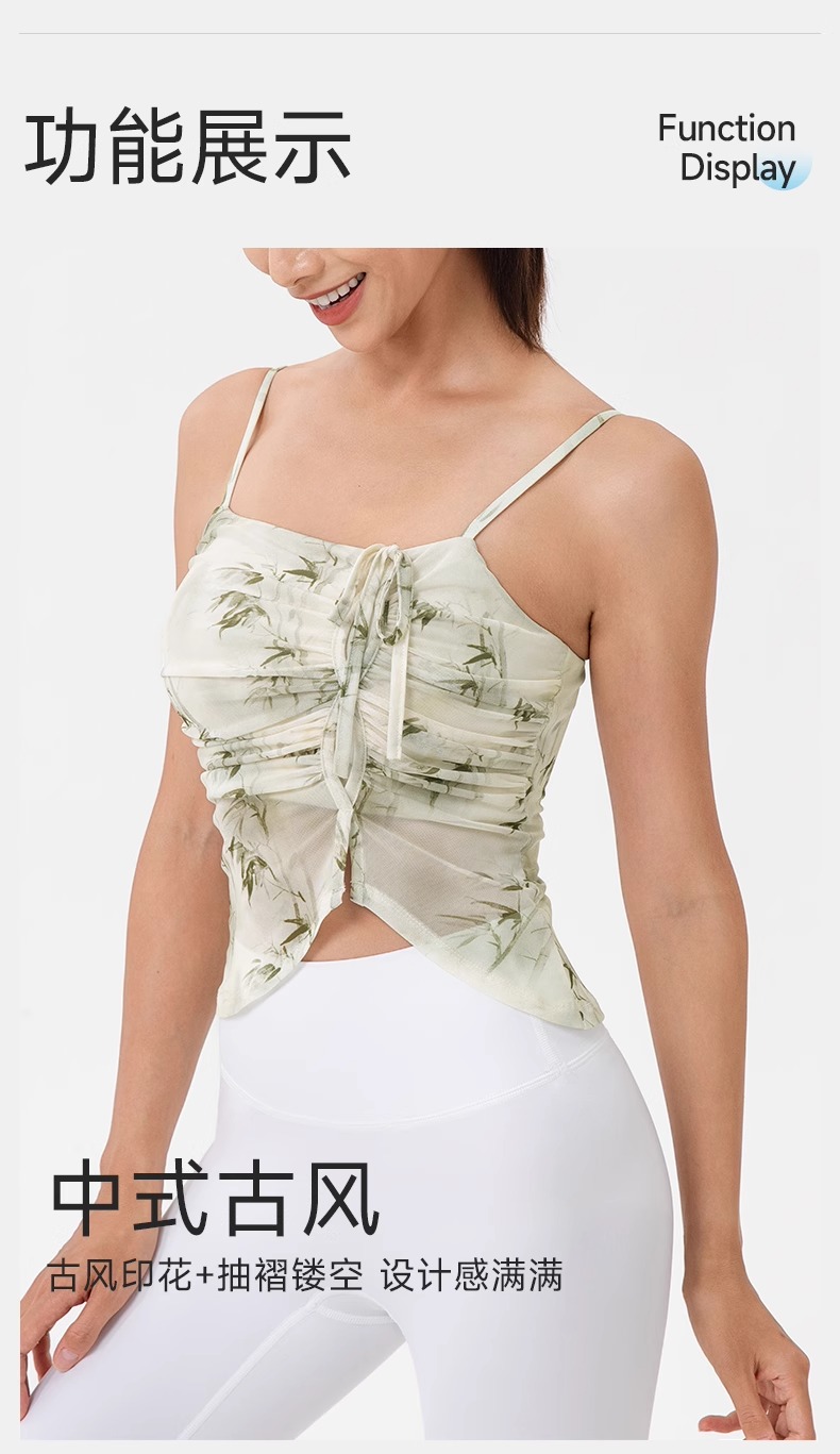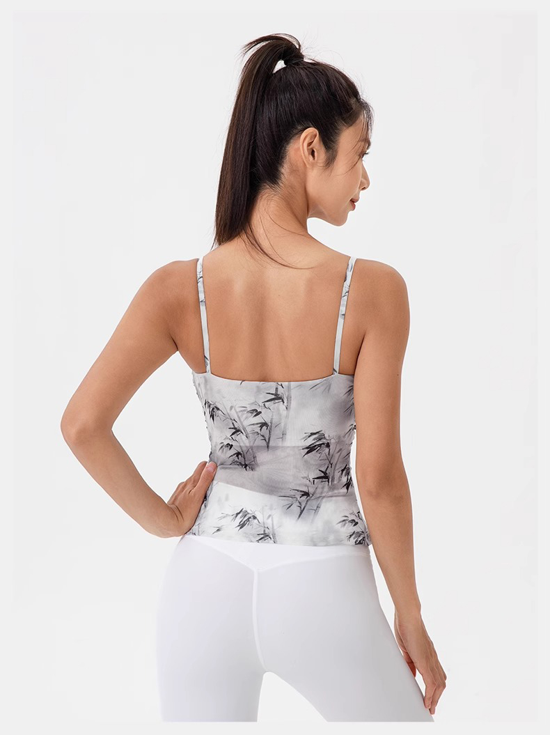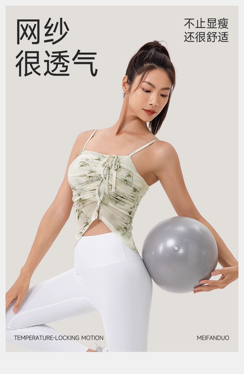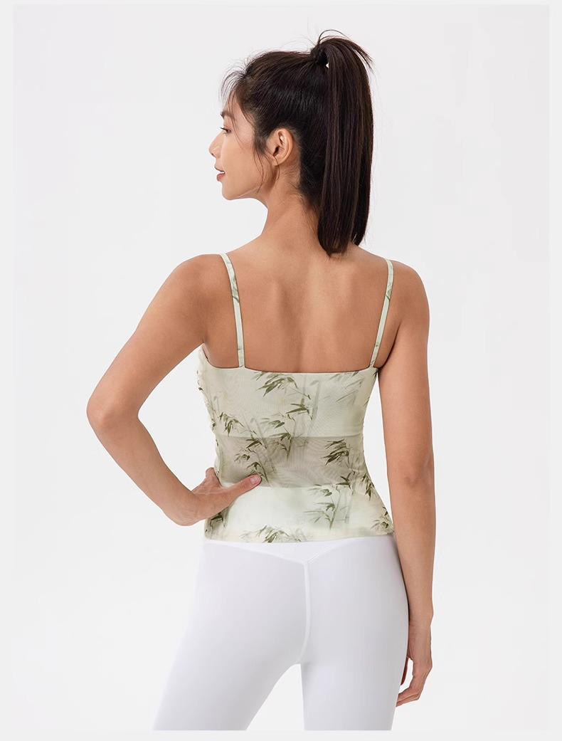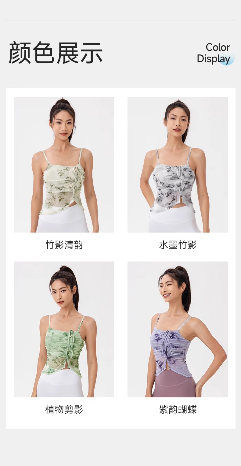 跃牌【欲动春风】系列 印花瑜伽背心女网纱透气速干舞蹈普拉提健身背心上衣42164