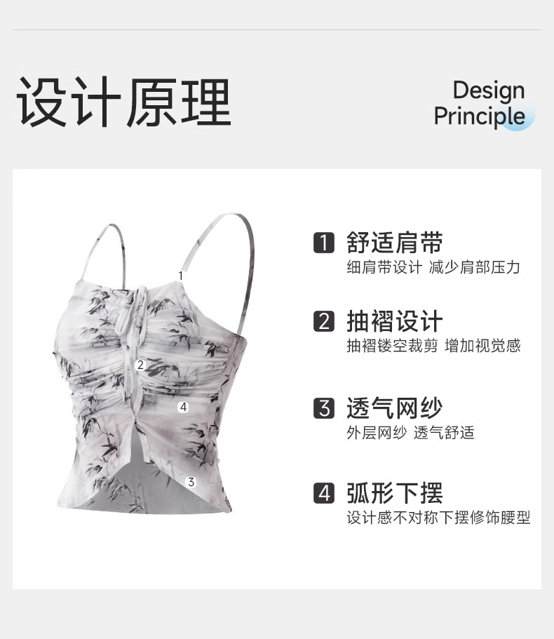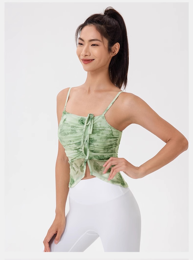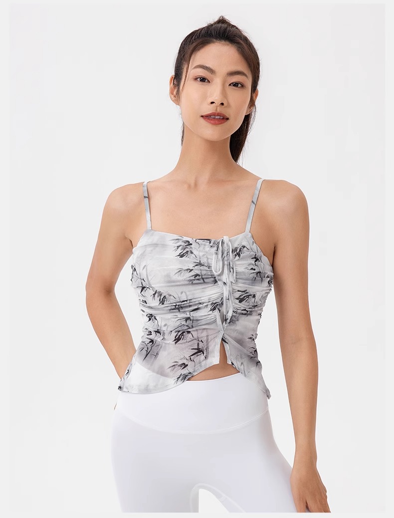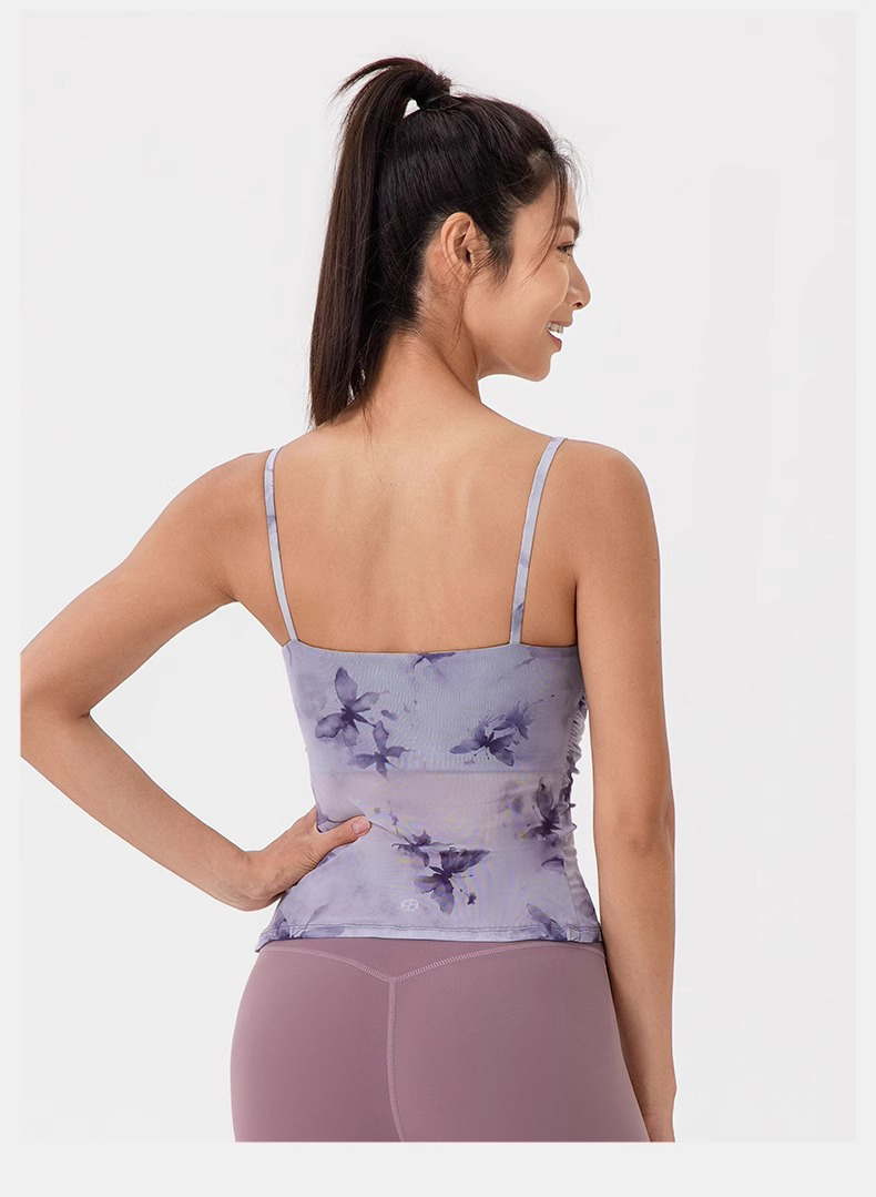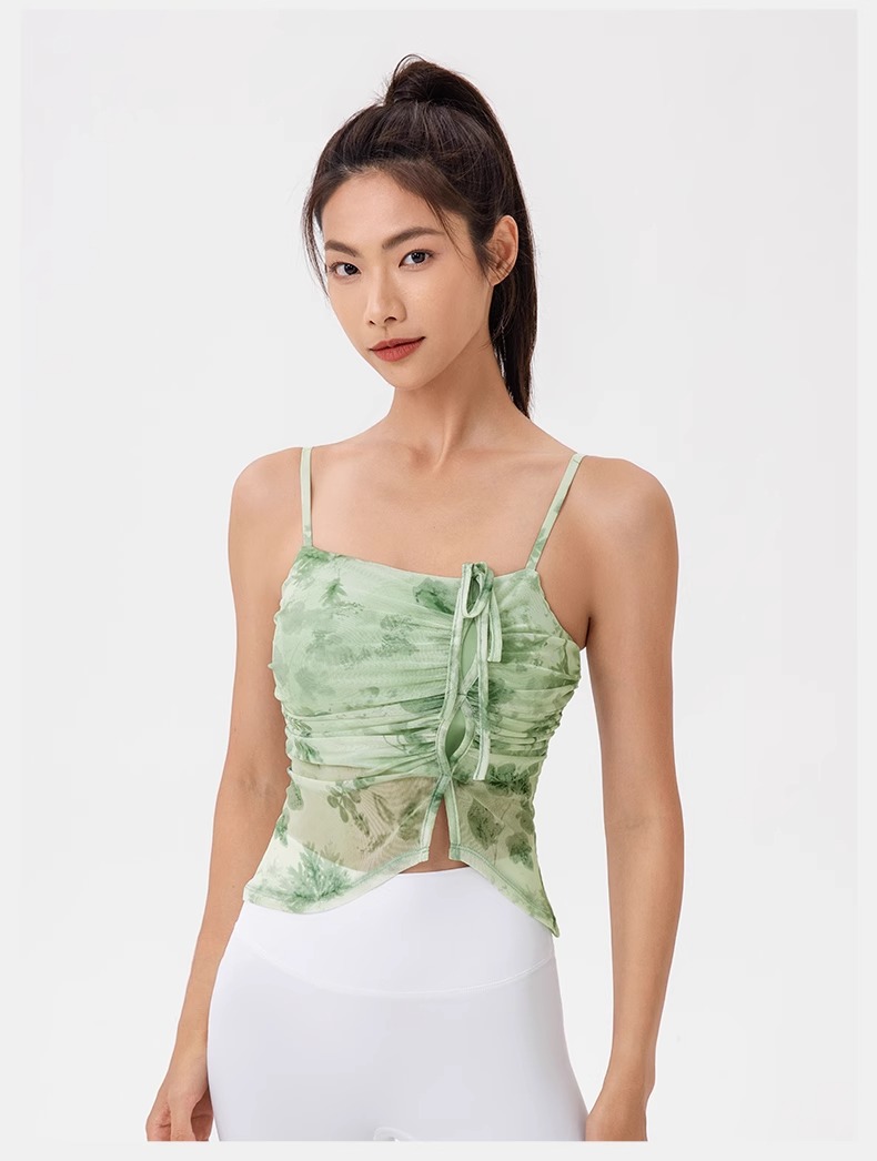 跃牌【欲动春风】系列 印花瑜伽背心女网纱透气速干舞蹈普拉提健身背心上衣42164