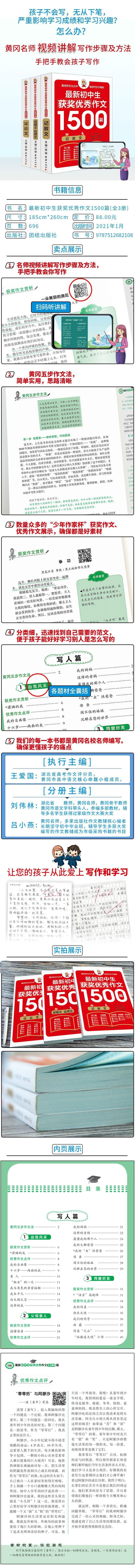 书名: 初中生获奖优秀作文1500篇·记叙文(全三册)