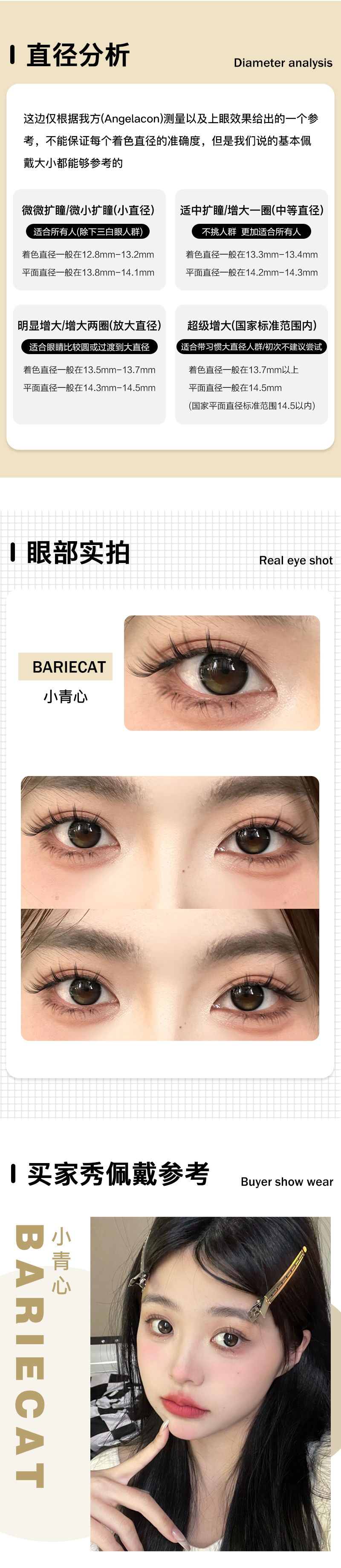 BARIECAT / 小青心 / 10片入 / 美瞳日抛 / 14.2mm / 无售后 / 适中扩瞳渐变低调融瞳自然款