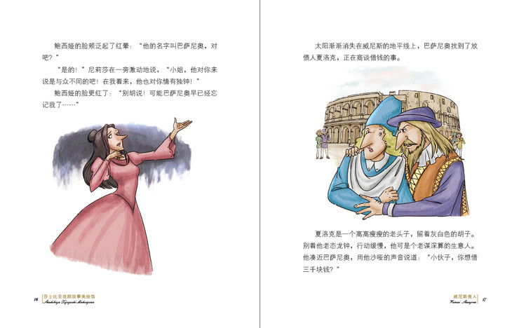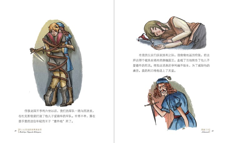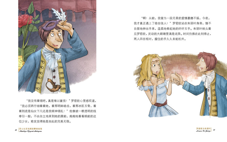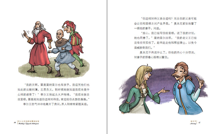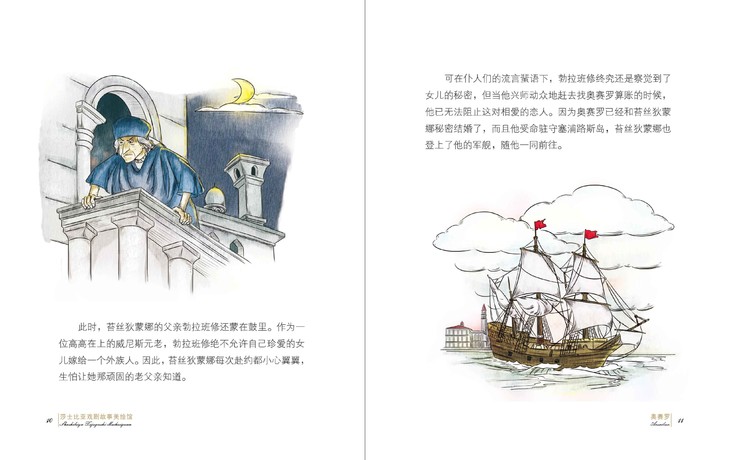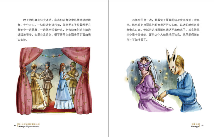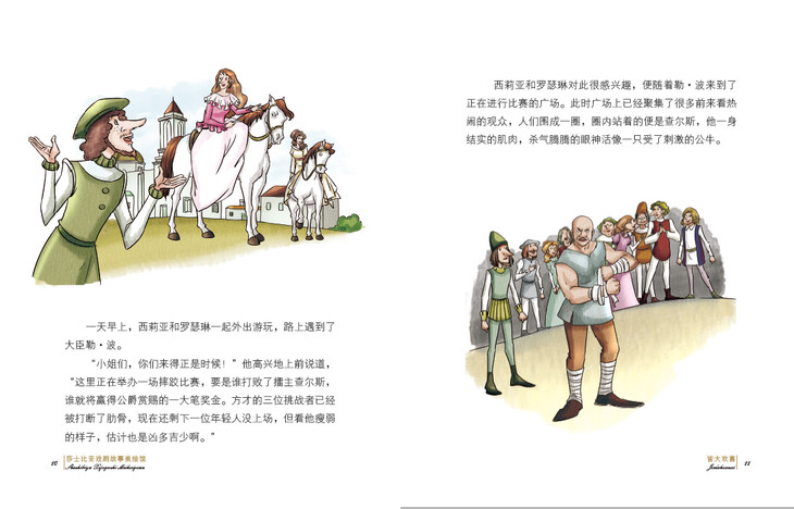 本系列是一套以莎士比亚戏剧原著为蓝本进行散文体故事改编,并配以精美手绘插图的桥梁书,丛书中囊括了了莎士比亚创作的广为传颂的十六部经典戏剧,这些剧目在西方可谓家喻户晓,妇孺皆知。在内容上,延承了莎士比亚戏剧的美感,文字韵律优美,把深奥的古典文学作品加以通俗化和简单化,让渴望接近原著却又难解其深刻含义的广大小读者,不再望文兴叹。从遥不可及到近在咫尺,让小学生有机会亲身登临莎翁华丽的艺术舞台,与大师对话。在形式上,采用文图1:1比例,以纯手绘欧美式画风还原故事场景,使人物表现力生动,增强故事张力,让小读者能够身临其境感受名著魅力。可以说该系列在文字、插图上都极具文学性和观赏性,让孩子们能从一幕幕戏剧中体验到古老的英伦风情,了解到欧洲的历史文化,并在主人公们的身上看到与他们截然不同的英式教养。