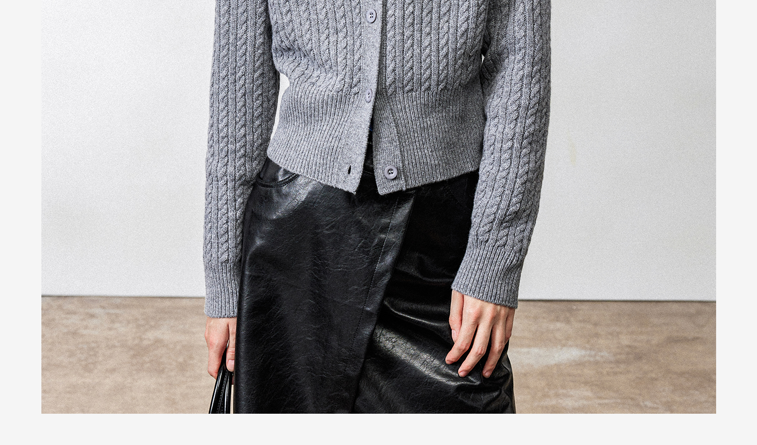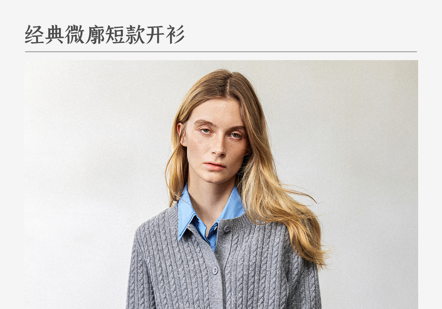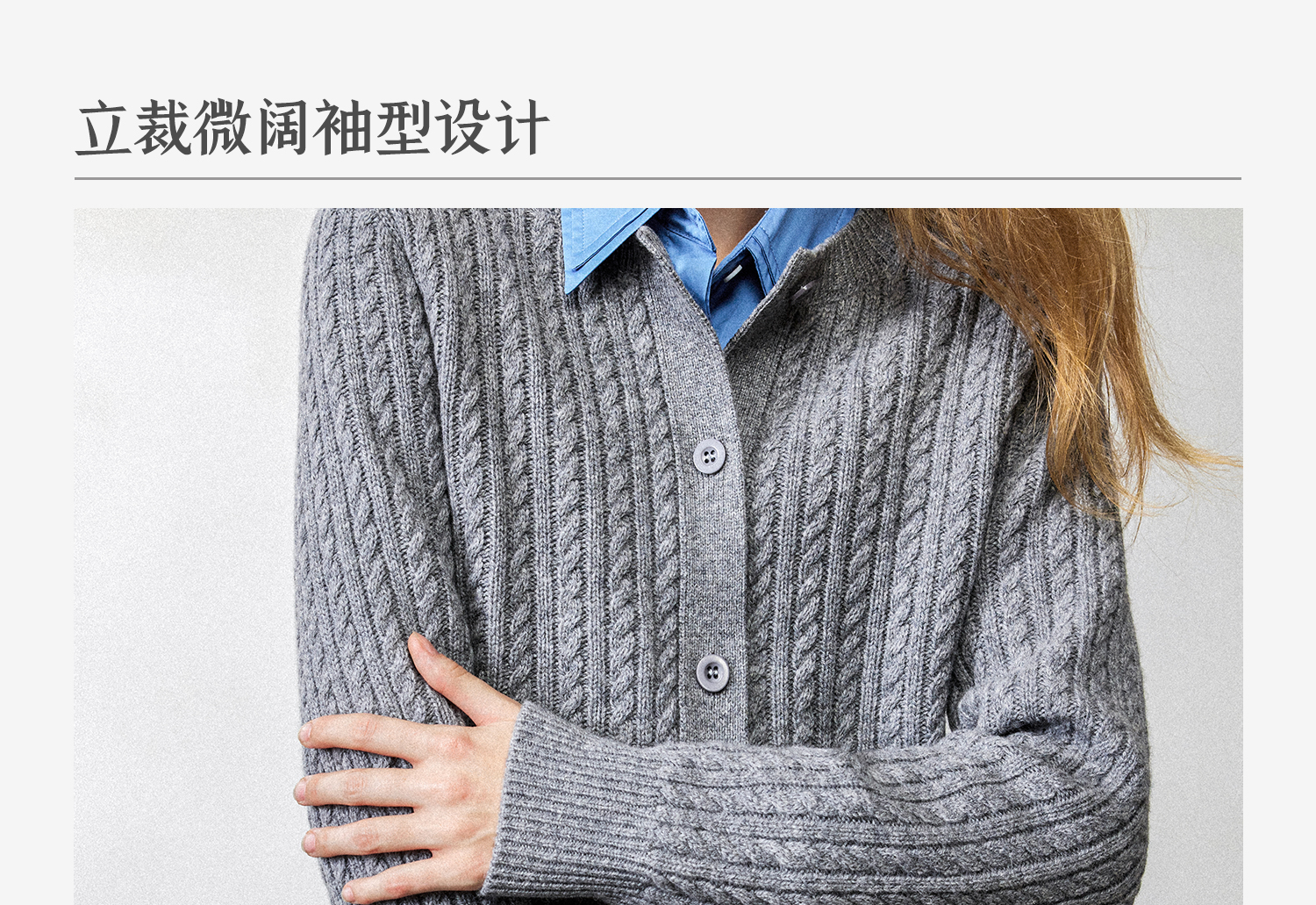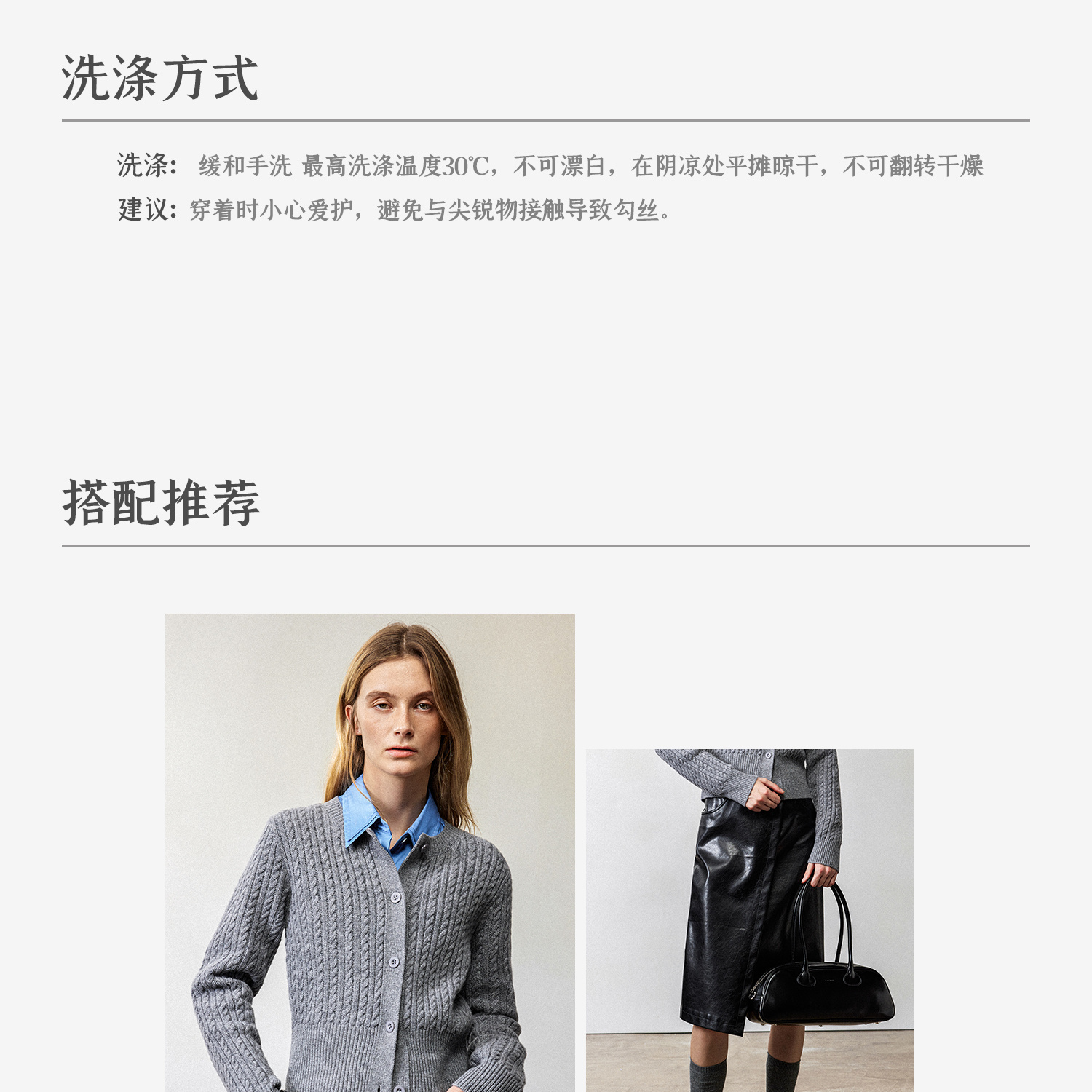 西嘉|全澳毛 MIU系开衫毛衣女绞花圆领短款针织上衣2024年秋冬季