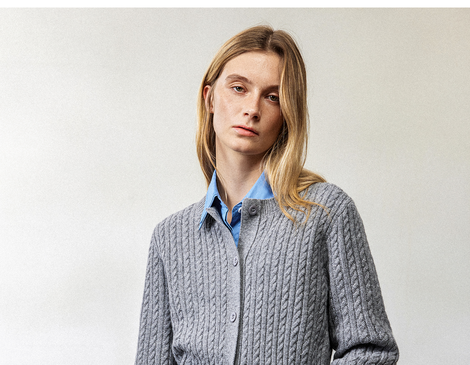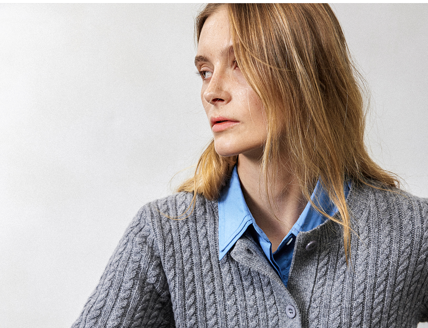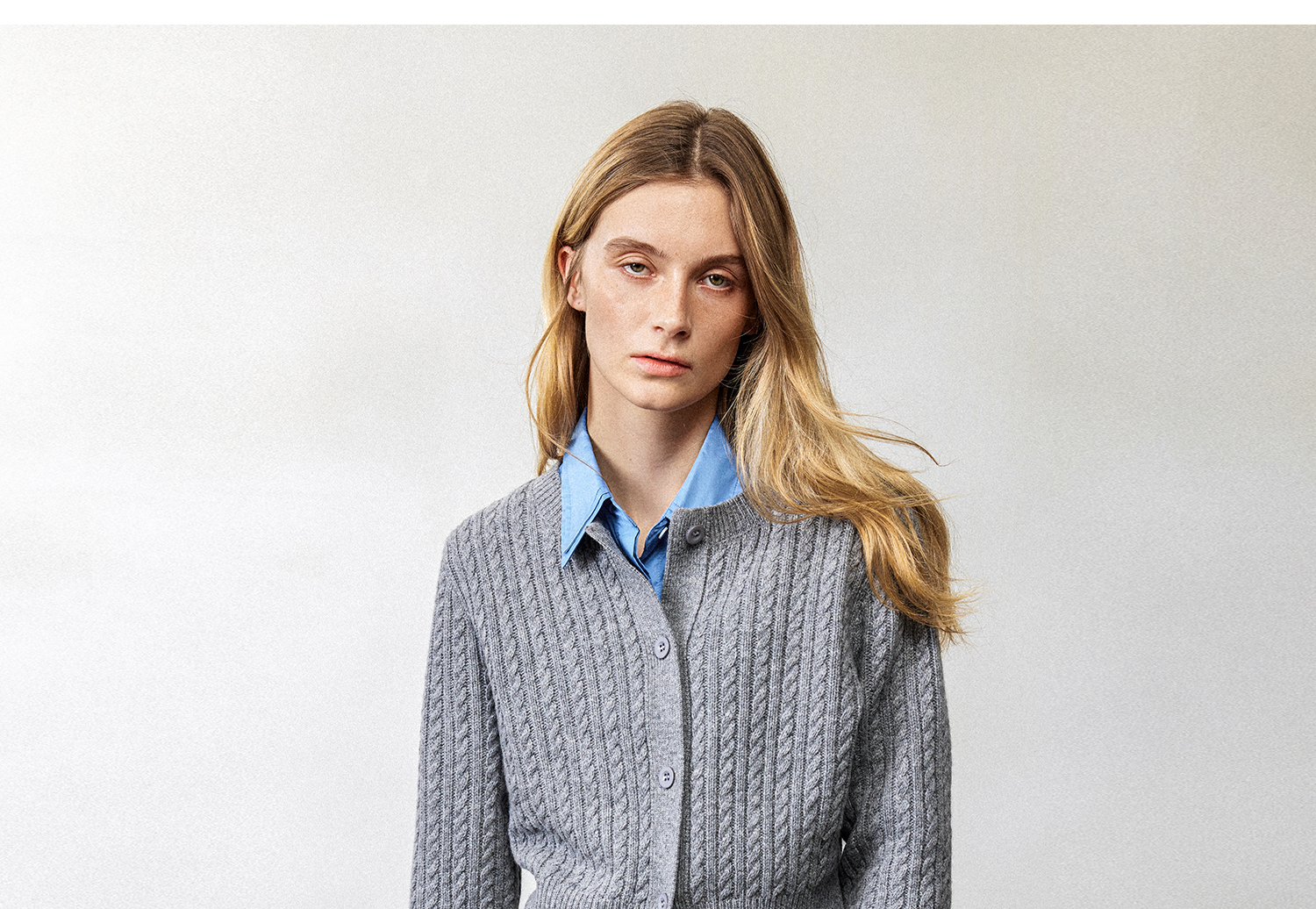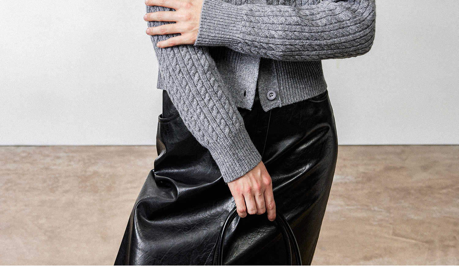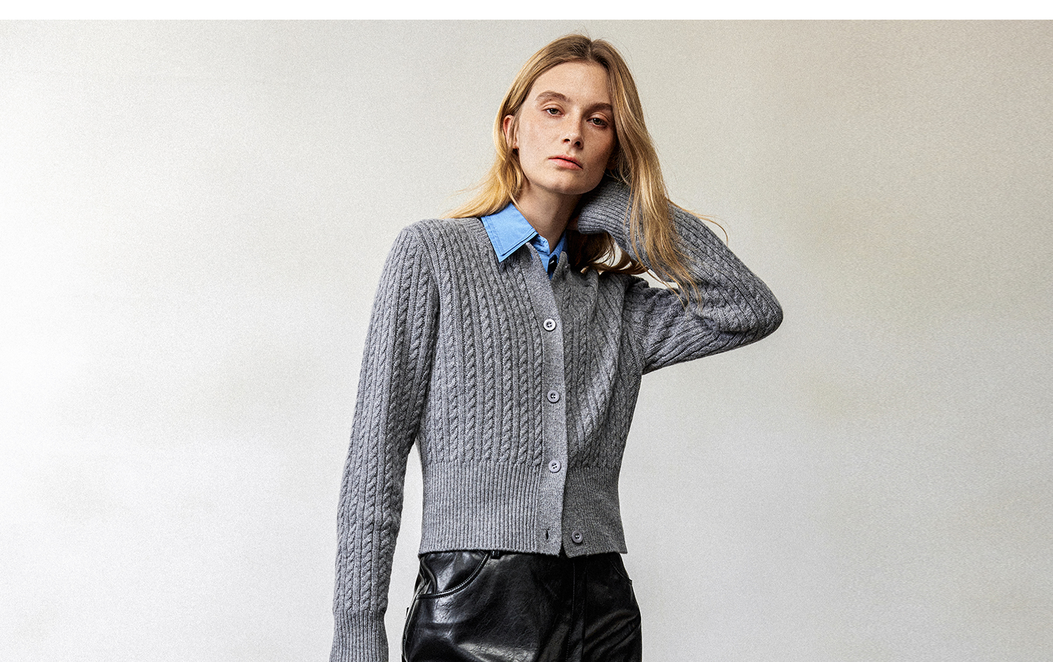 西嘉|全澳毛 MIU系开衫毛衣女绞花圆领短款针织上衣2024年秋冬季