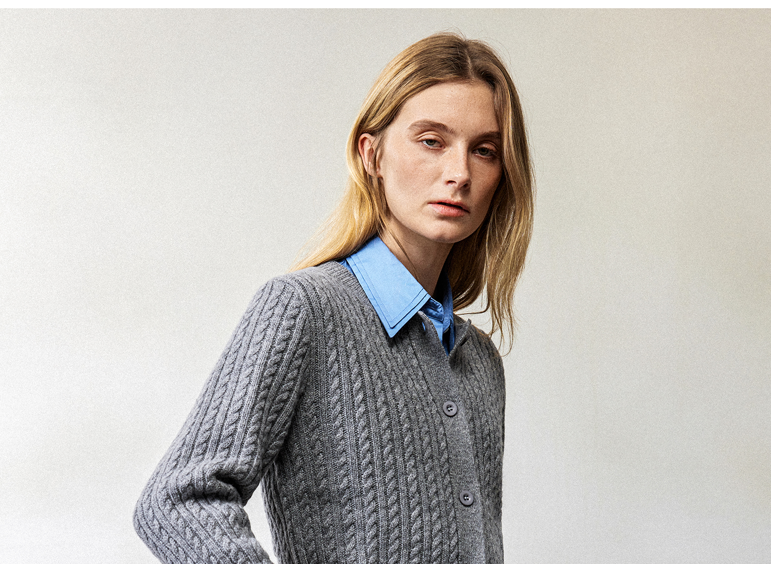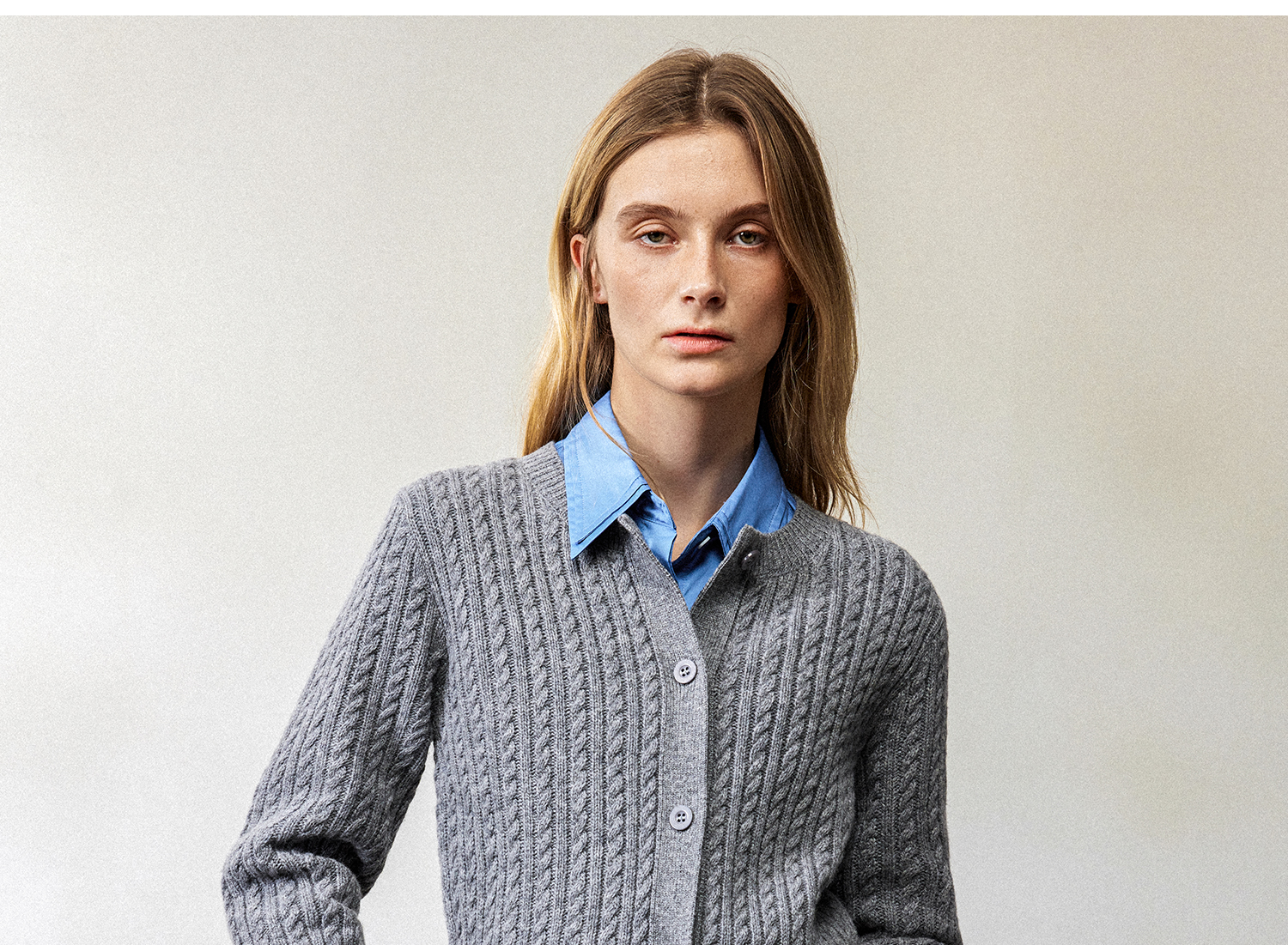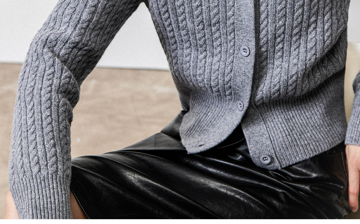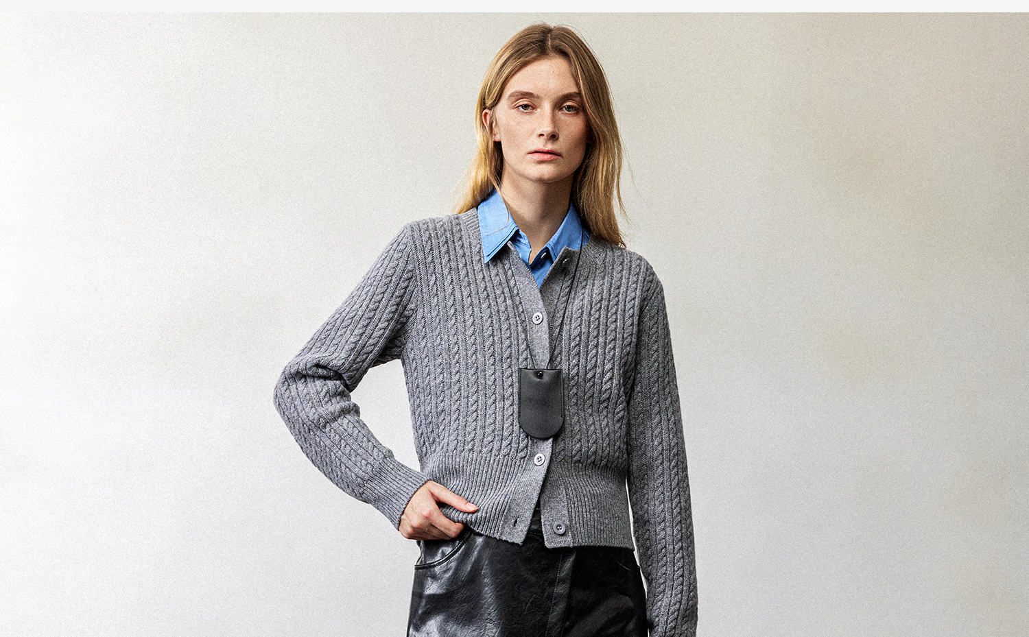 西嘉|全澳毛 MIU系开衫毛衣女绞花圆领短款针织上衣2024年秋冬季