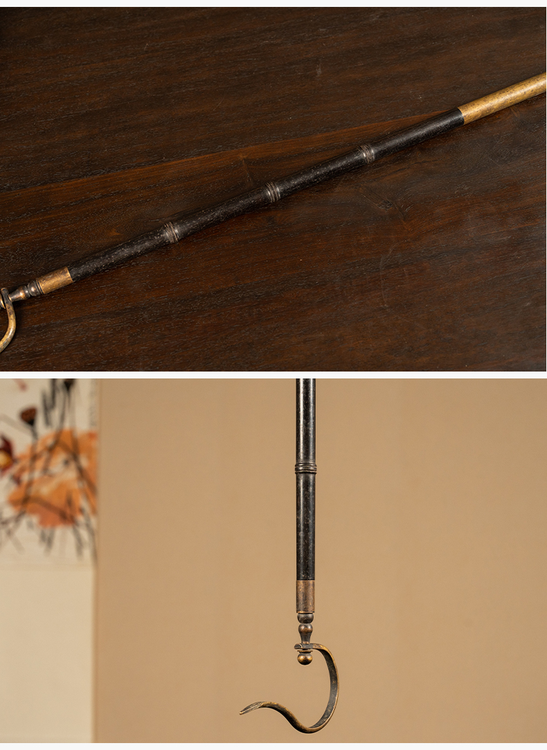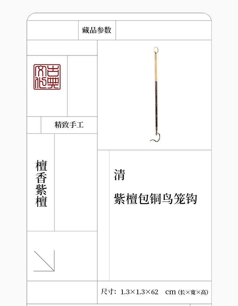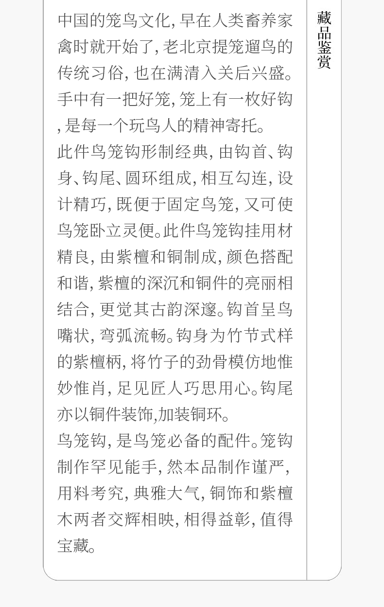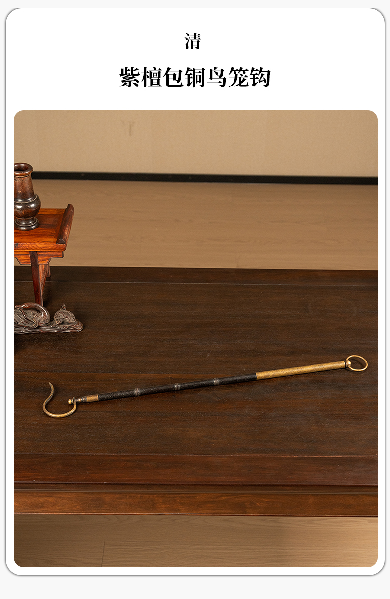 清 紫檀包铜鸟笼钩