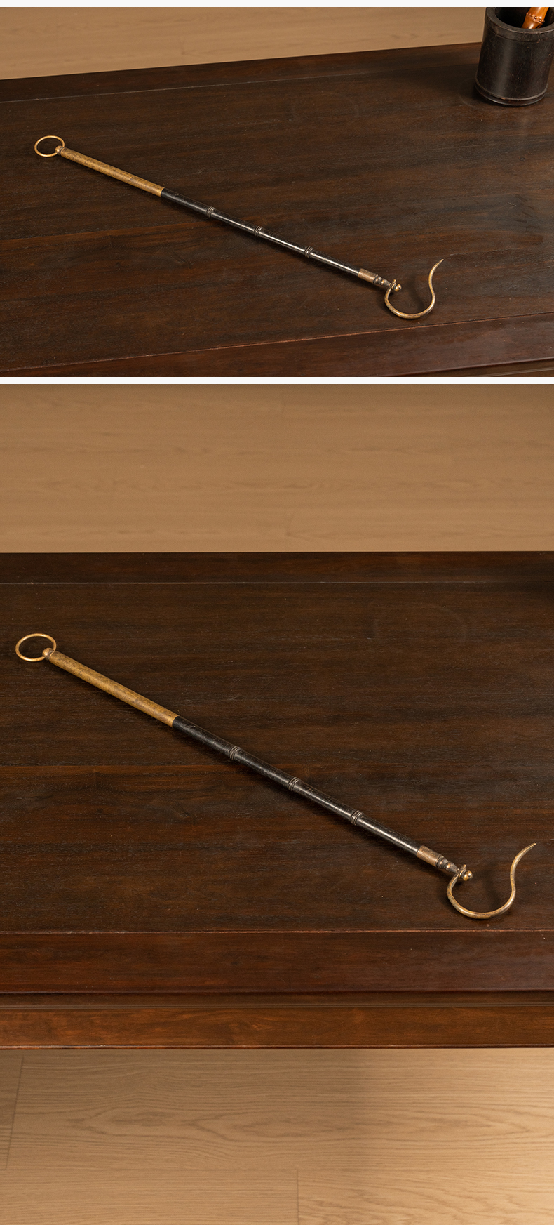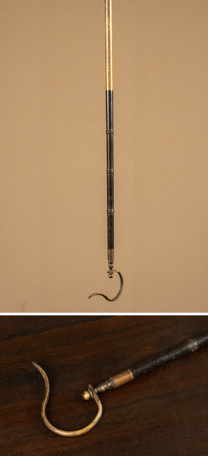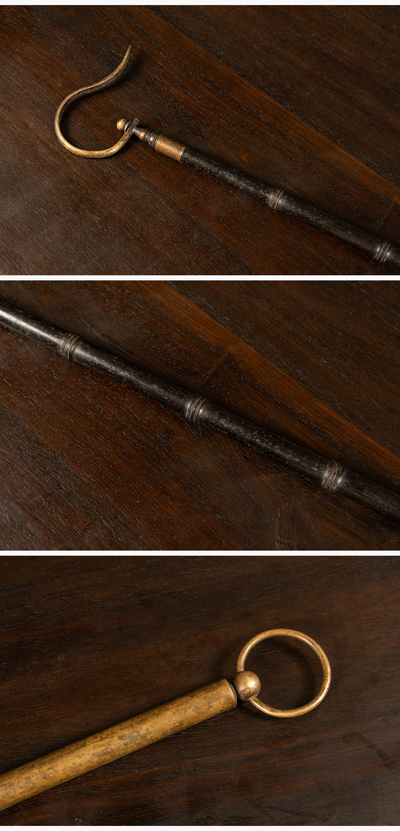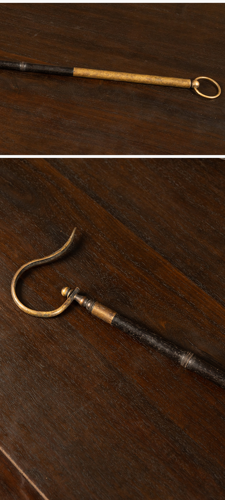 清 紫檀包铜鸟笼钩