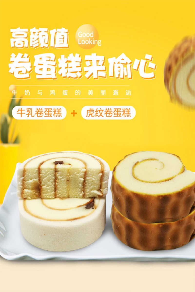 【蛋香浓郁,细腻蓬松,营养早餐!】虎皮蛋糕卷 夹心面包 学生代餐 速食蛋糕 网红零食 食品糕点 牛奶与鸡蛋的美丽邂逅-QQ