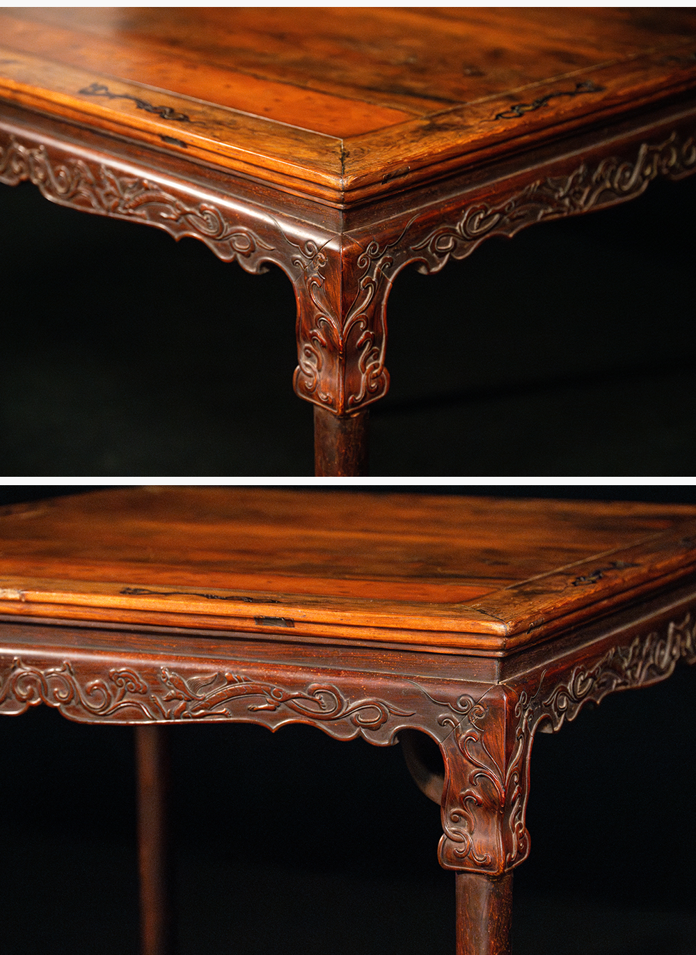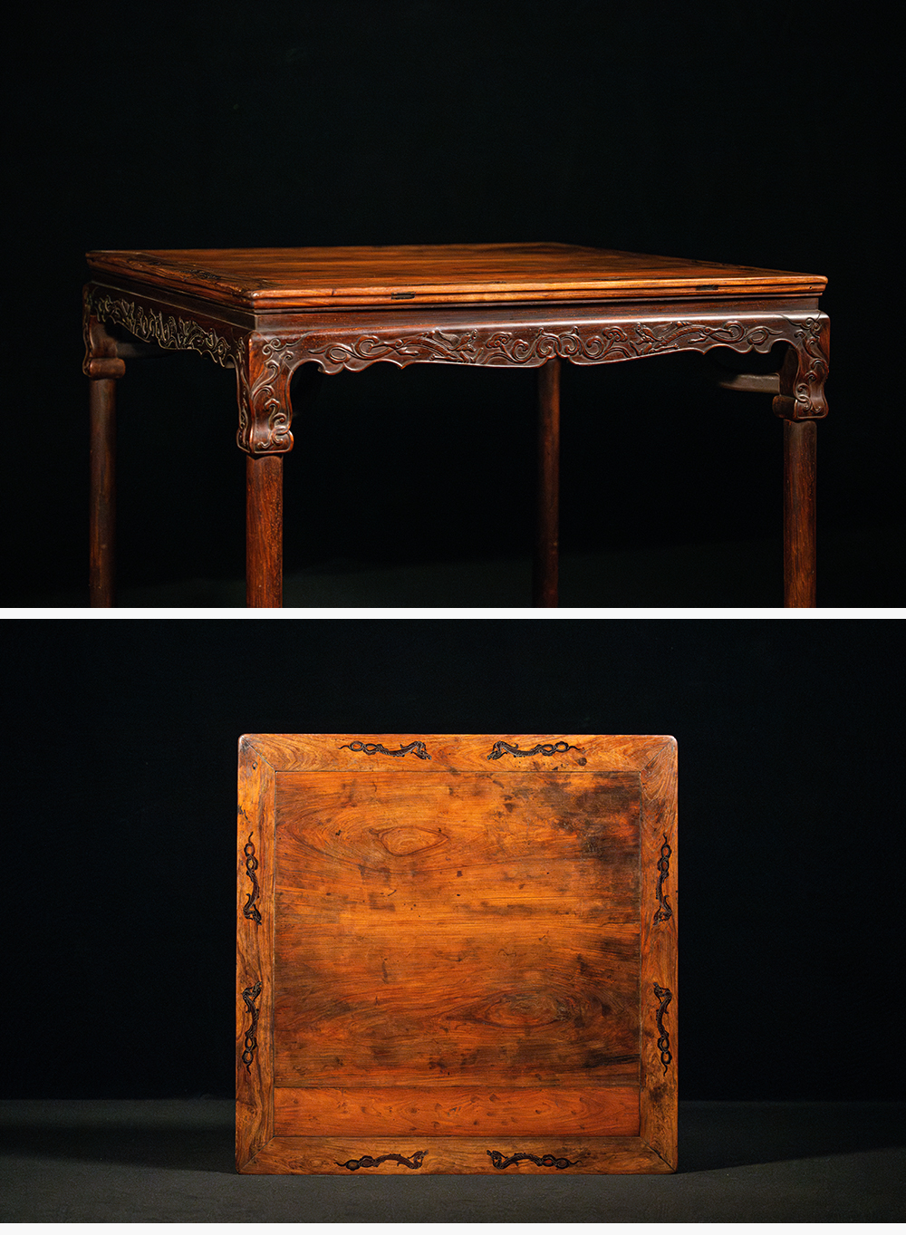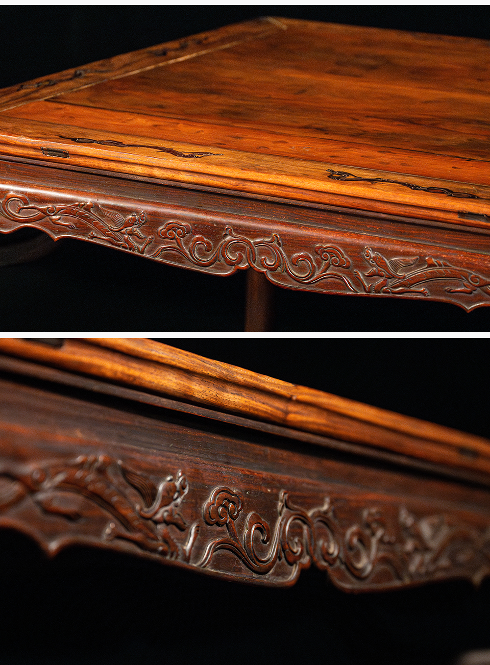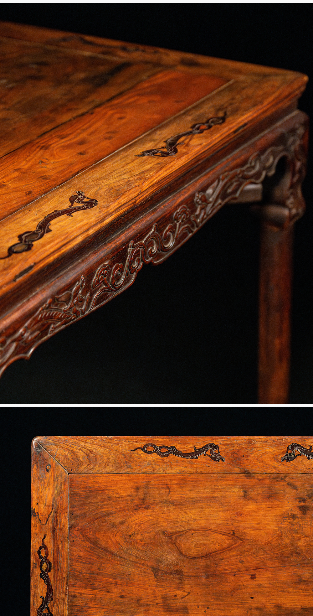 清早期 黄花梨嵌紫檀螭龙纹展腿方桌