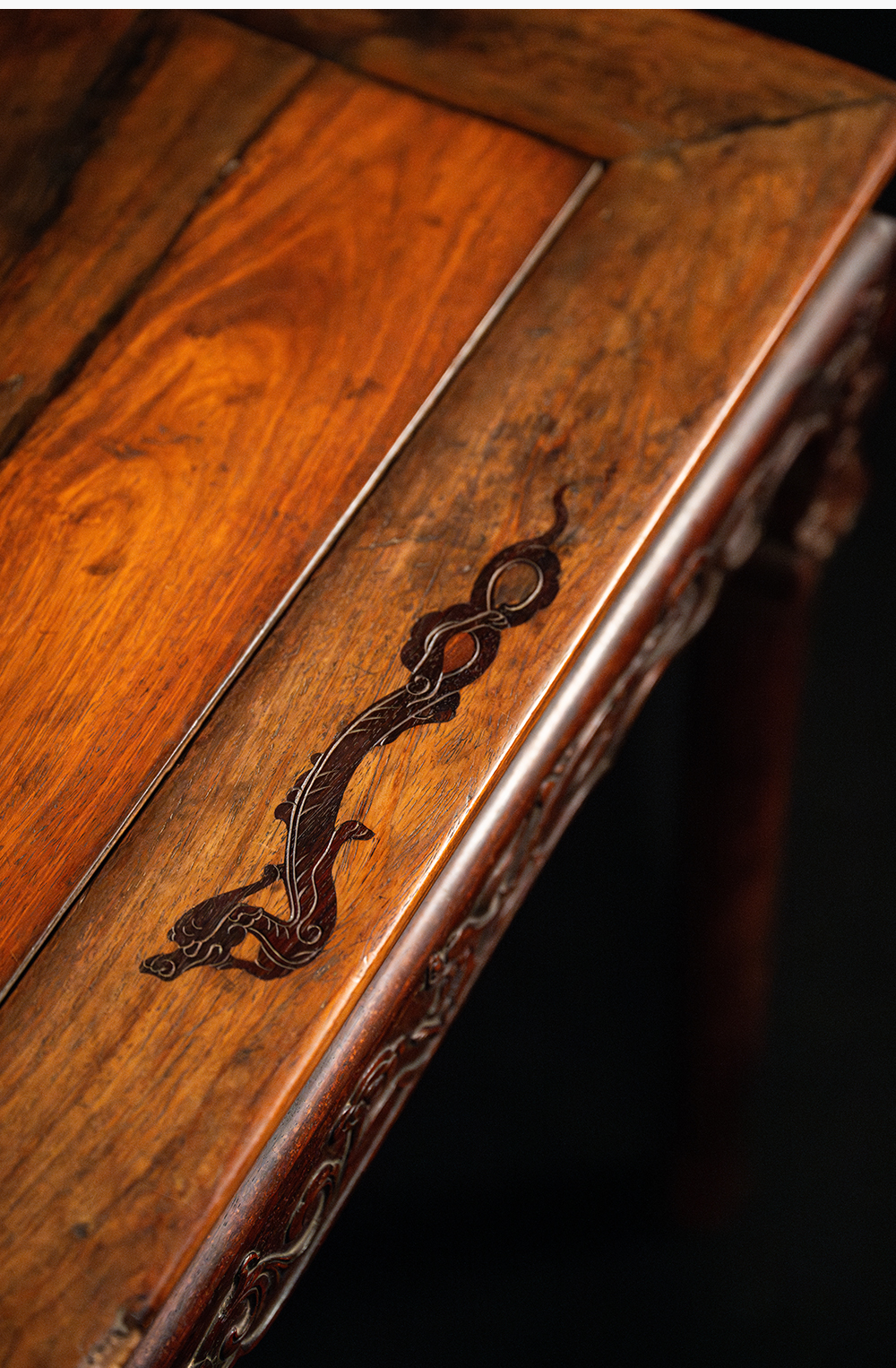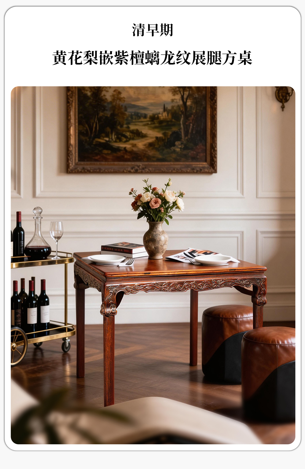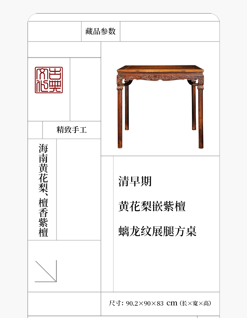 清早期 黄花梨嵌紫檀螭龙纹展腿方桌