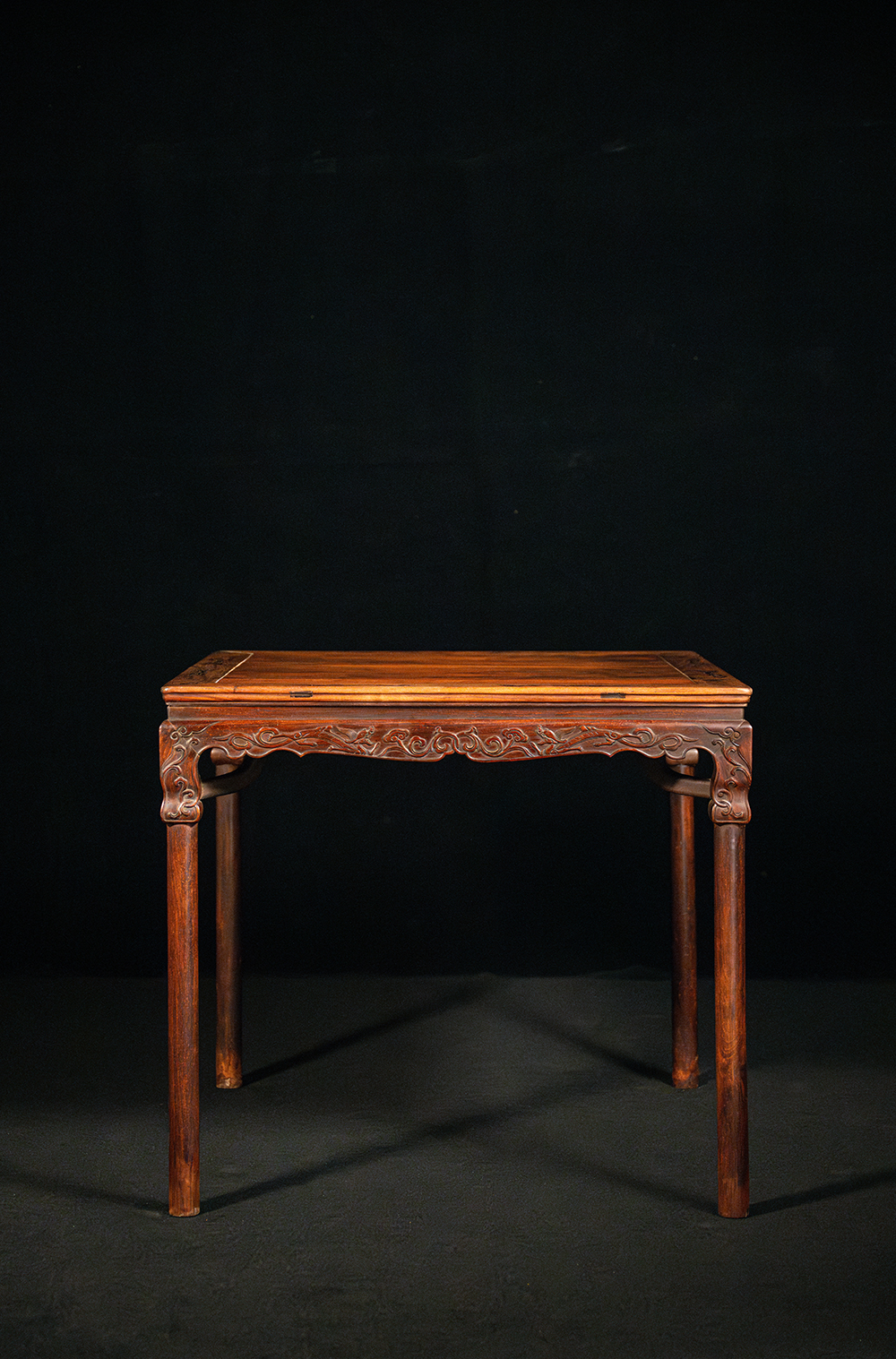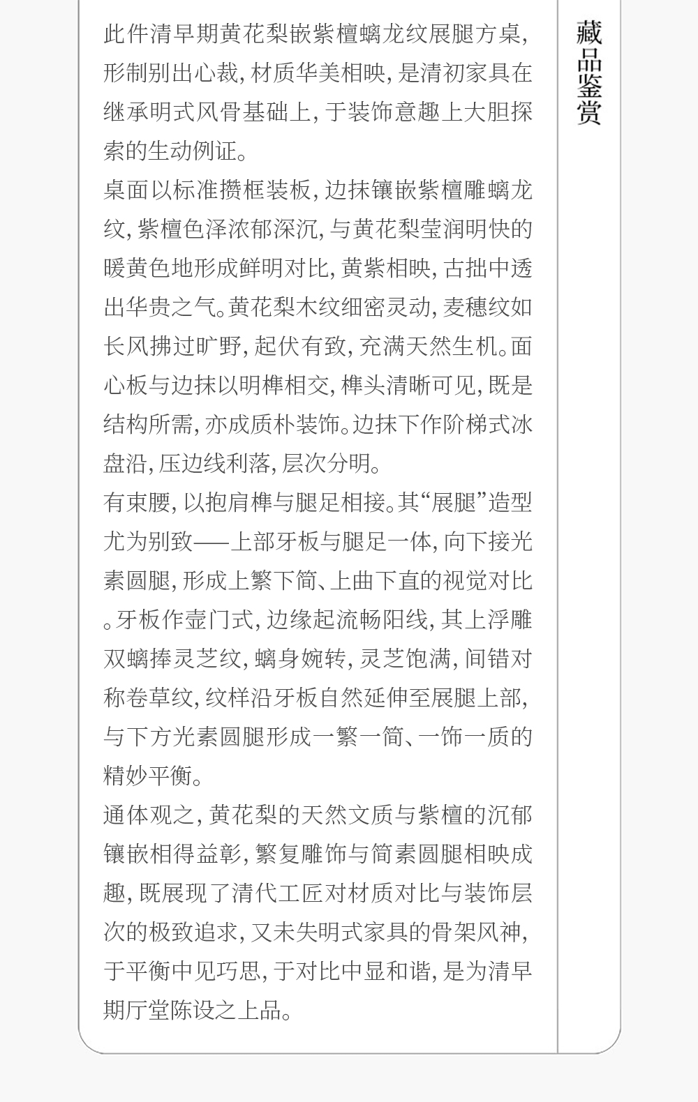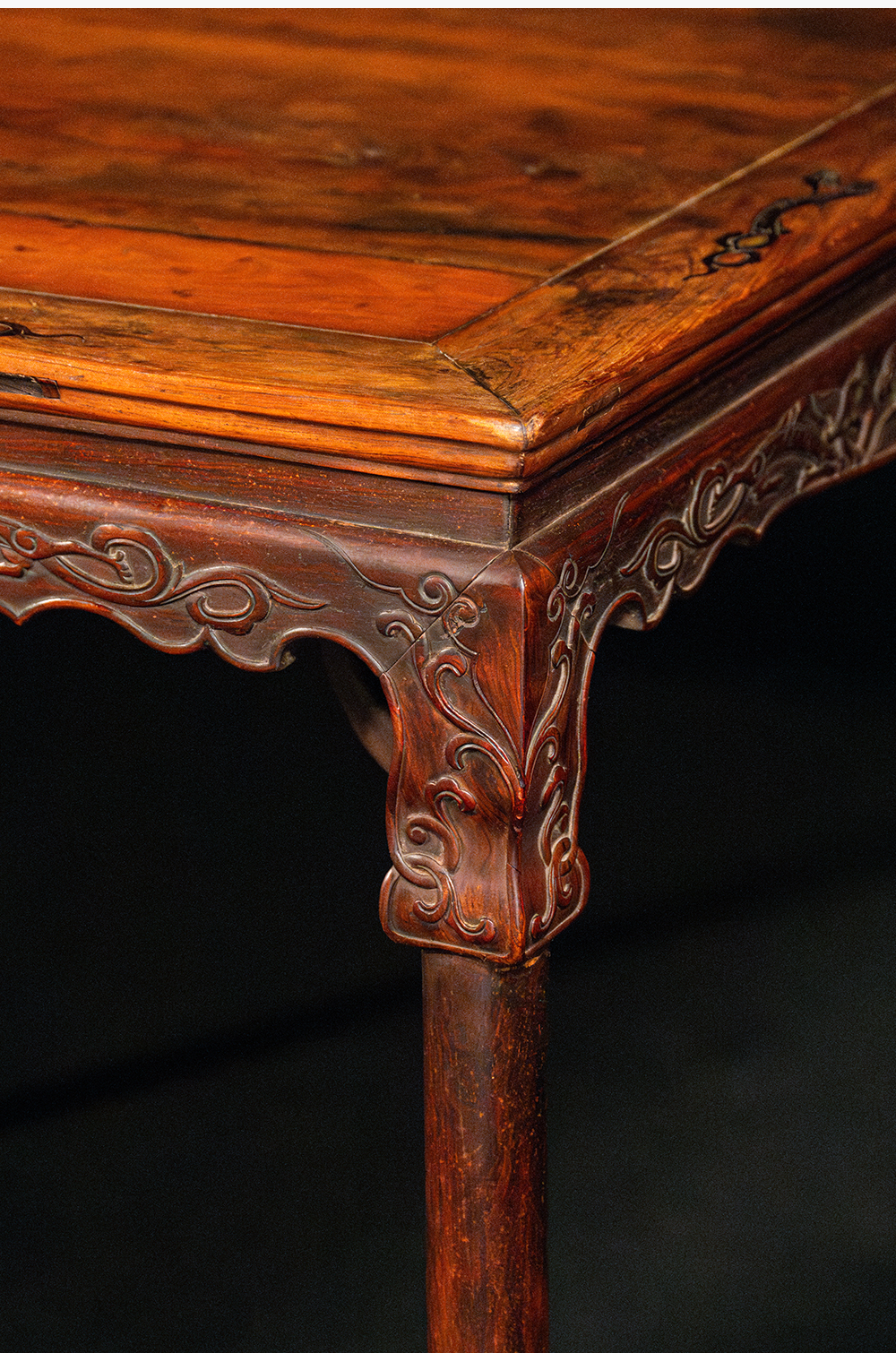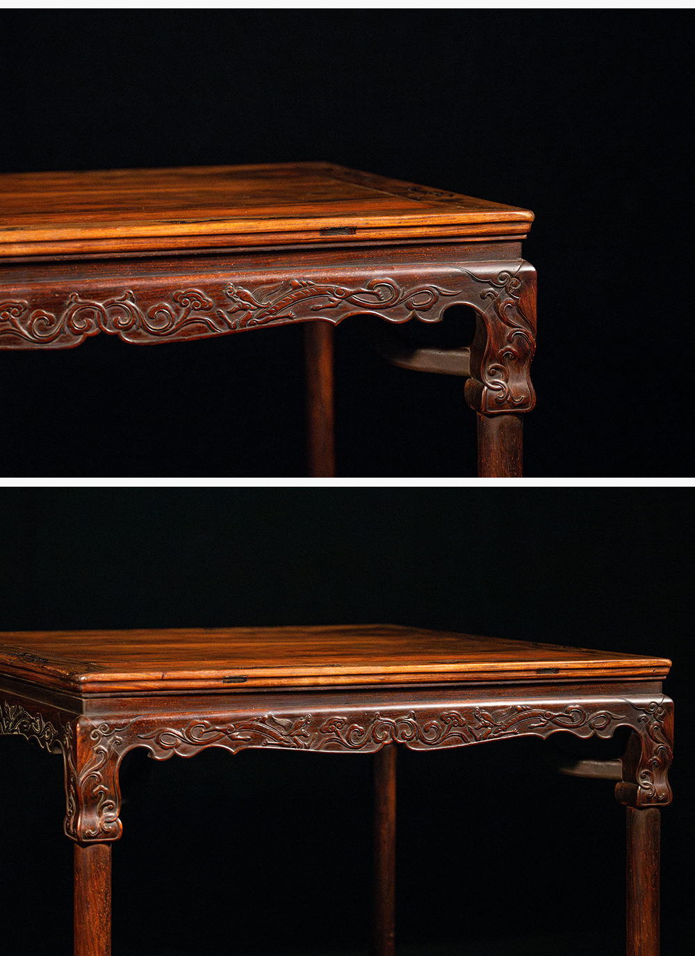 清早期 黄花梨嵌紫檀螭龙纹展腿方桌