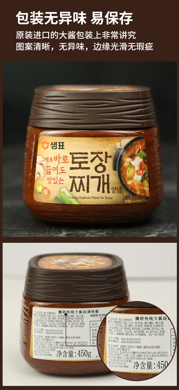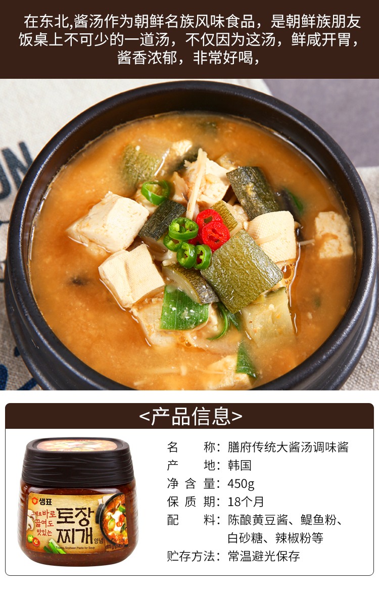 샘표토장찌개된장膳府大酱450g