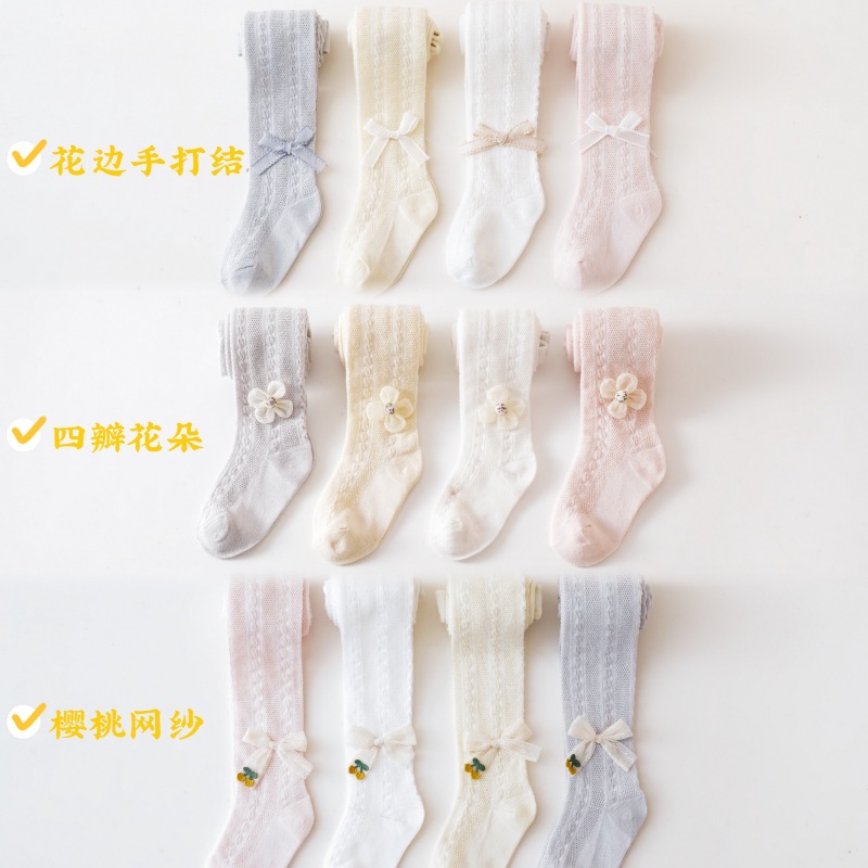 【棉柔的会呼吸,网眼透气打底裤袜】女童连裤袜夏季薄款 透气女宝宝打底裤袜 可爱儿童婴儿防蚊袜网眼-QQ
