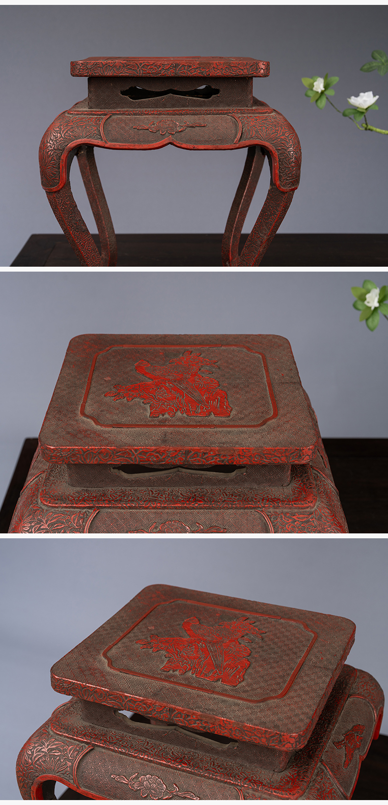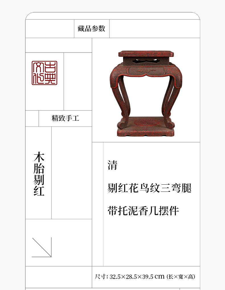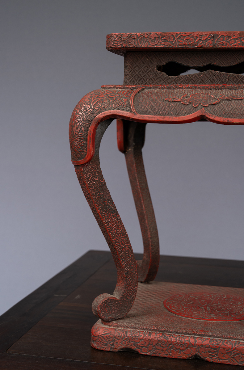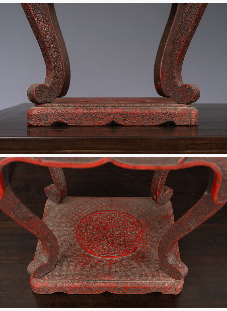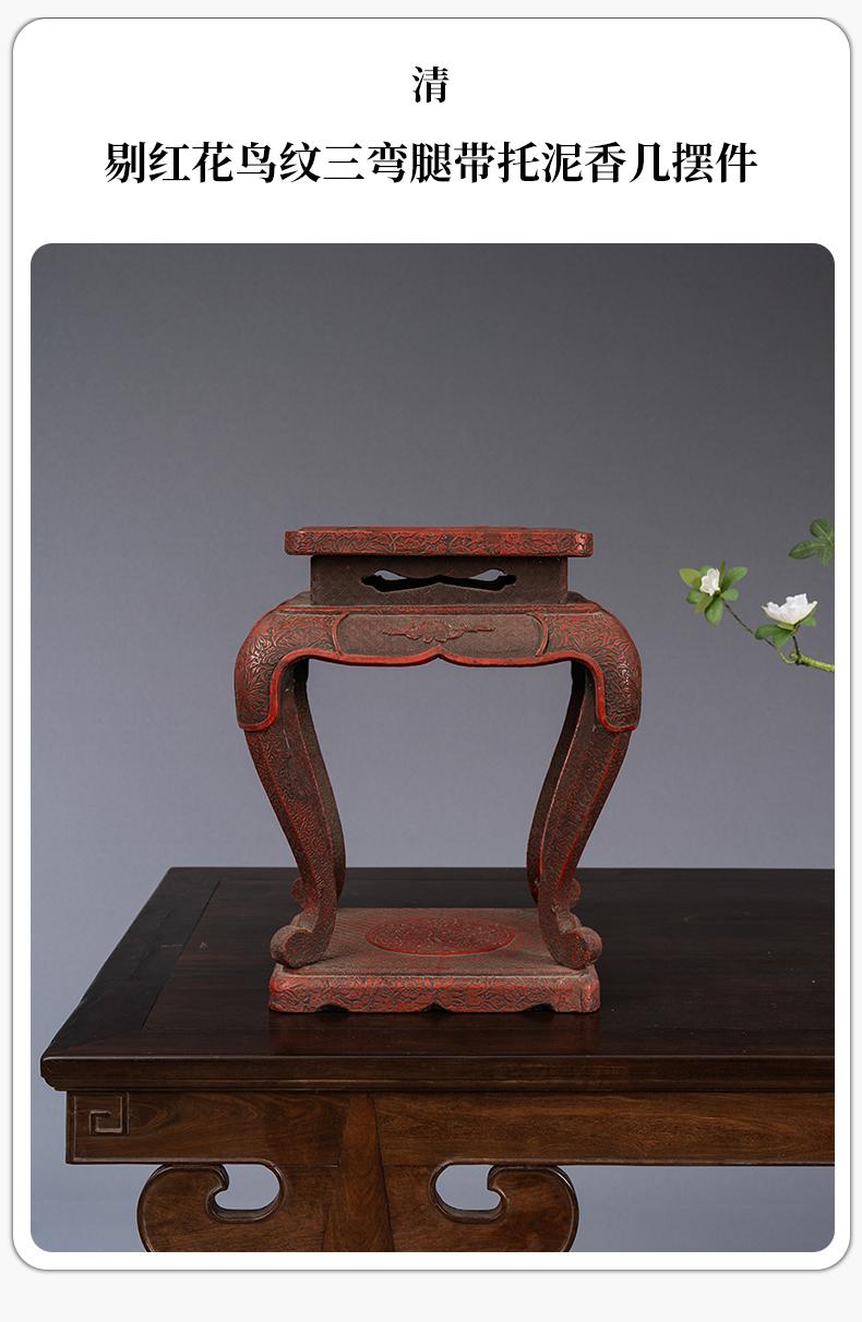 清 剔红花鸟纹三弯腿带托泥香几摆件