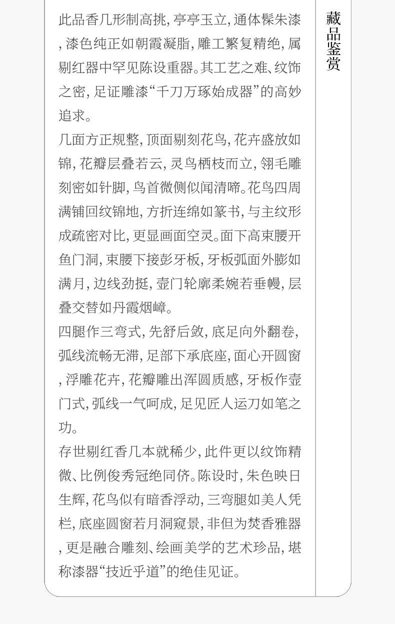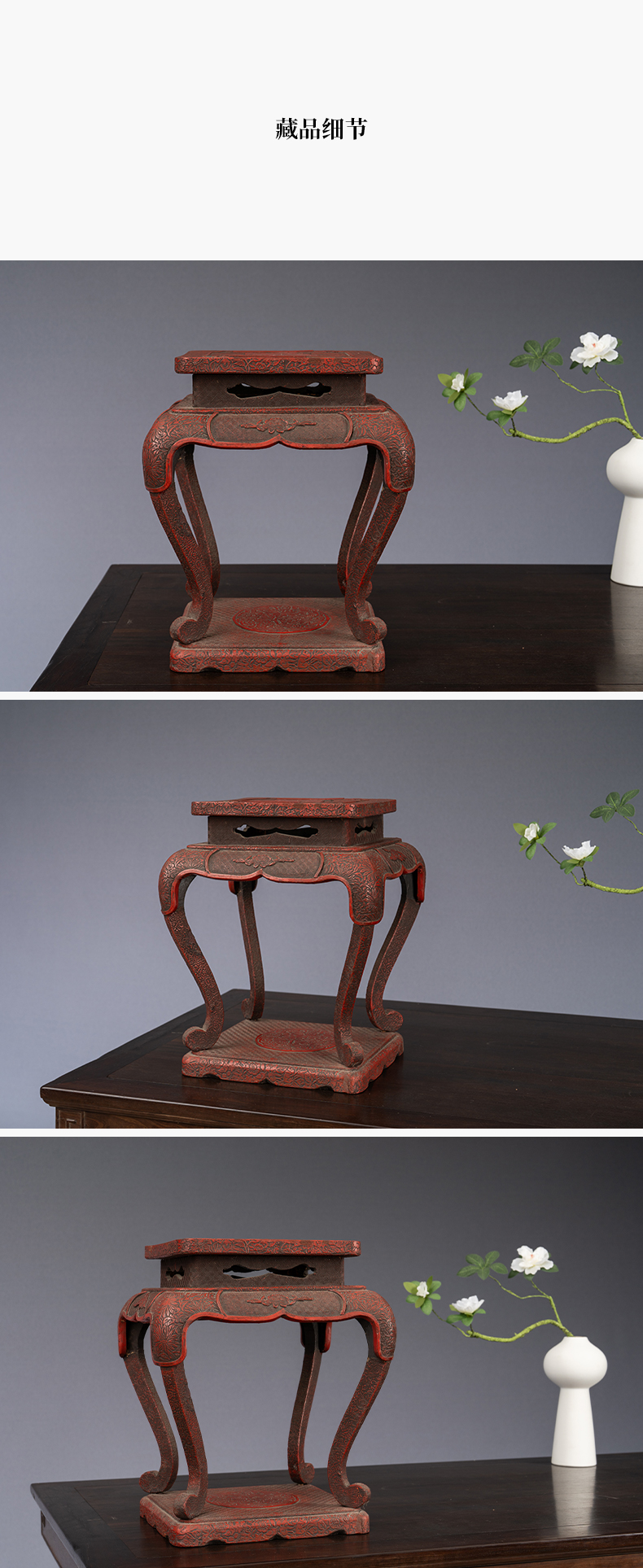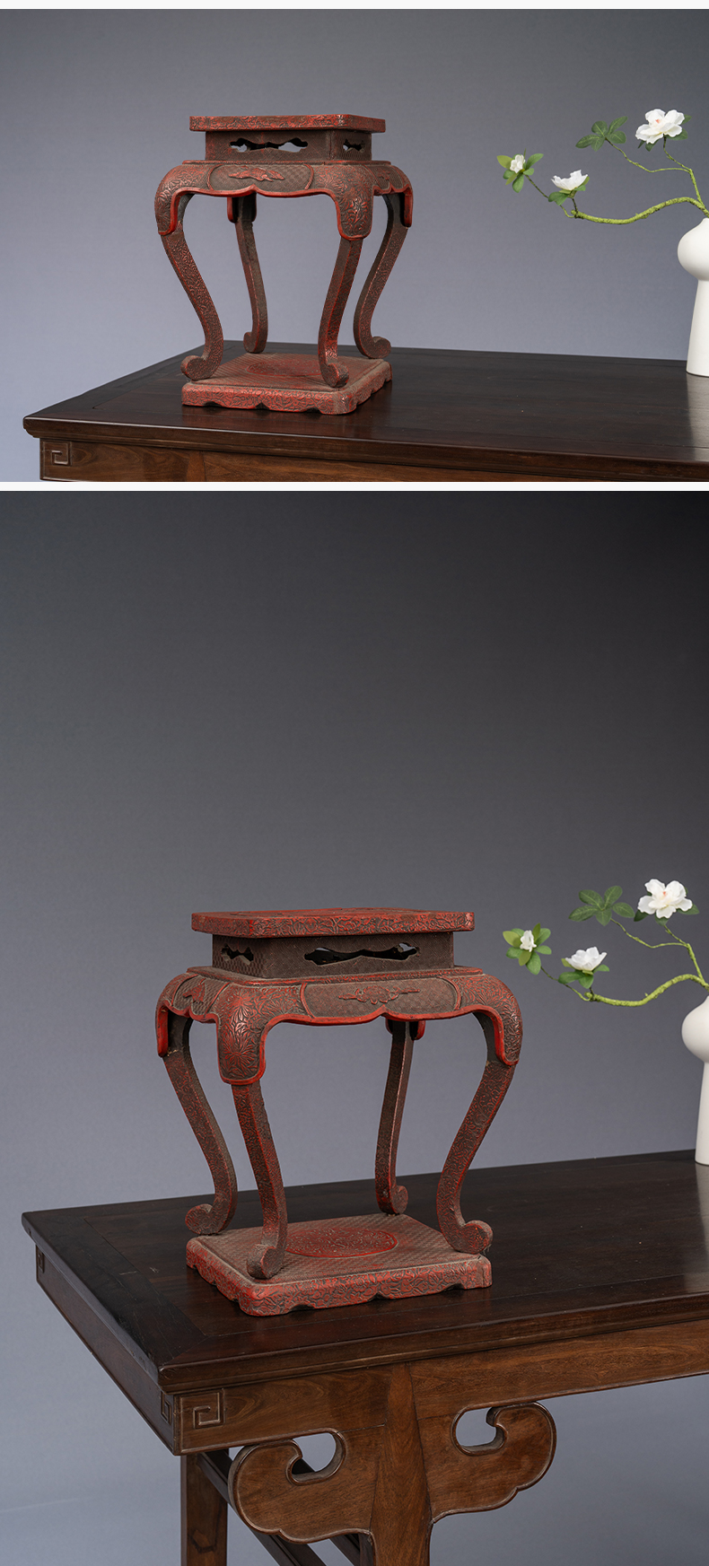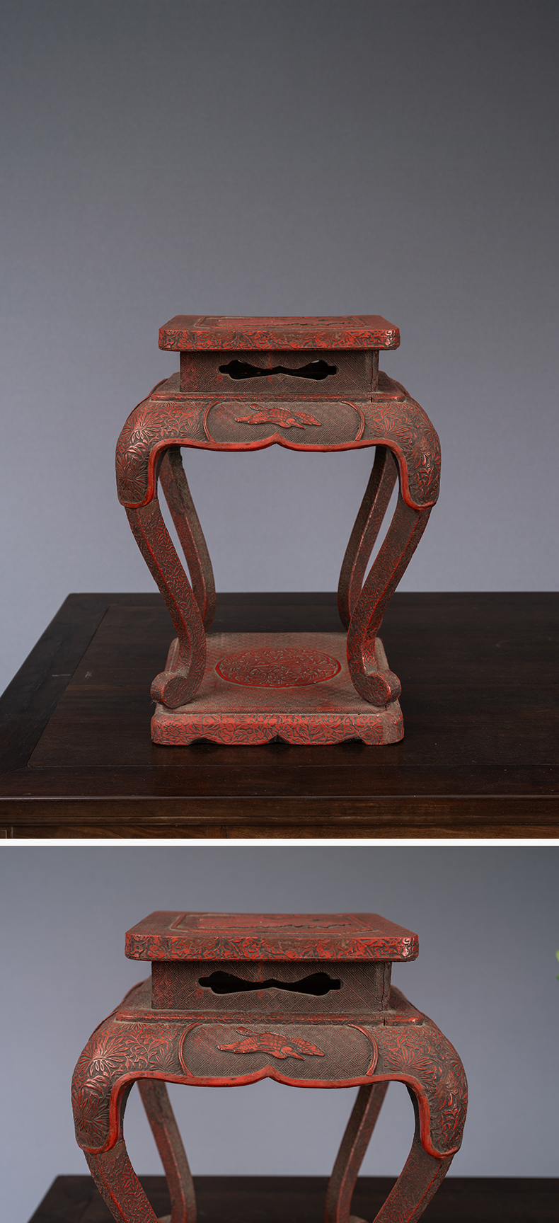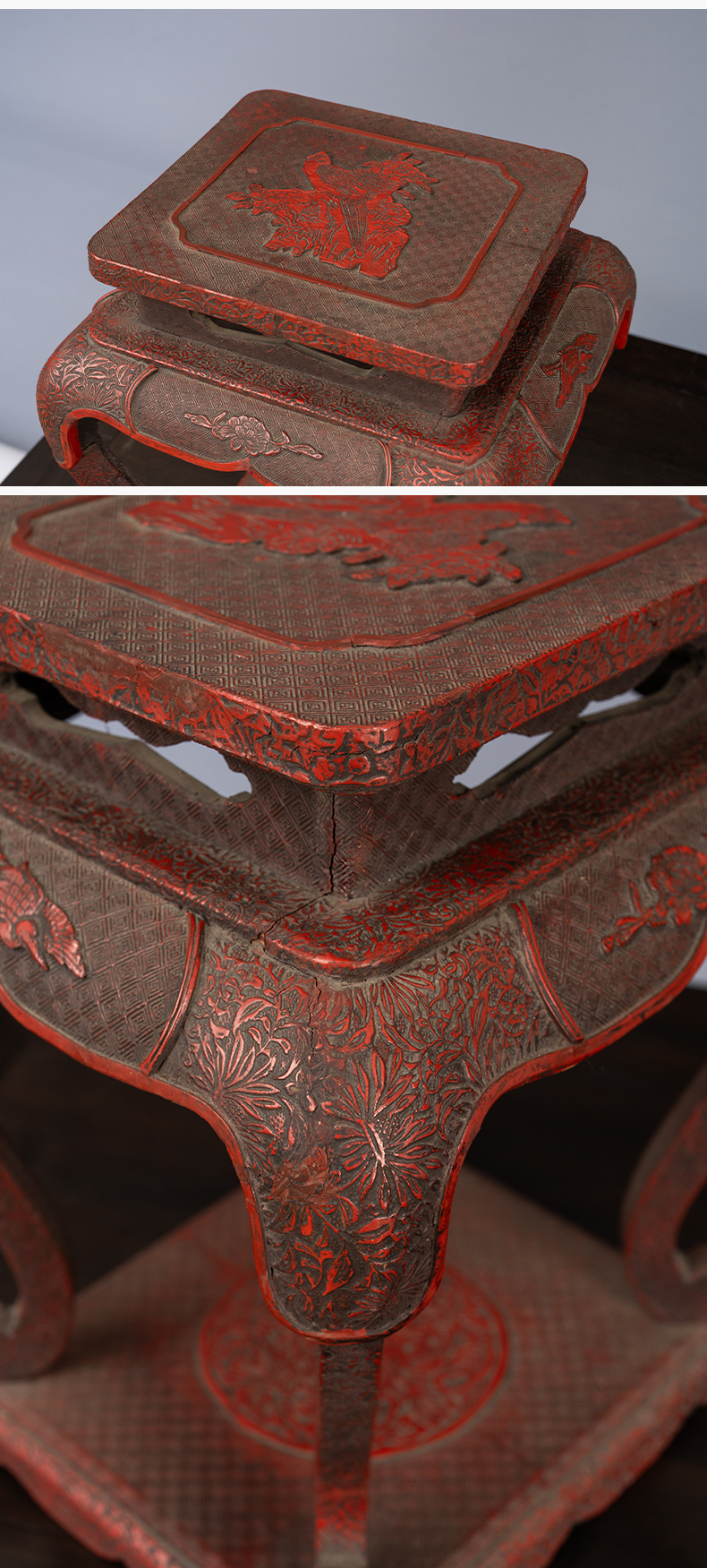 清 剔红花鸟纹三弯腿带托泥香几摆件
