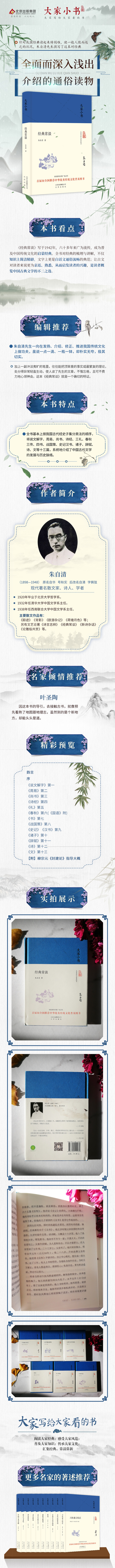 朱自清先生一向在发扬、介绍、修正、推进我国传统文化上做功夫,虽说一点一滴、一瓶一钵,却朴实无夸,极其切实。再加上一副冲淡夷旷的笔墨,往往能把顶笨重的事实或*繁复的理论,处分得异常轻盈生动,使人读了先生的文章,不惟忘倦,且可不费力地心领神会。这本《经典常谈》就是一个确切的明证。