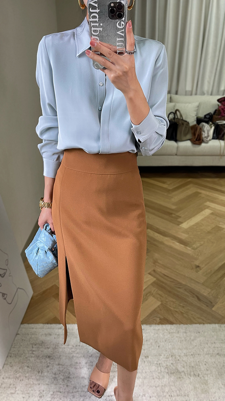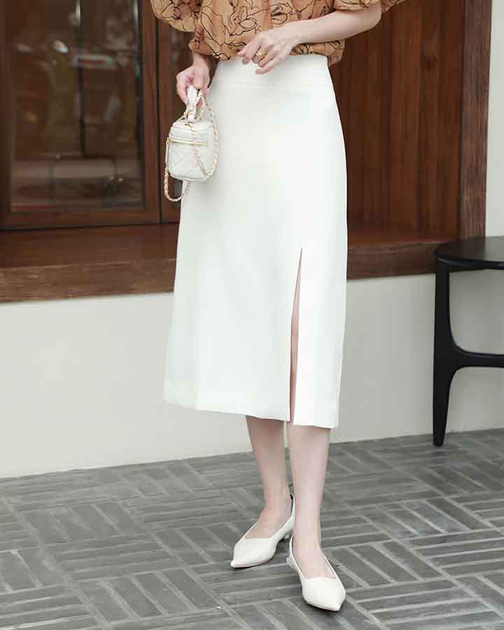 顺丰包邮洛诗琳13519春夏新款气质开衩A字通勤半身裙女0703