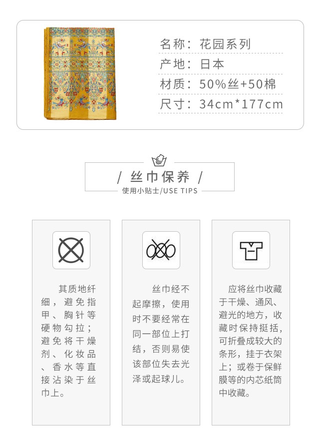 【SYUSAIEN】京都友禅染丝绵纵织 长巾 花园系列(34x177cm)简包装