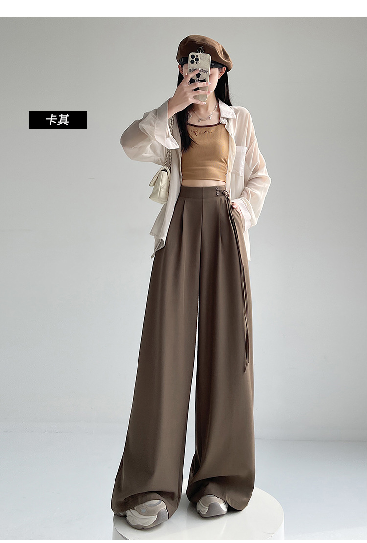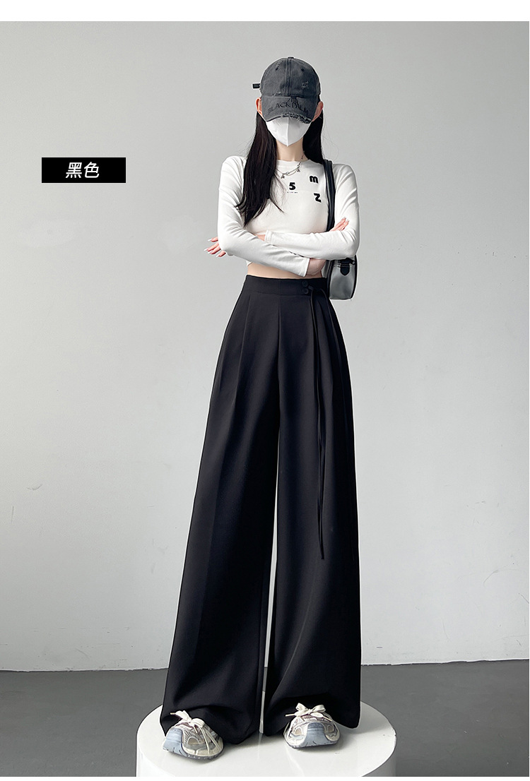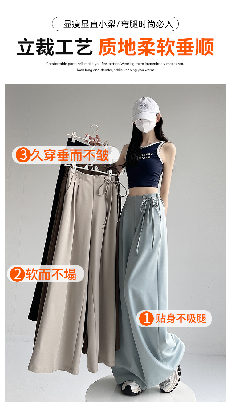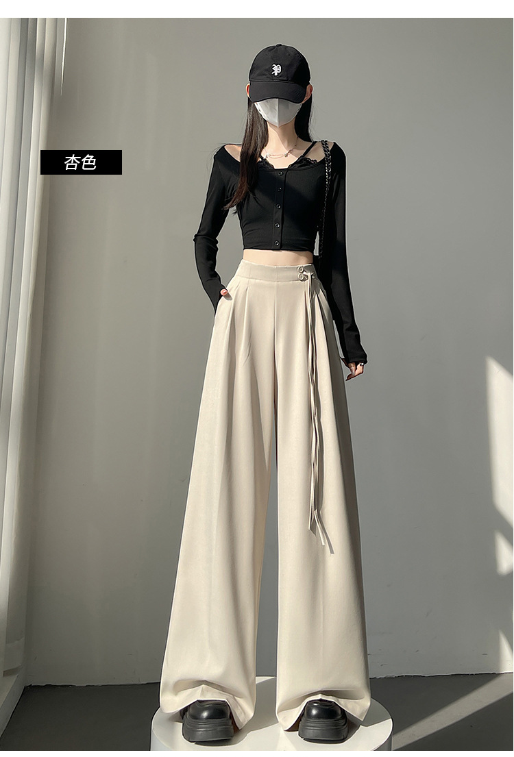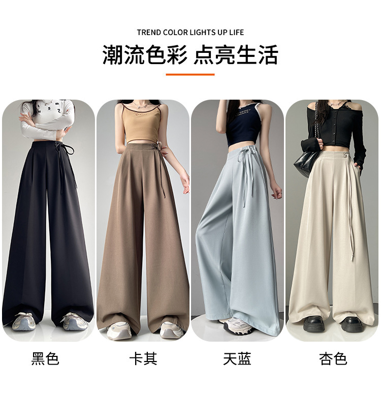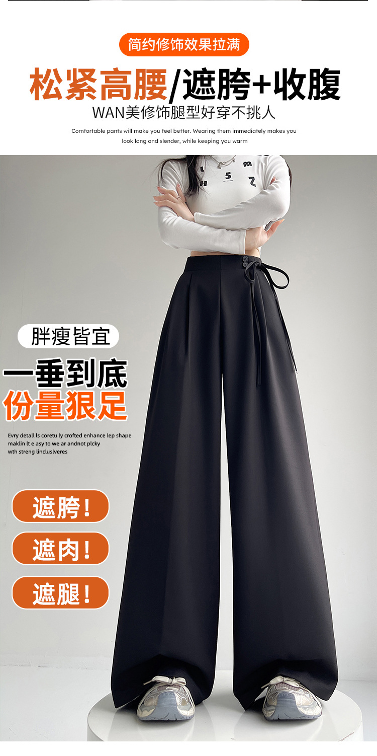 高腰绑带西装裤女春秋小个子高级感垂感直筒宽松休闲拖地阔腿裤子