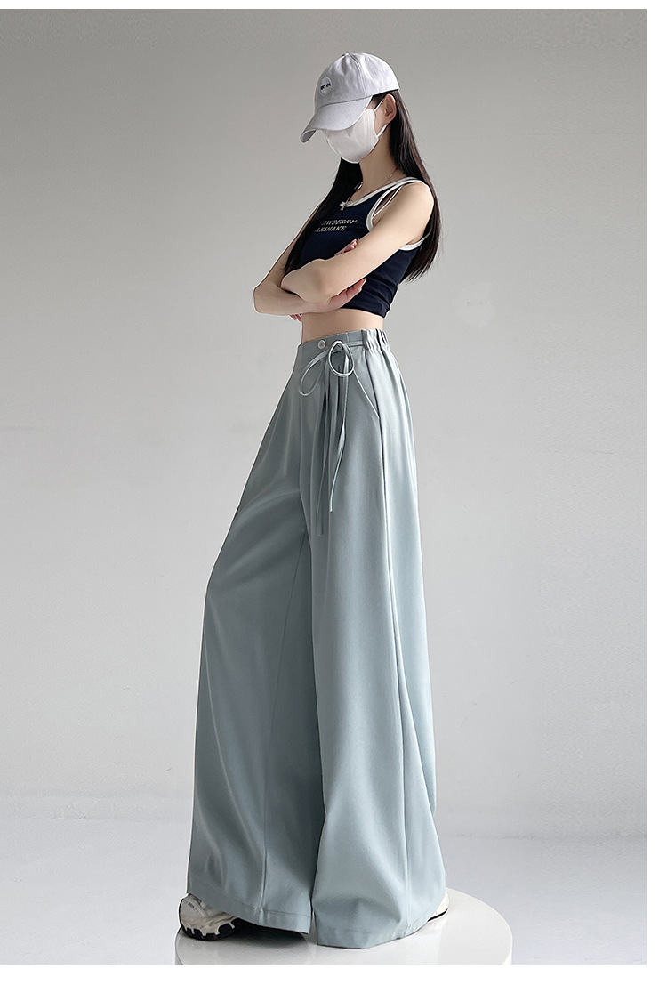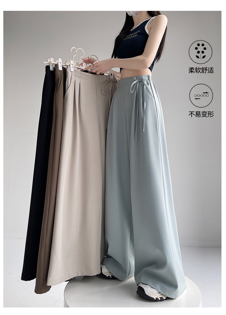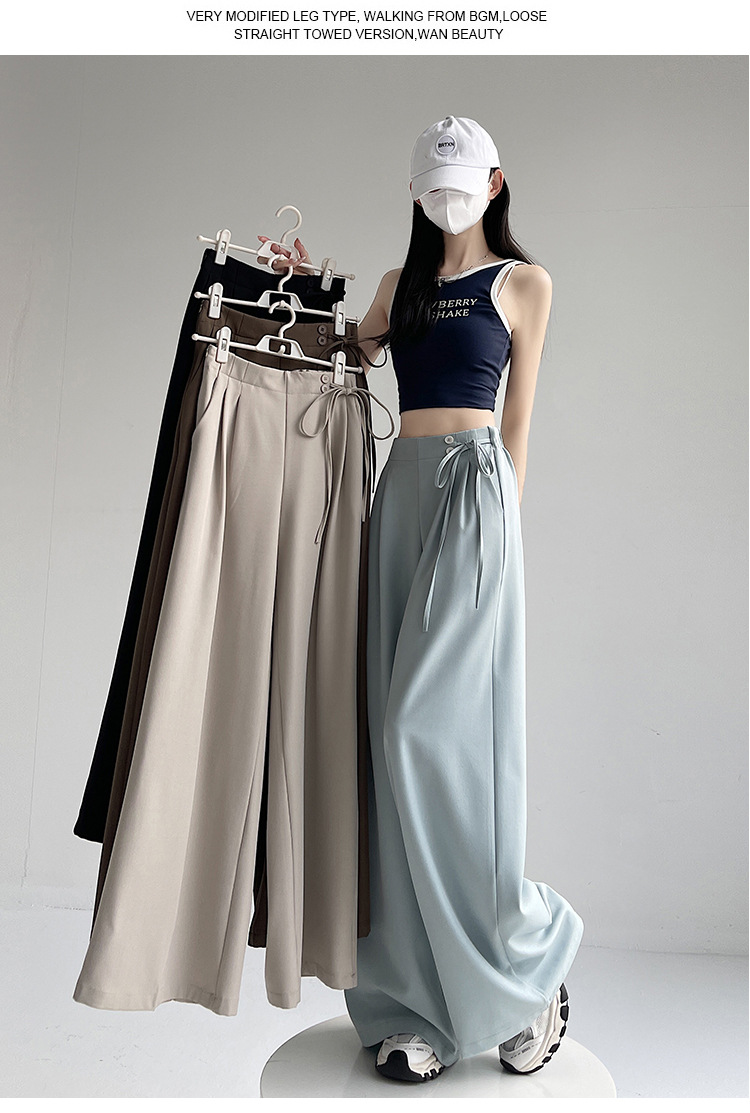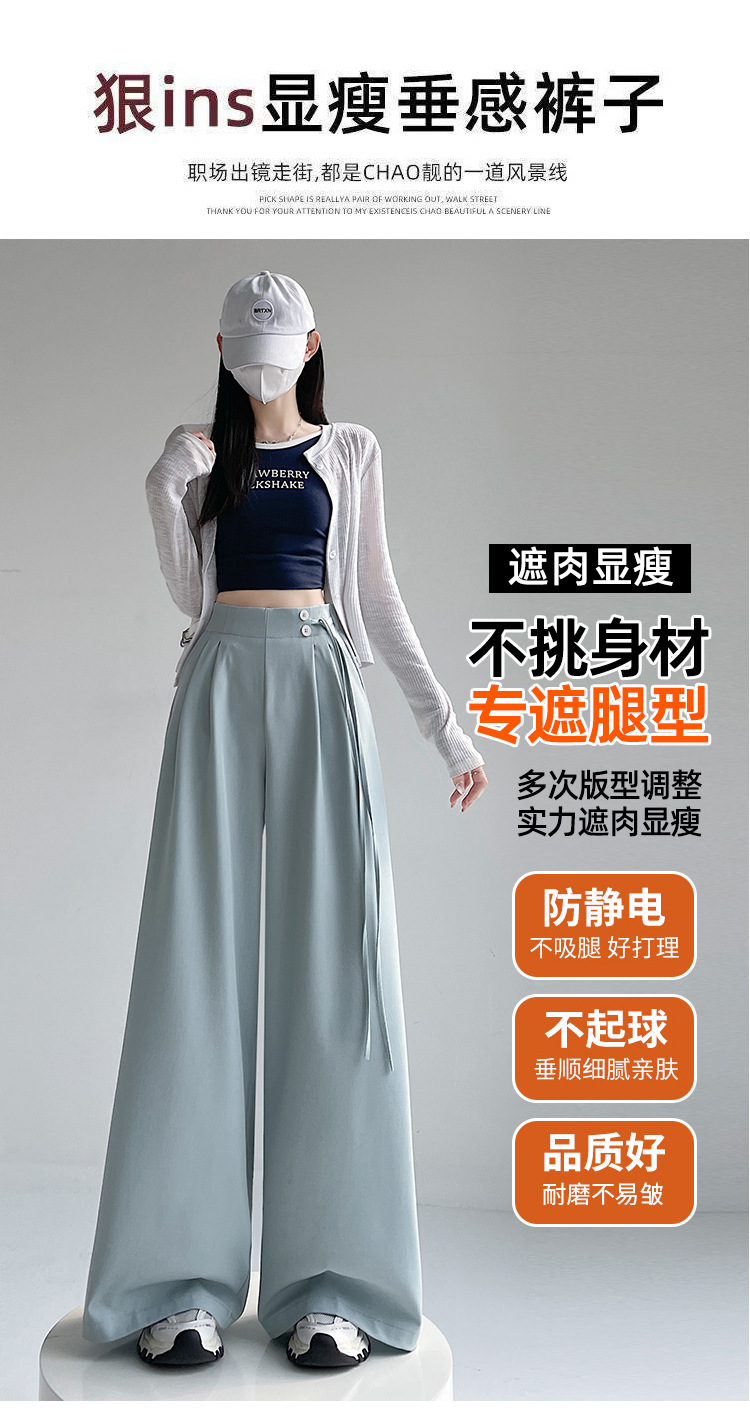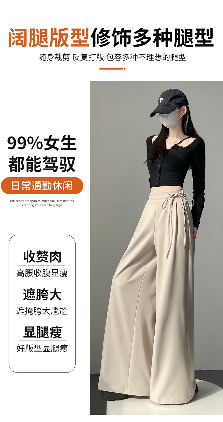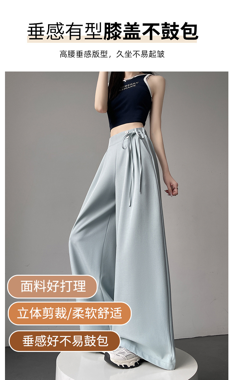 高腰绑带西装裤女春秋小个子高级感垂感直筒宽松休闲拖地阔腿裤子