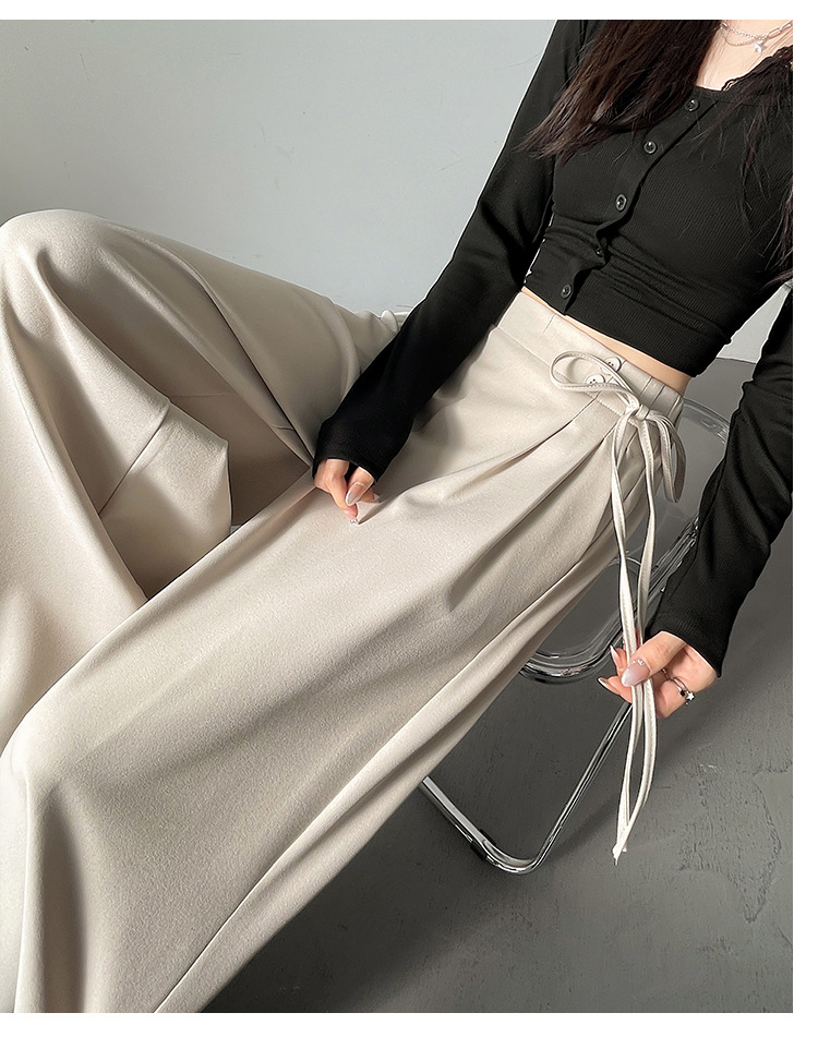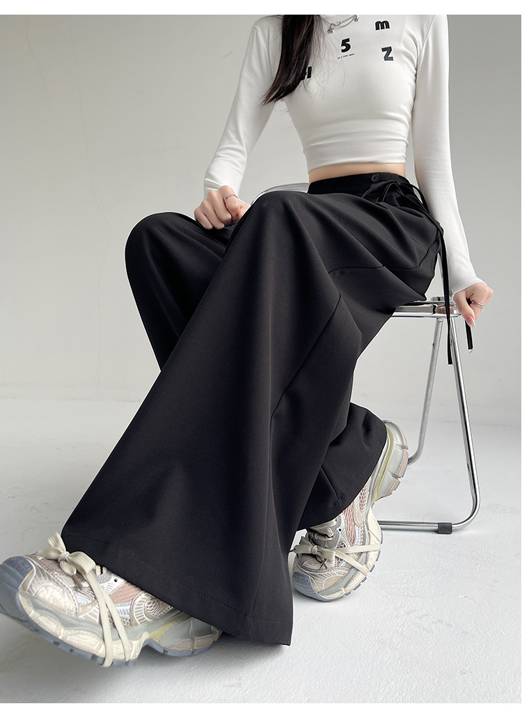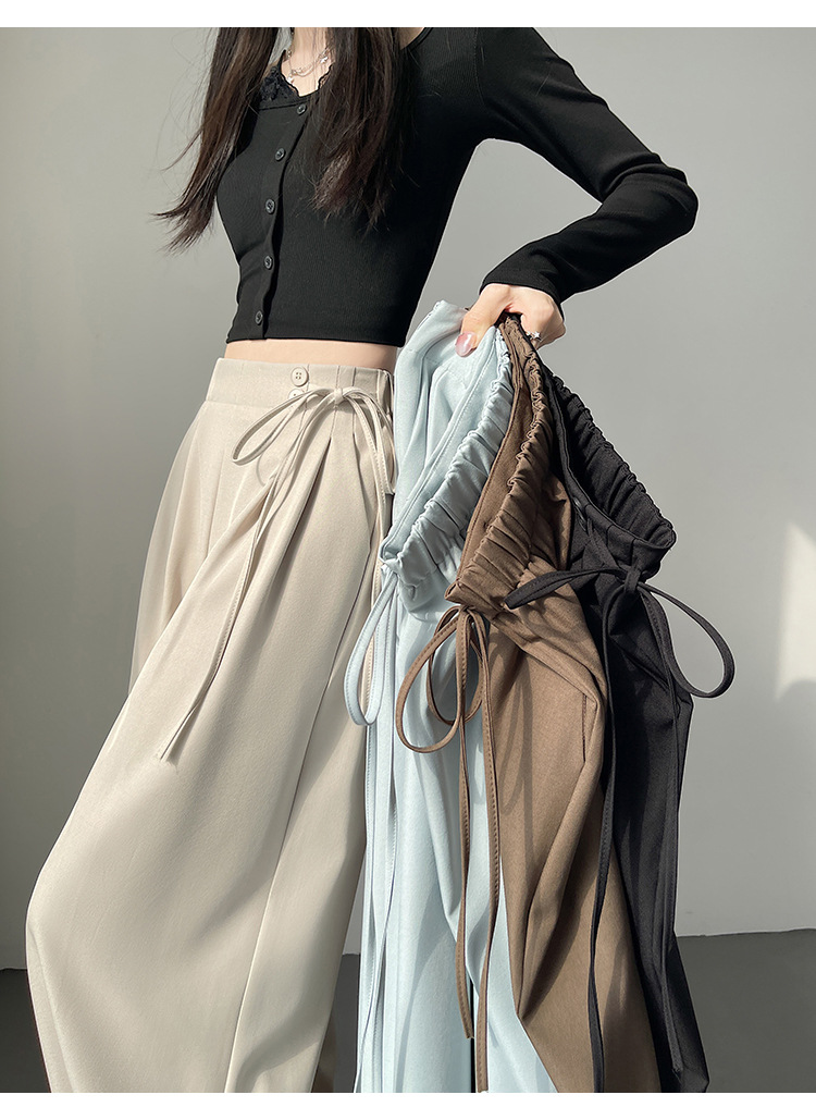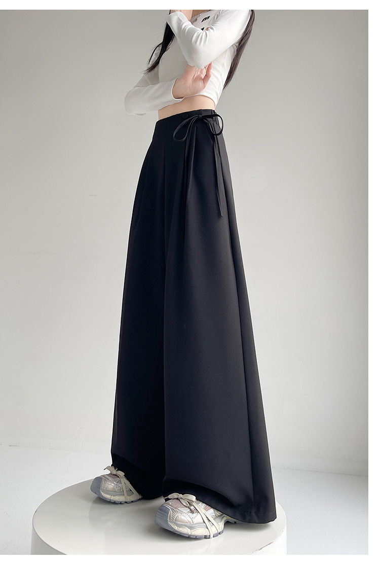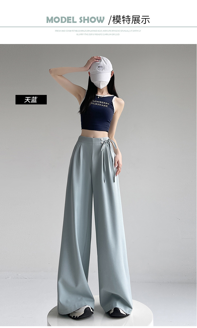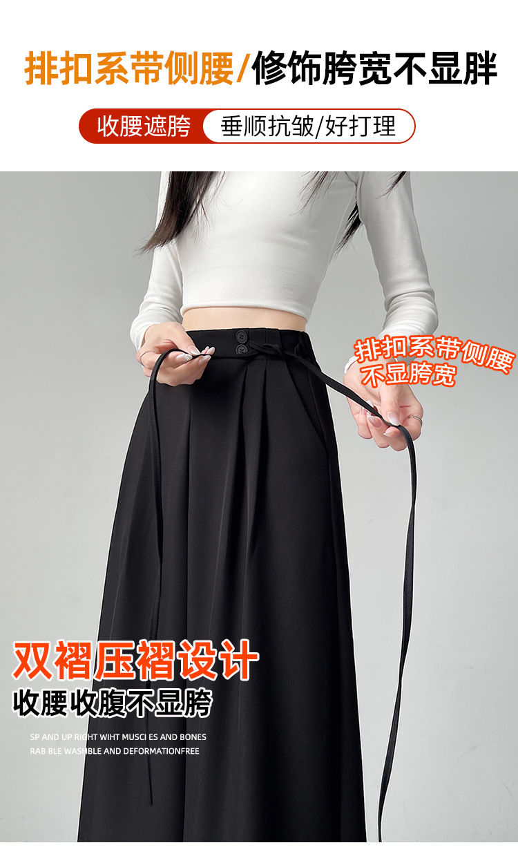 高腰绑带西装裤女春秋小个子高级感垂感直筒宽松休闲拖地阔腿裤子