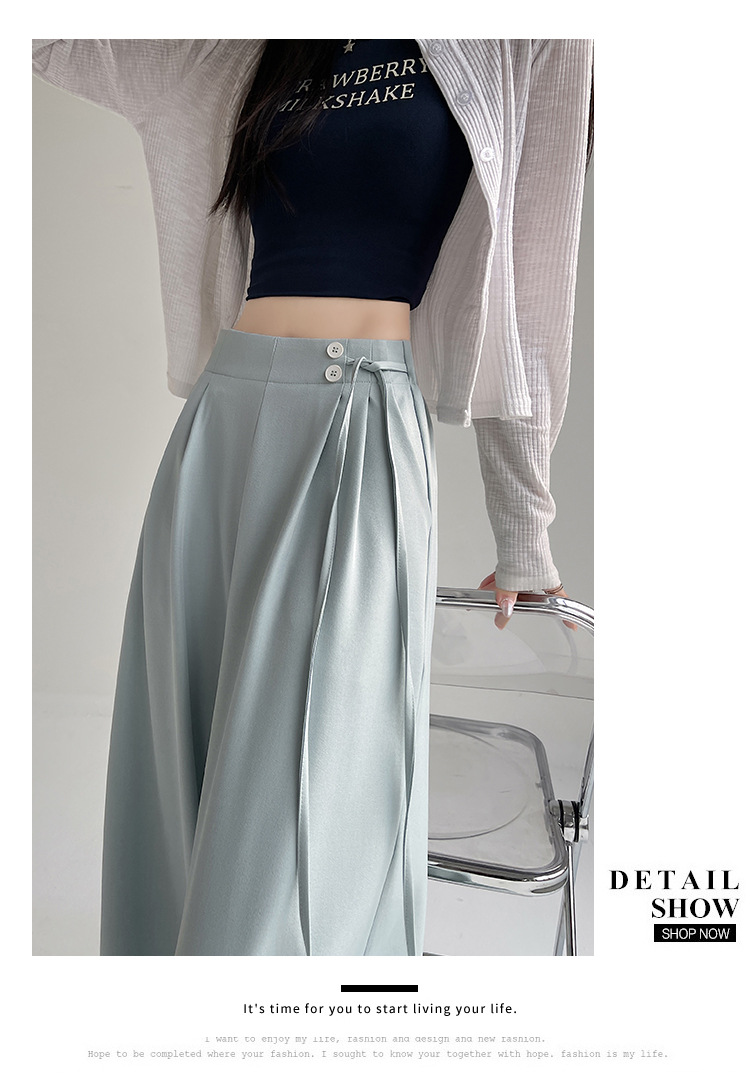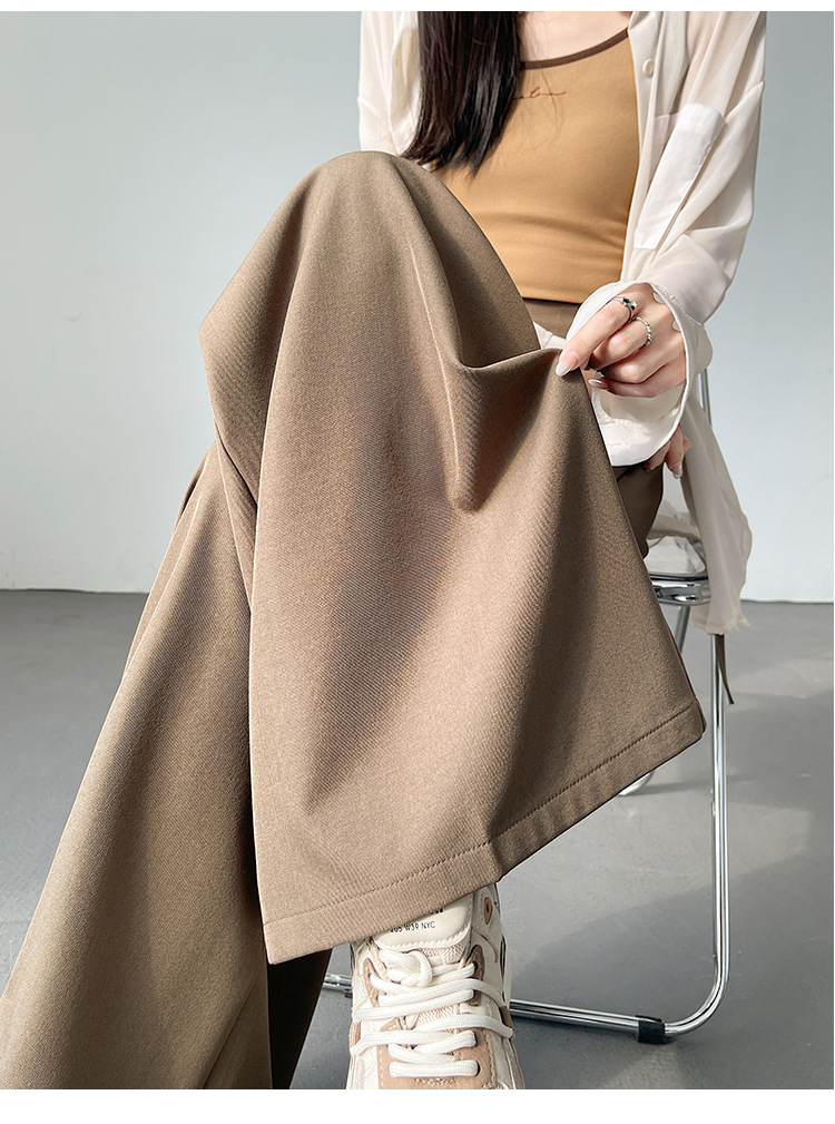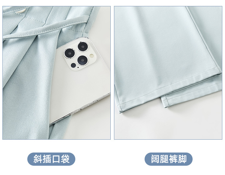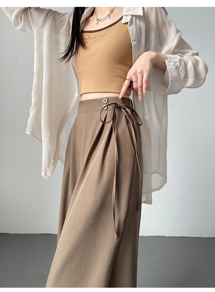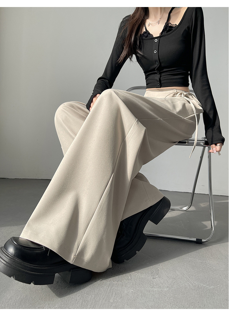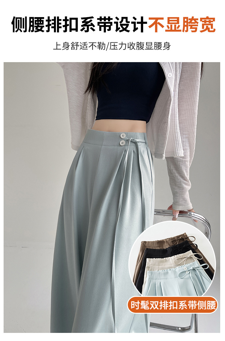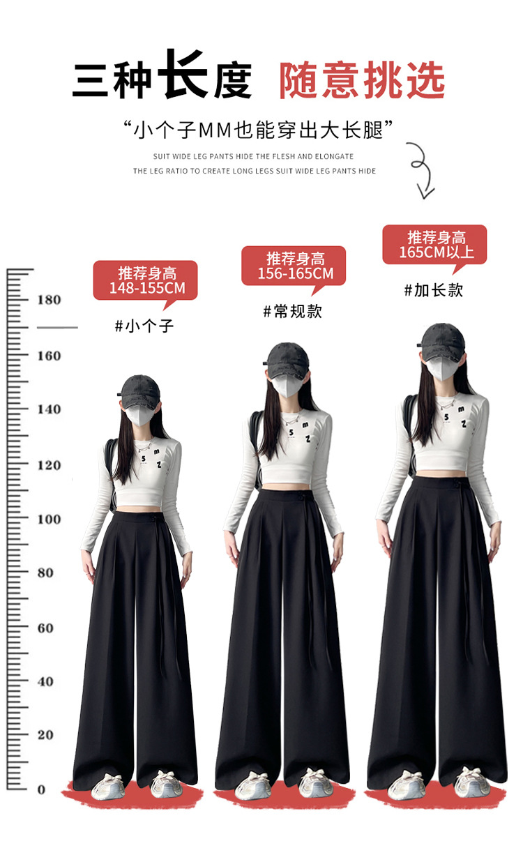 高腰绑带西装裤女春秋小个子高级感垂感直筒宽松休闲拖地阔腿裤子