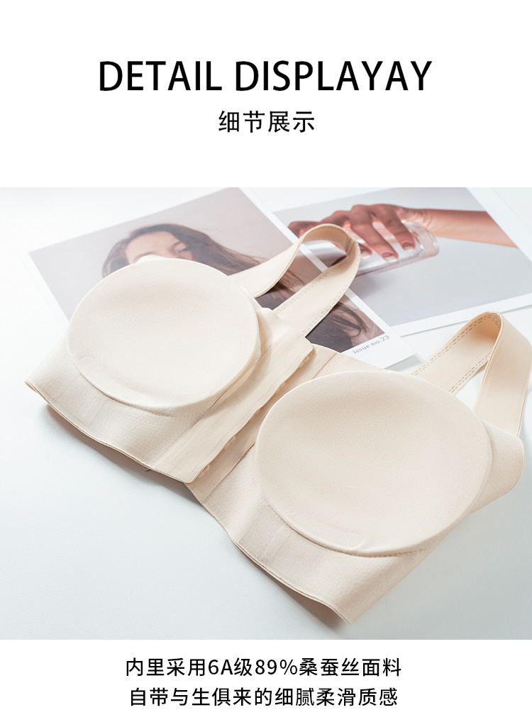 丁摩 真丝一体无痕剪裁宽肩带文胸 桑蚕丝减龄波波线前扣文胸TG02S301